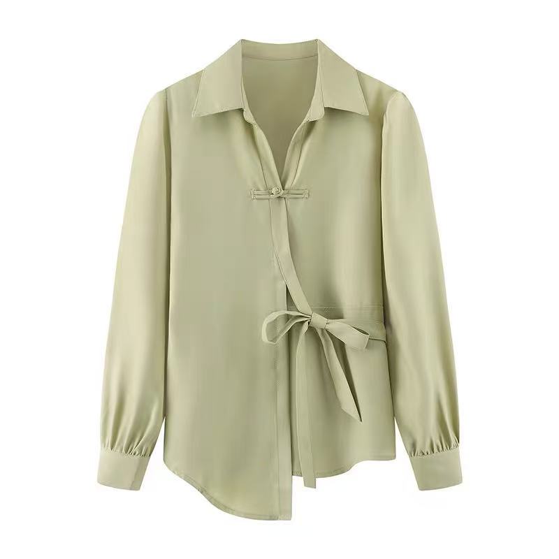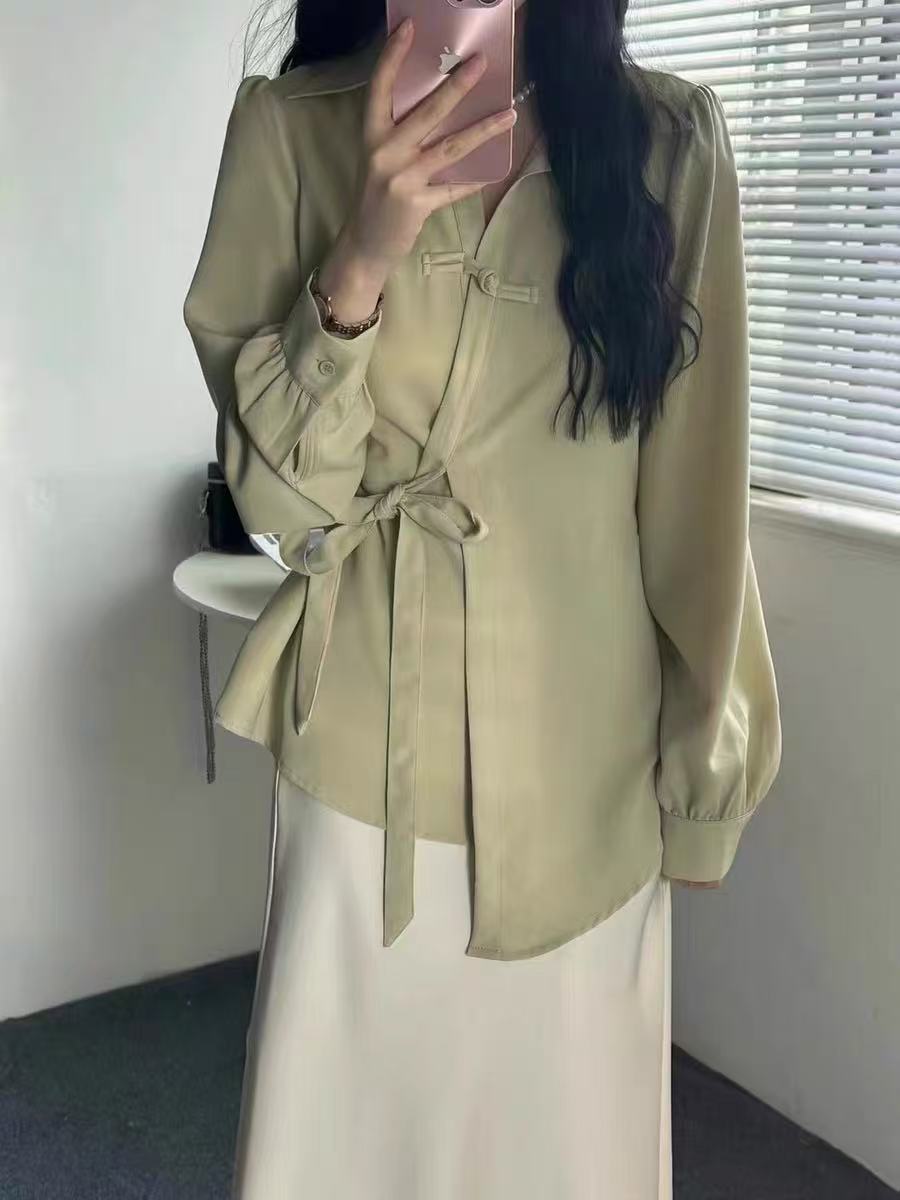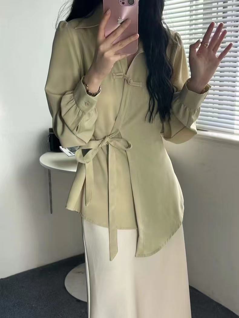 7.29秒杀-微脏(NO退)【春上新】DL 法式不规则气质盘口系腰带衬衫W2006-喜出