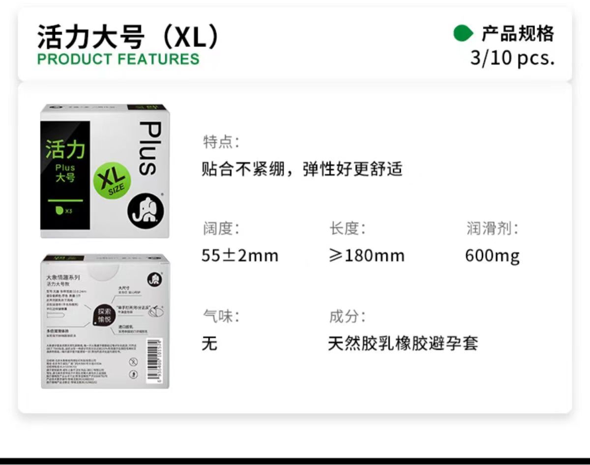 【大象】活力-大号3只+激润款2只安全避孕套5只装