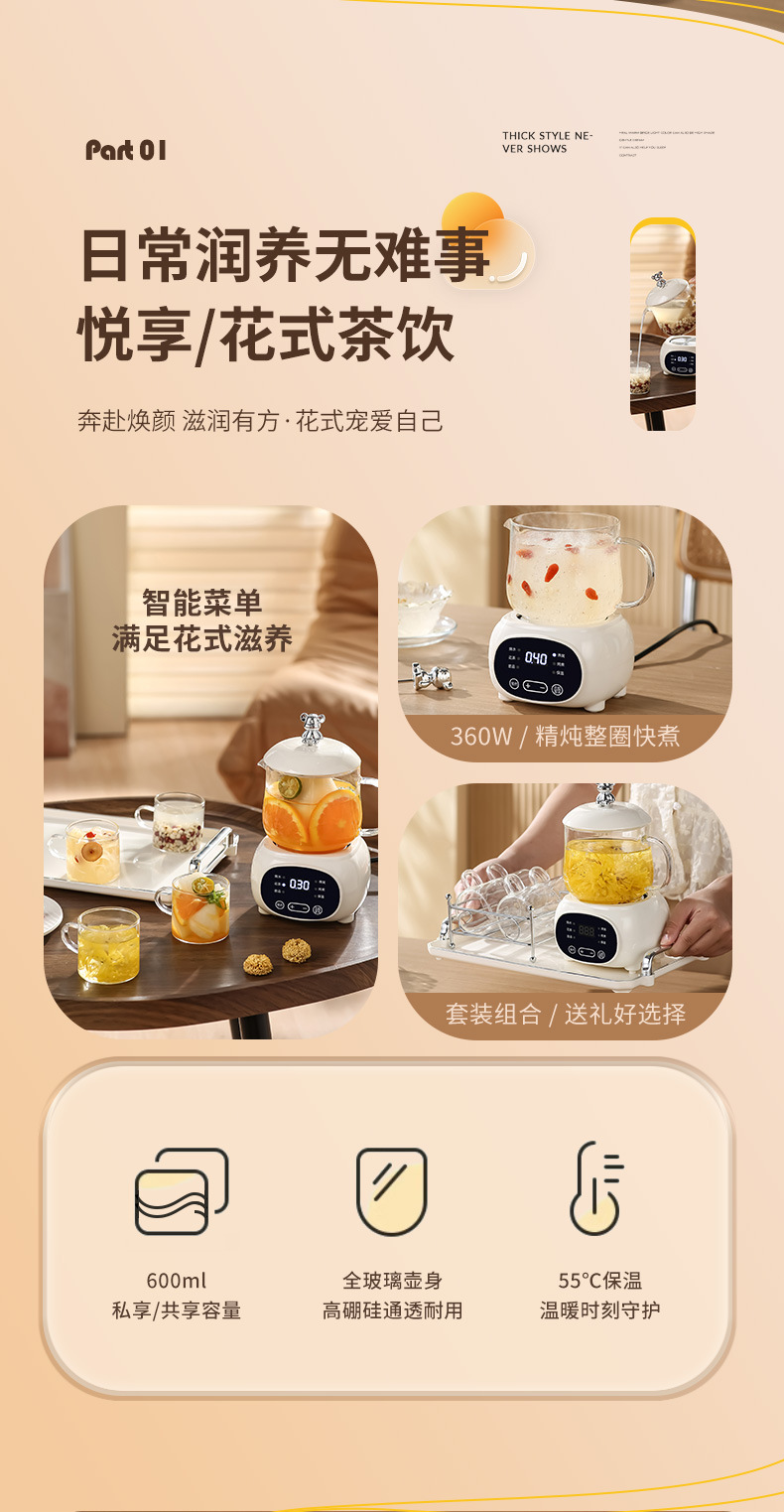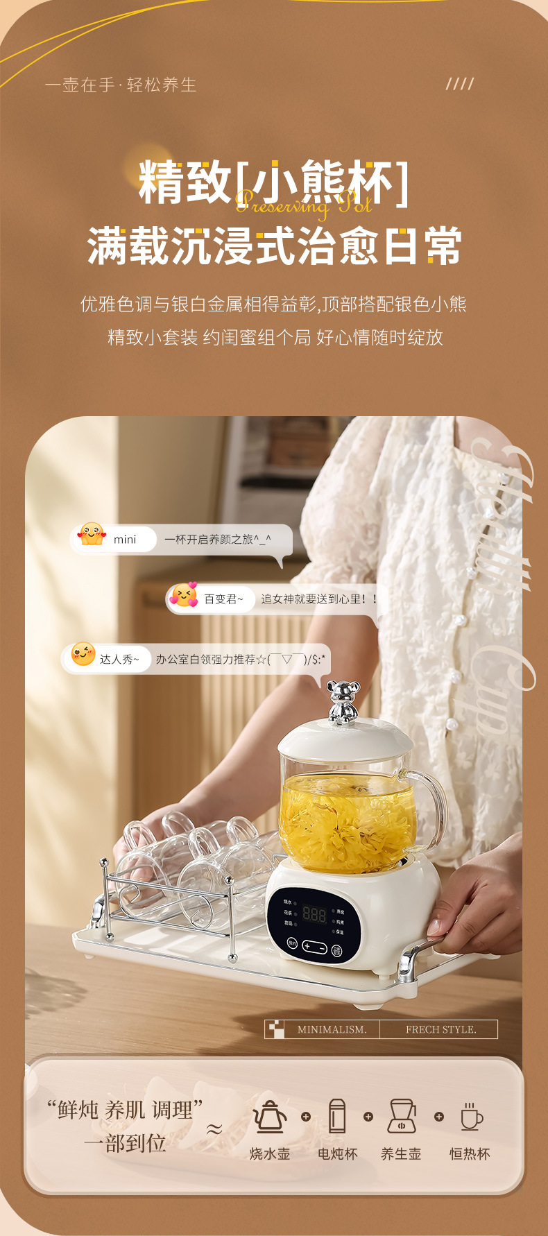 【轻饮私养壶,滋润美一刻】多功能养生杯家用养生壶 办公室迷你煮茶壶 花茶送礼养生壶套装-QQ