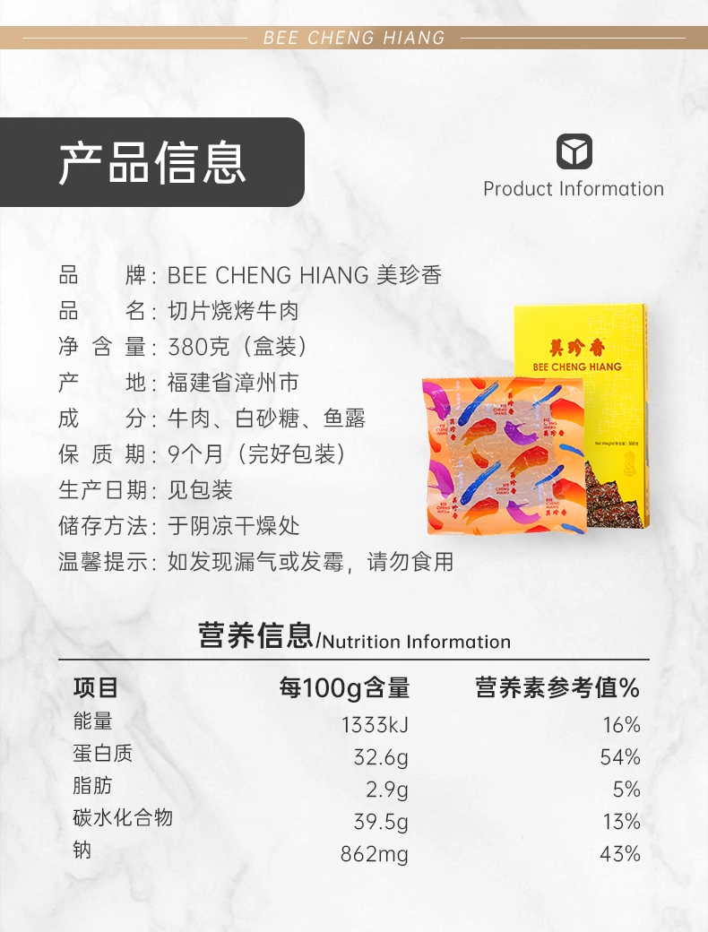 美珍香切片烧烤牛肉380g熟食真空小吃新加坡特色零食非牛肉脯肉干