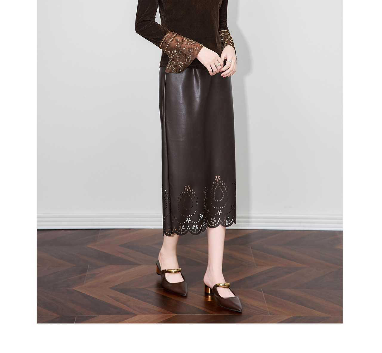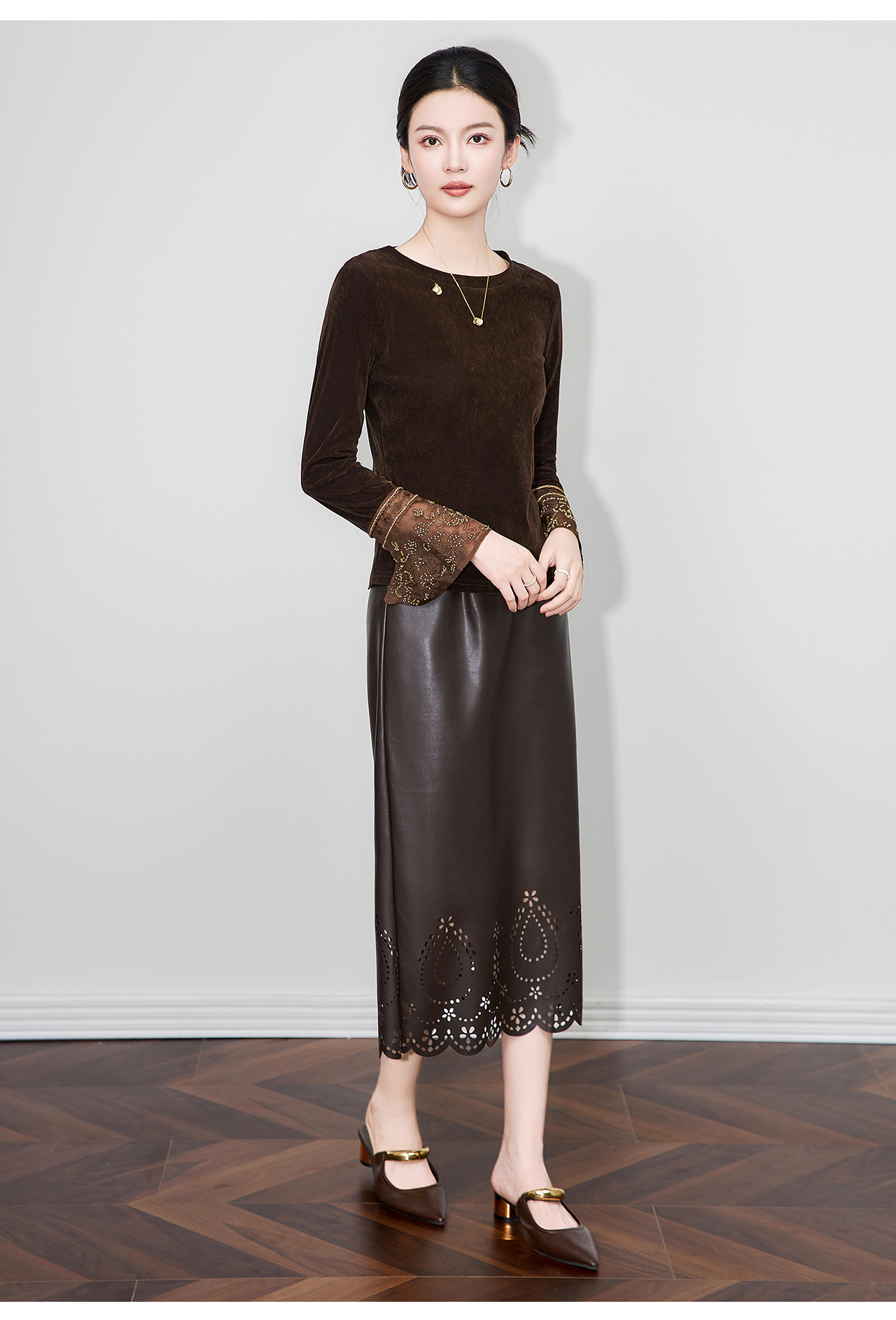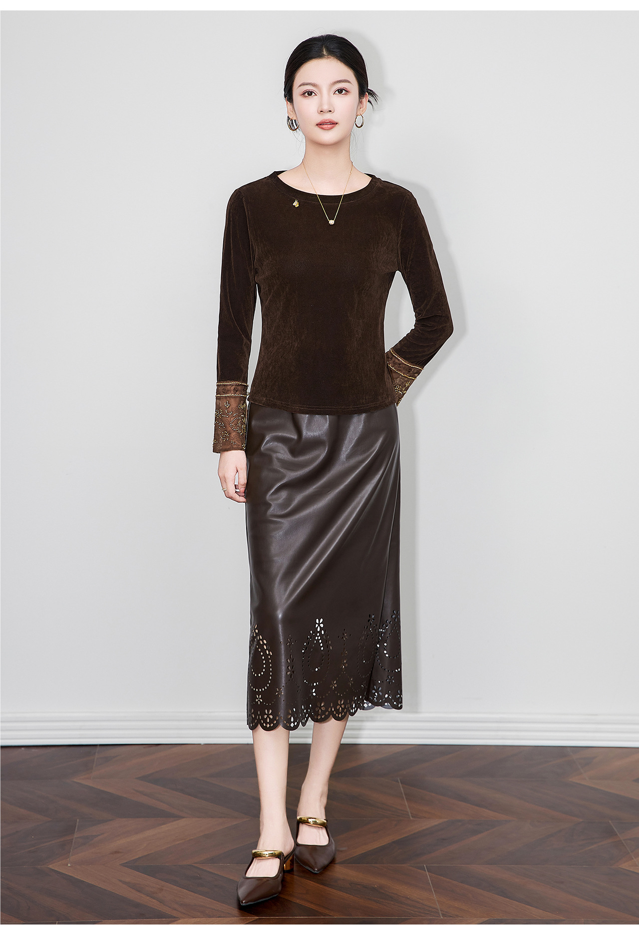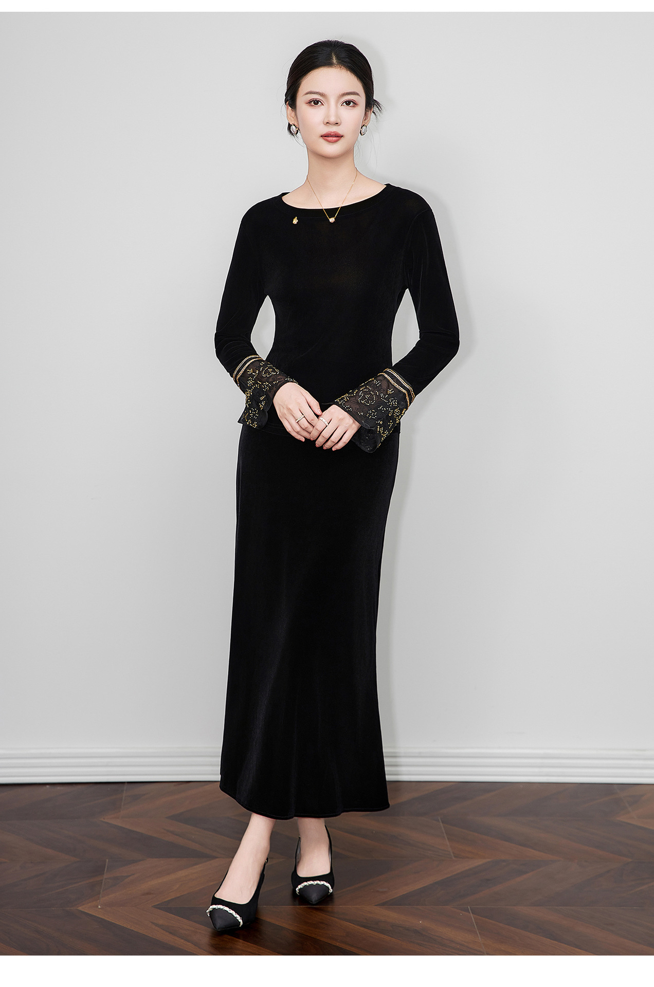 「高货wl」全新升级【铂金会员275/天猫369/差价94】(81126)洛诗琳复古丝绒打底衫2025秋冬钉珠刺绣欧根纱拼接上衣