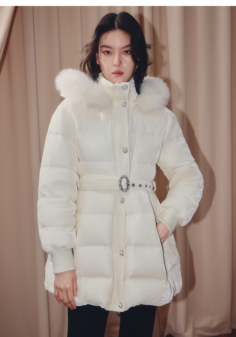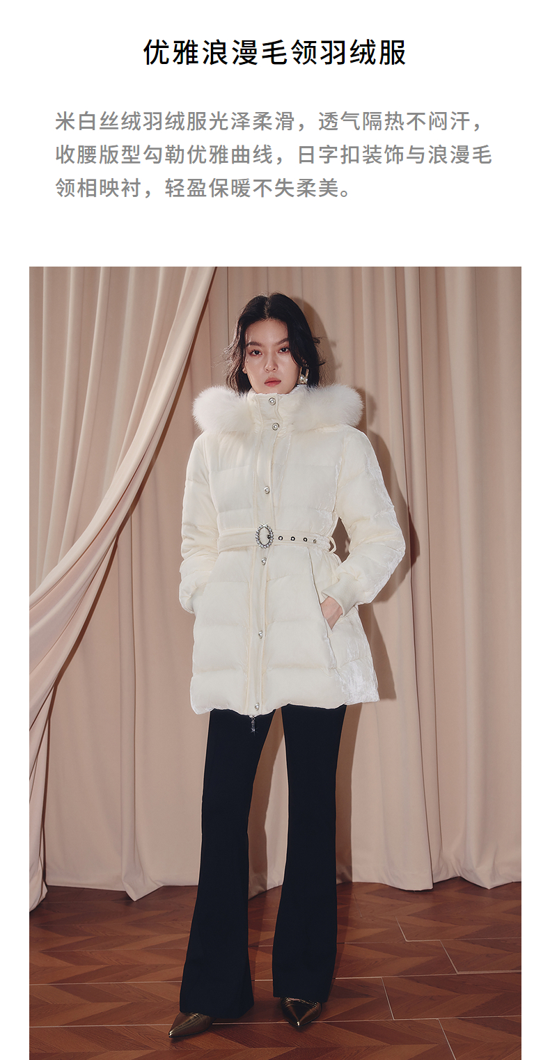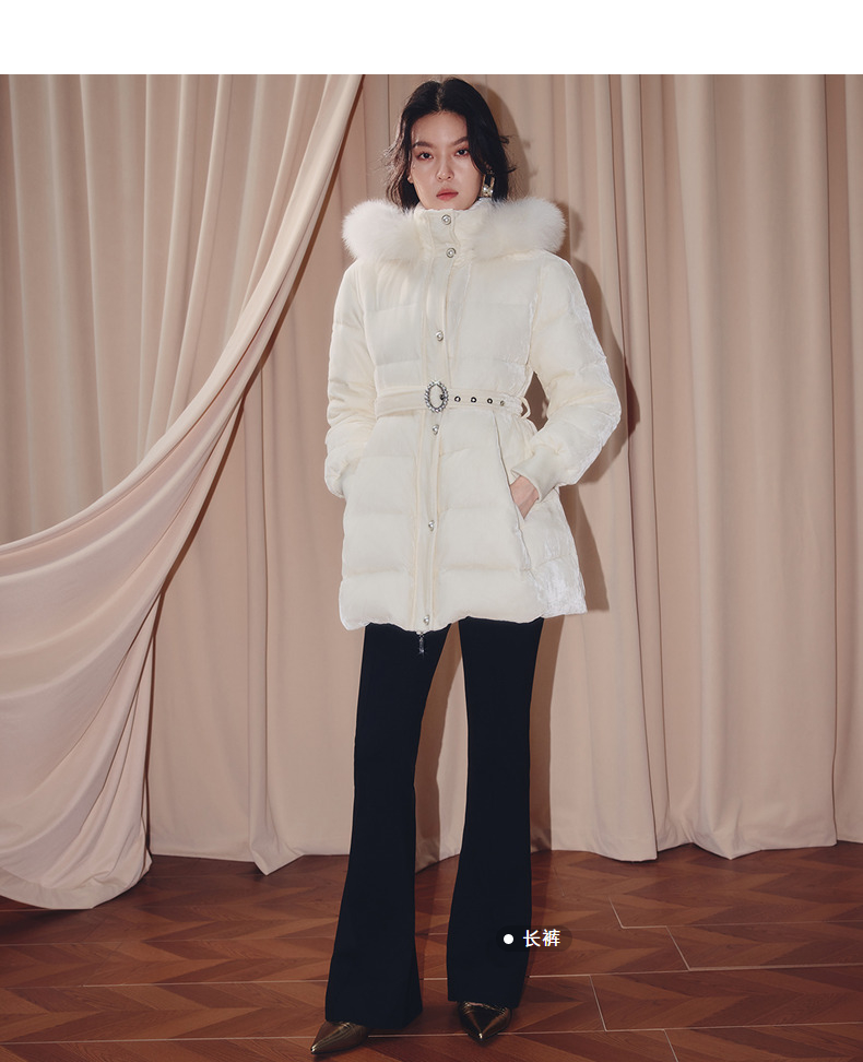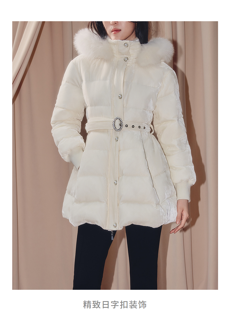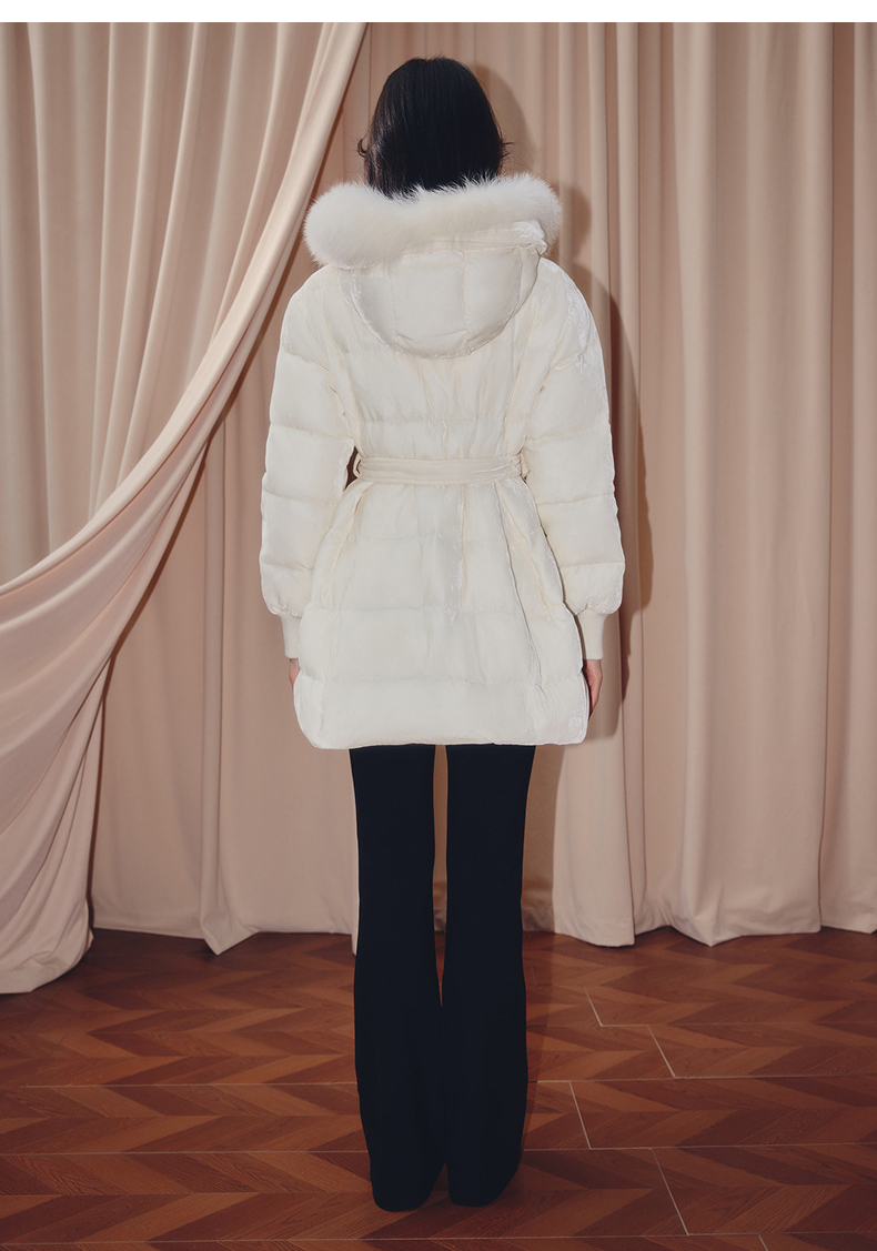 MAXRIENY优雅浪漫狐狸毛条立领收腰羽绒服女25冬款系带保暖外套(货号:MF86DC503)