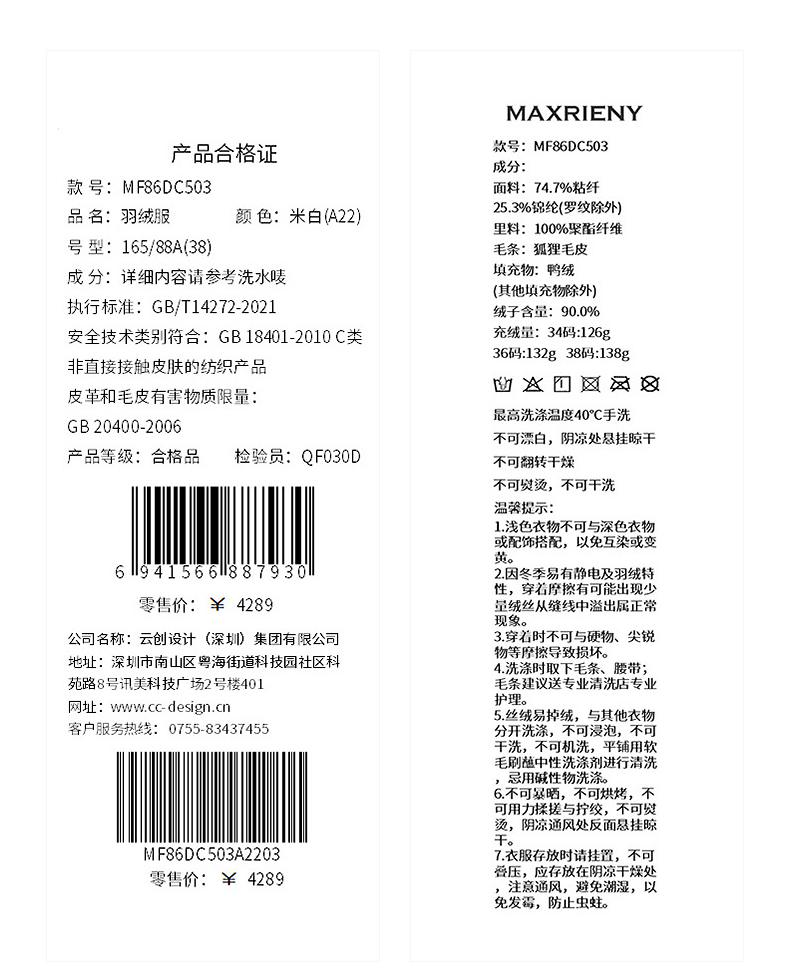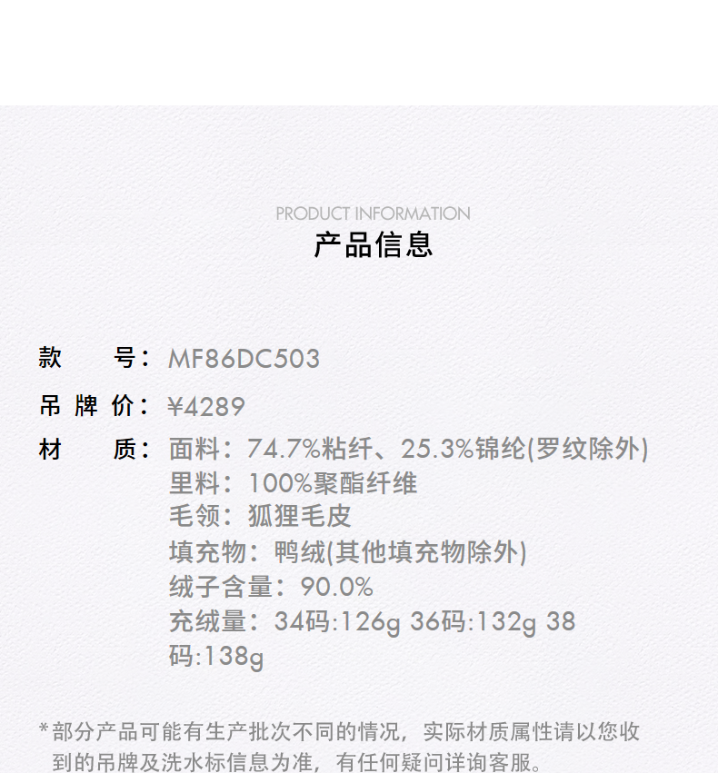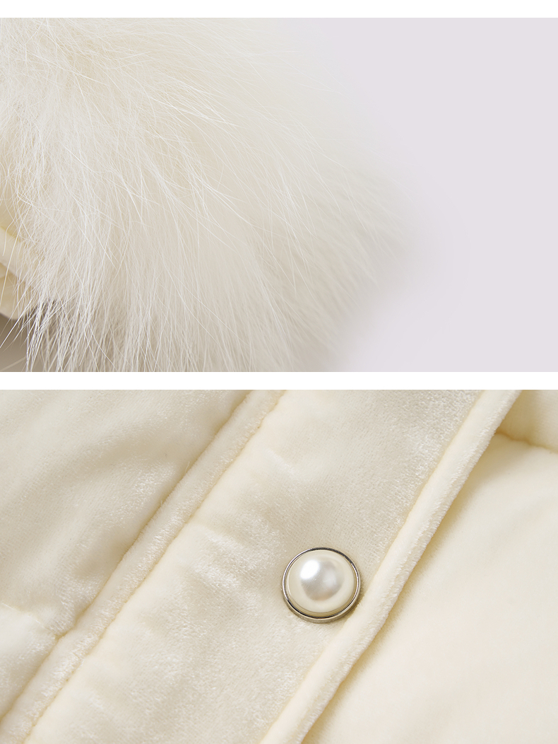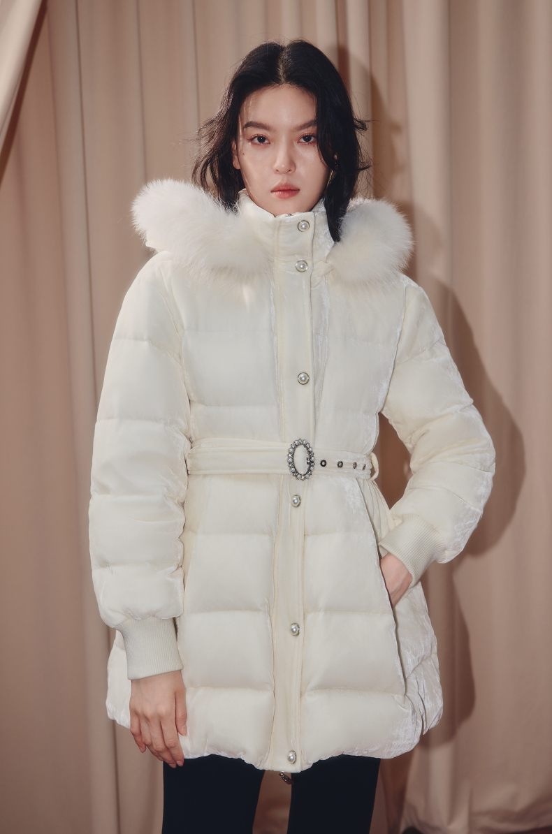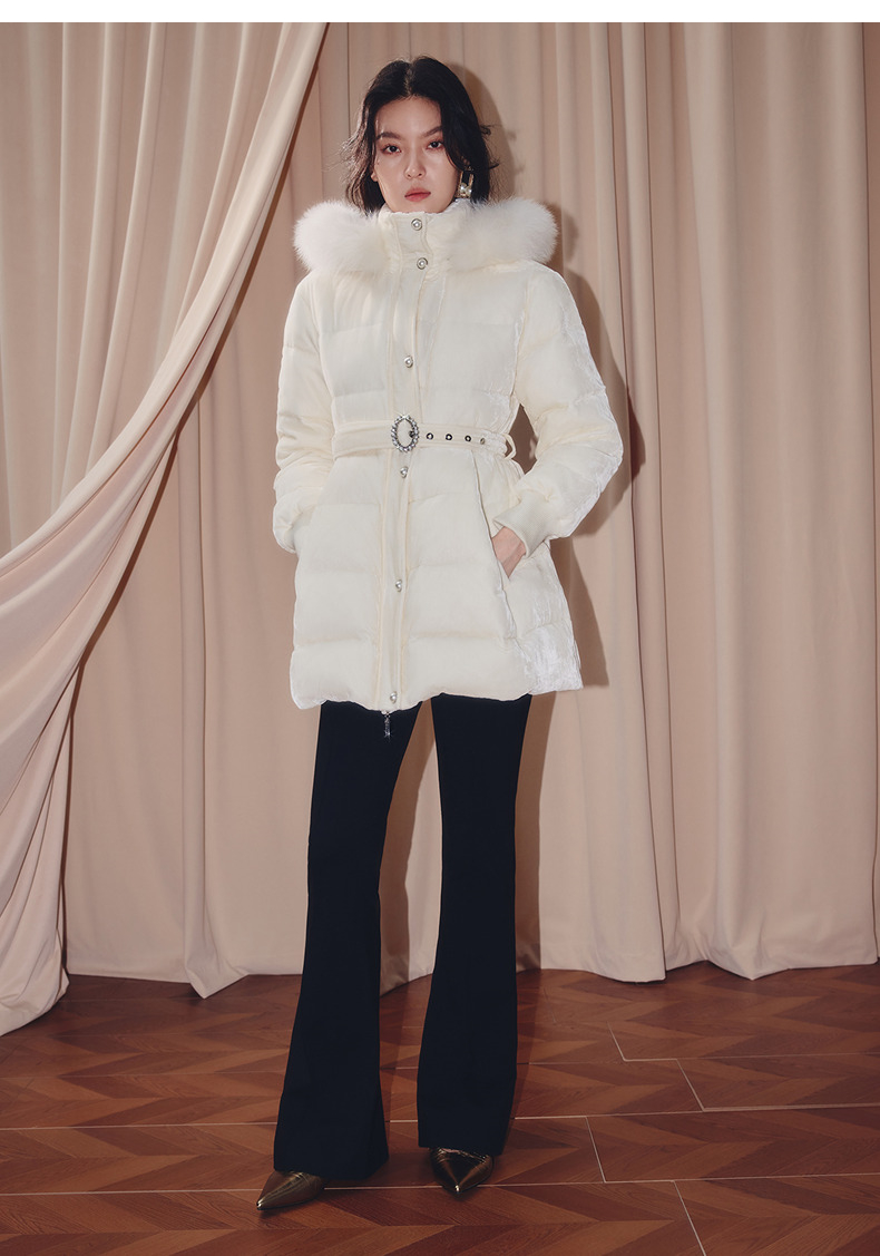 MAXRIENY优雅浪漫狐狸毛条立领收腰羽绒服女25冬款系带保暖外套(货号:MF86DC503)