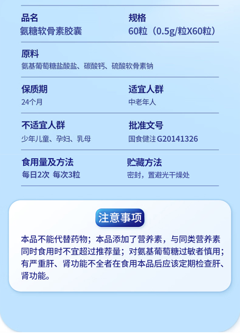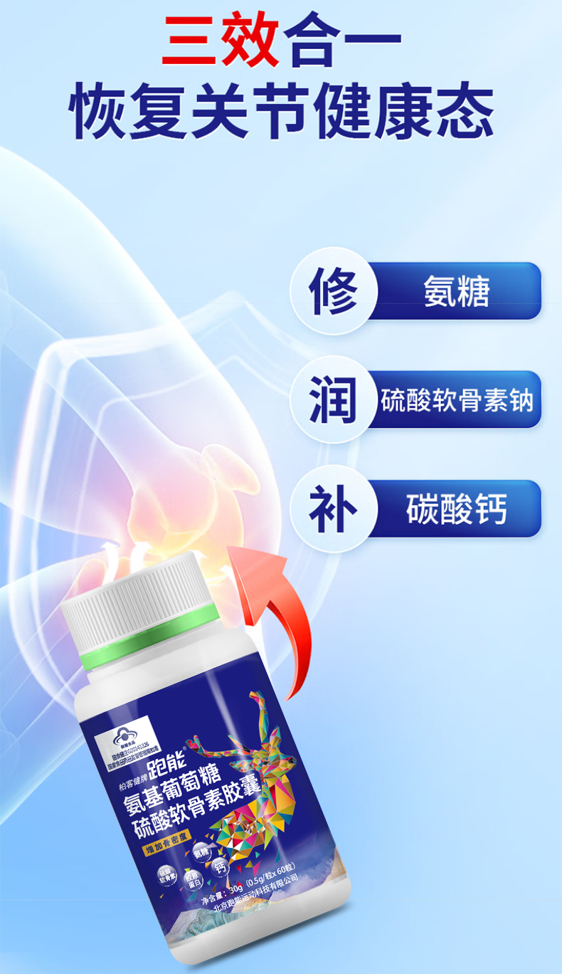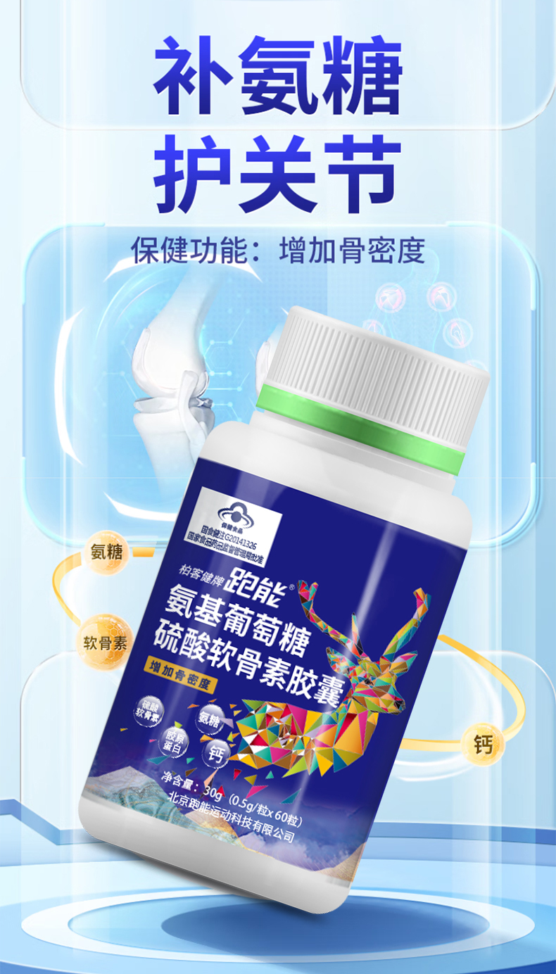 (经常跑步膝盖磨损修复)跑能氨糖软骨素胶囊60粒装【氨糖+软骨素+胶原蛋白+钙】