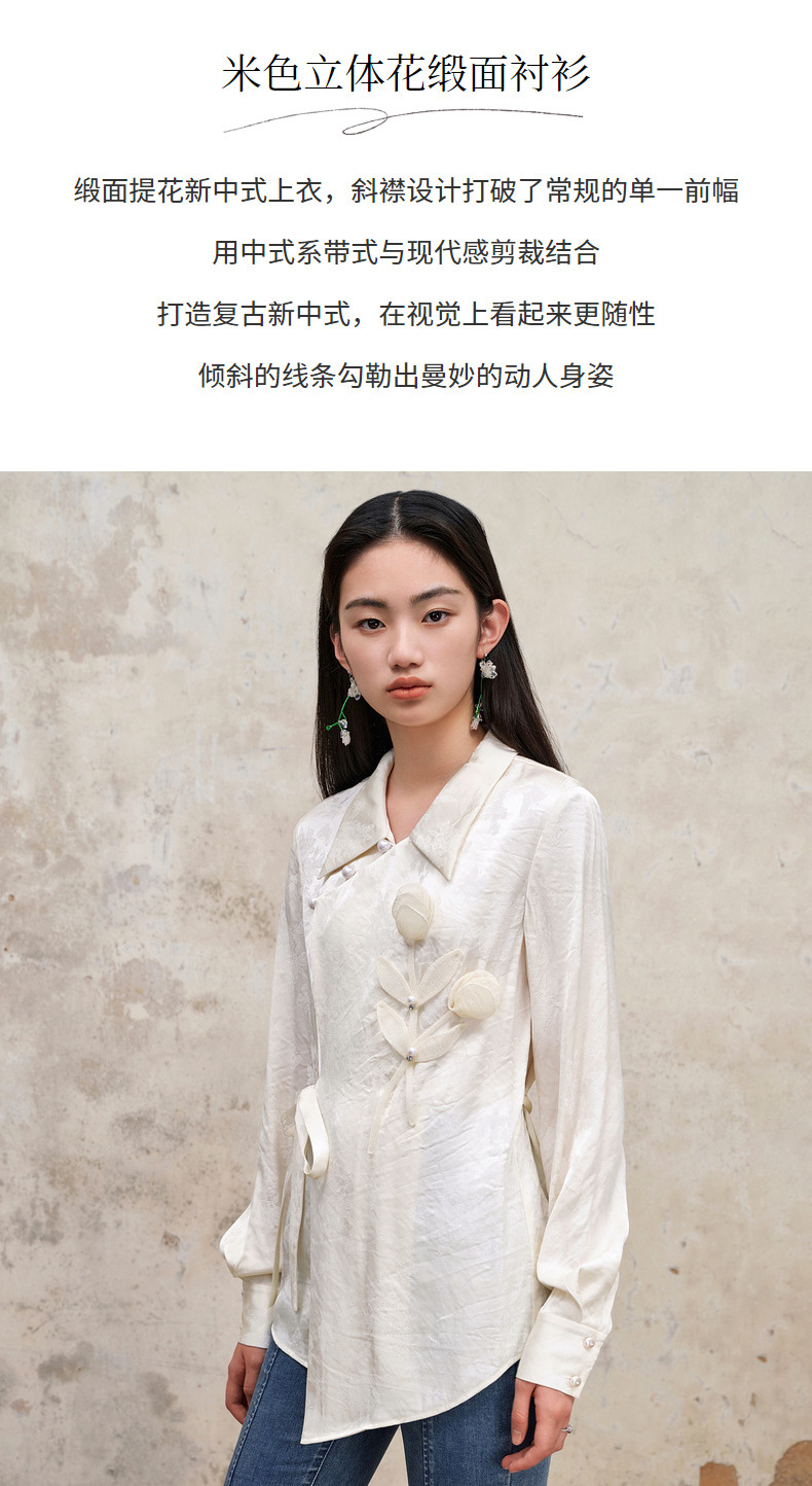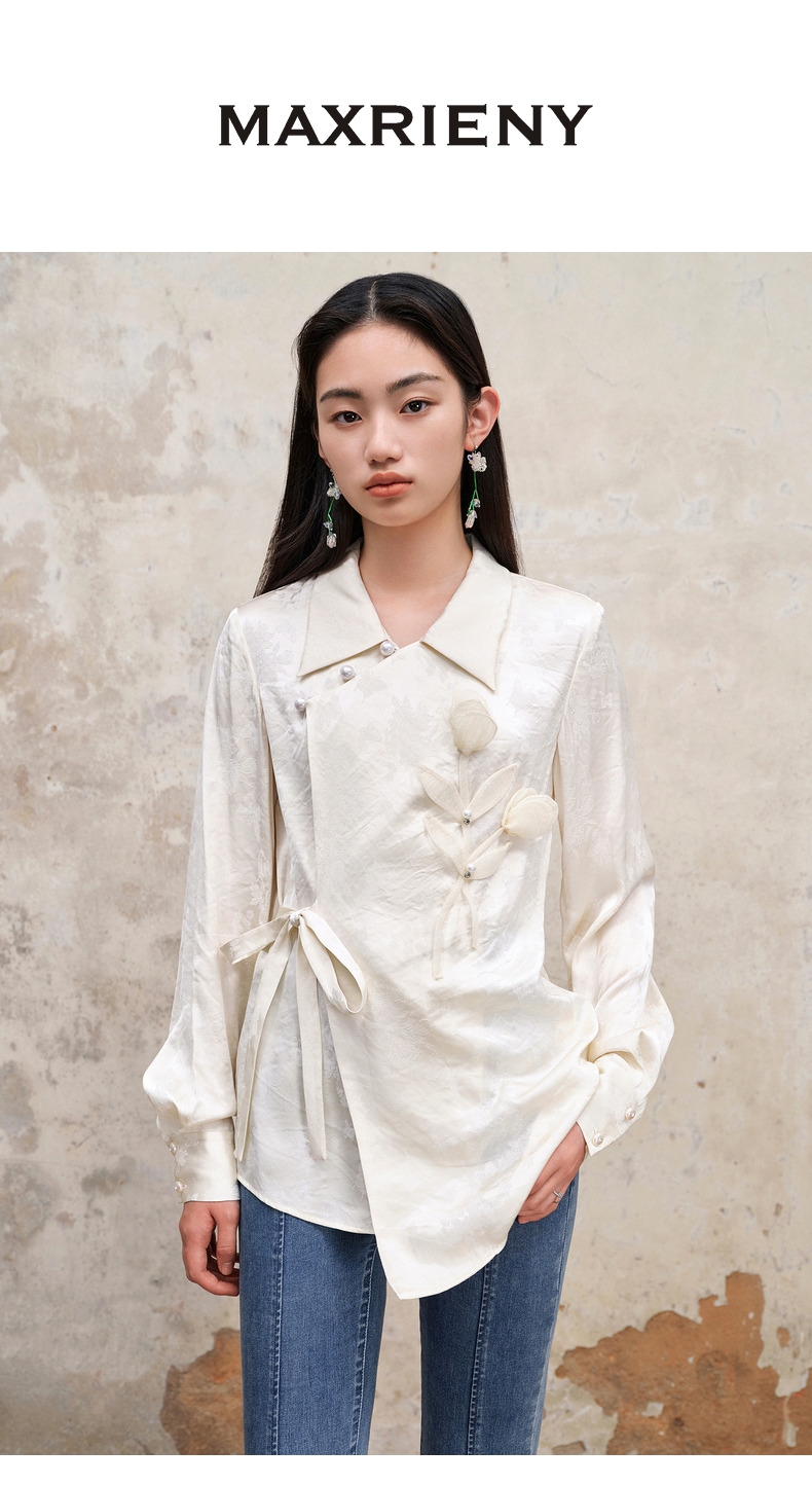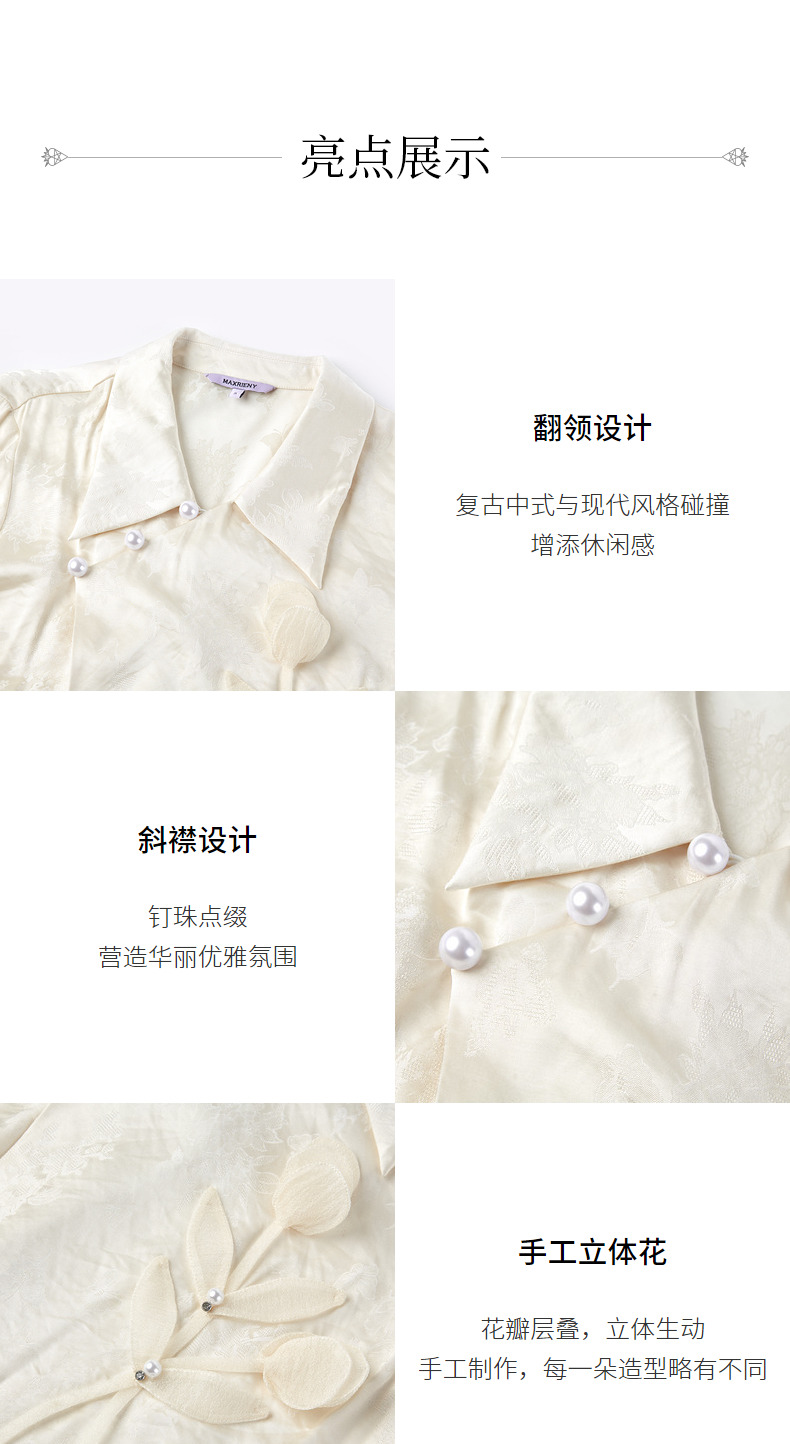 MAXRIENY复古新中式立体提花缎面衬衫女秋季新款衬衣小众设计感(货号:MS88TP536)