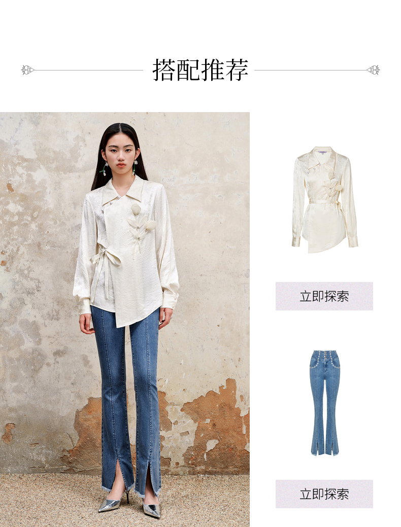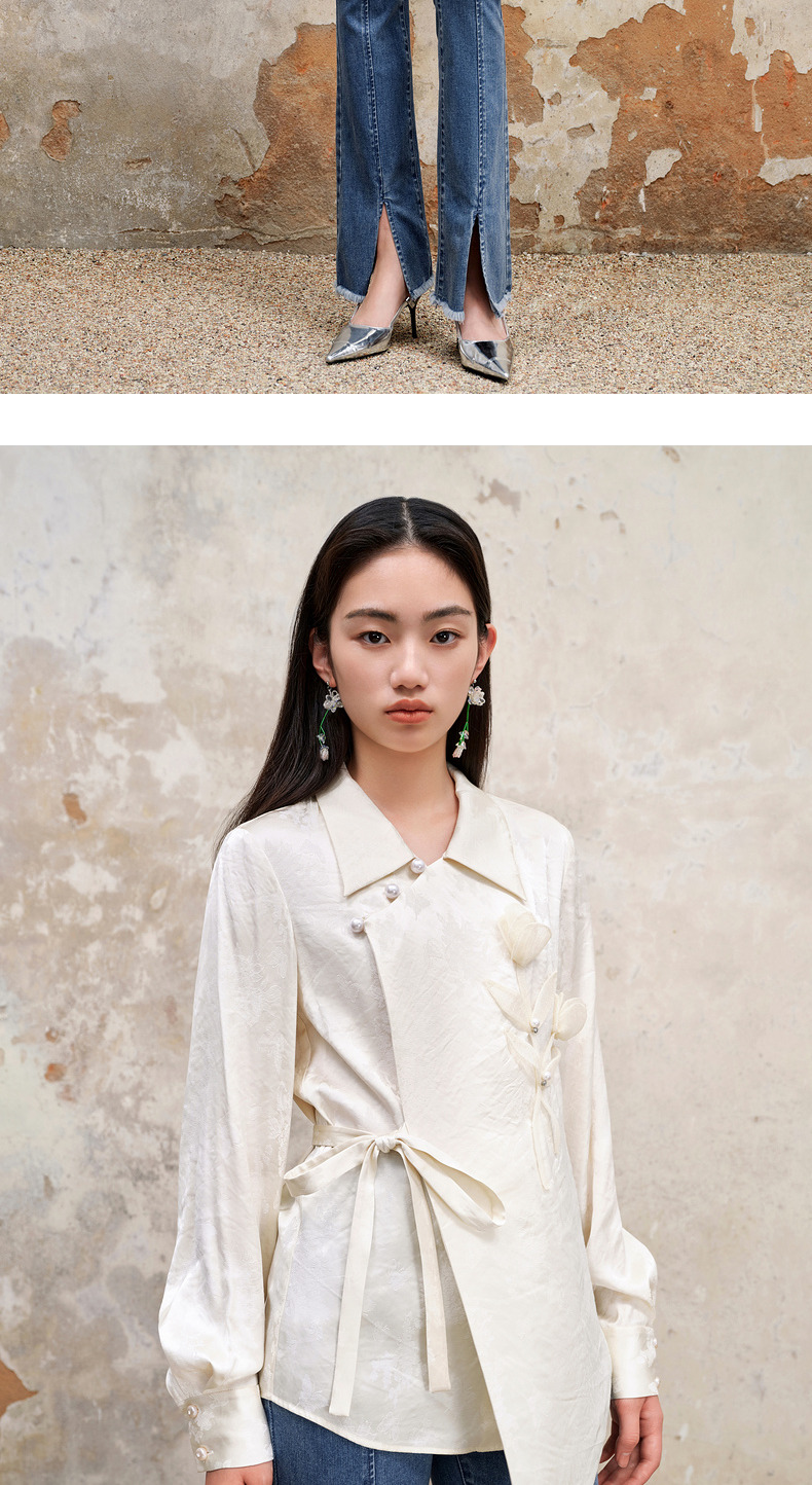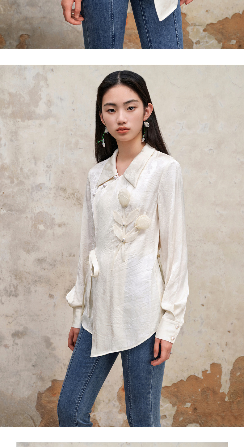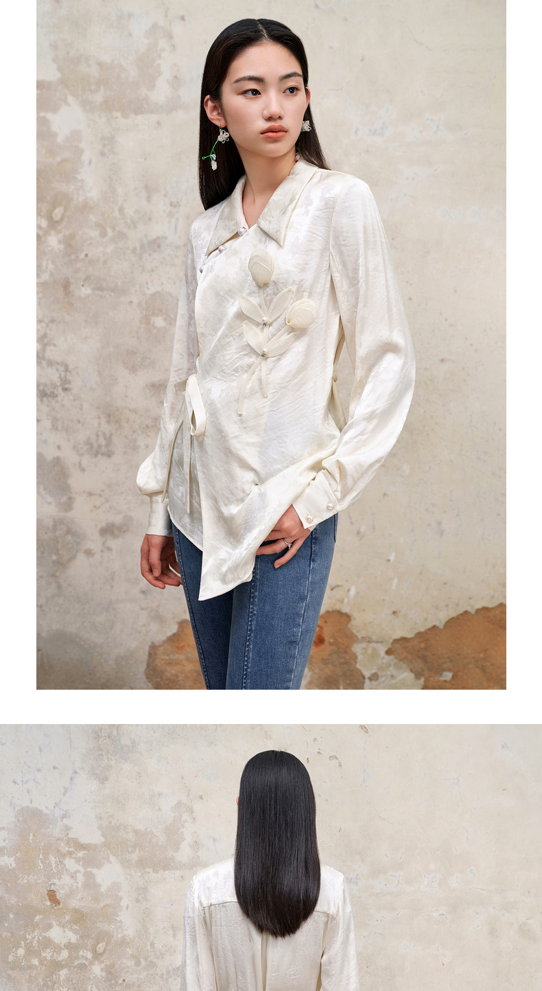 MAXRIENY复古新中式立体提花缎面衬衫女秋季新款衬衣小众设计感(货号:MS88TP536)