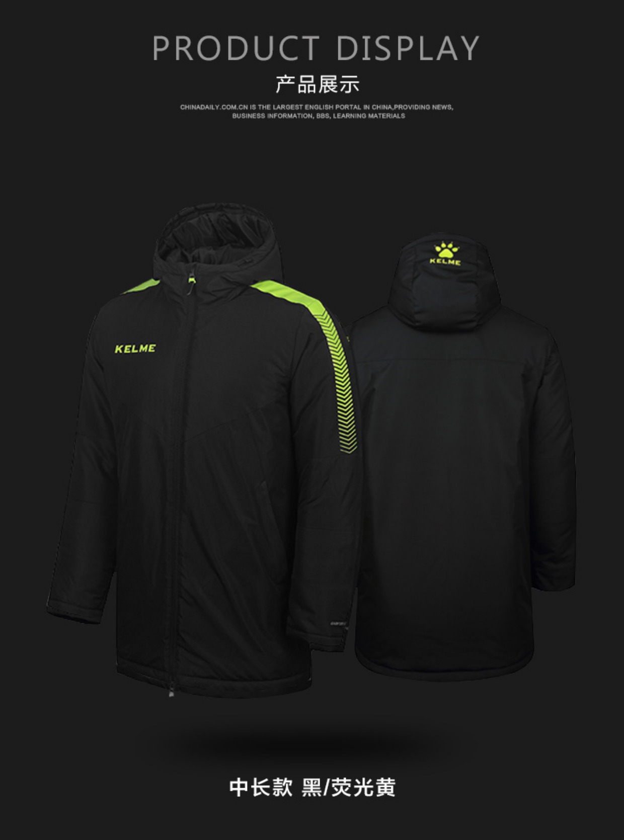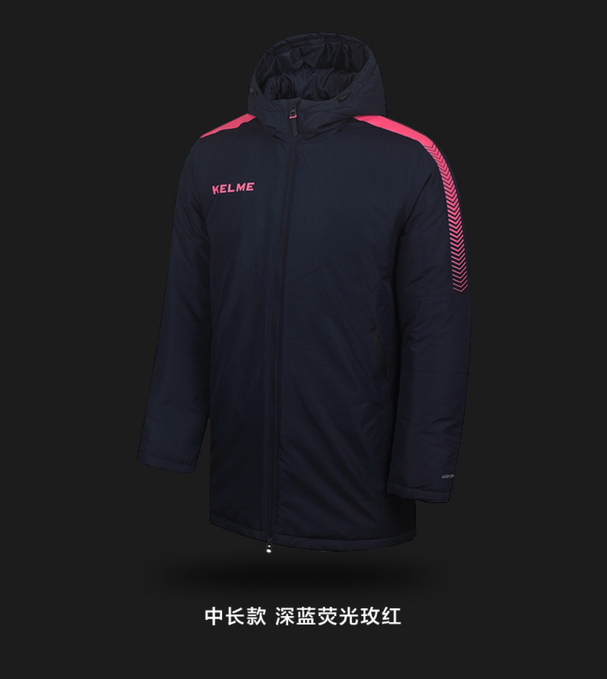 沃恺体育:KELME/卡尔美 2018新款 成人连帽棉服 中长款/长款 3871403/3871404