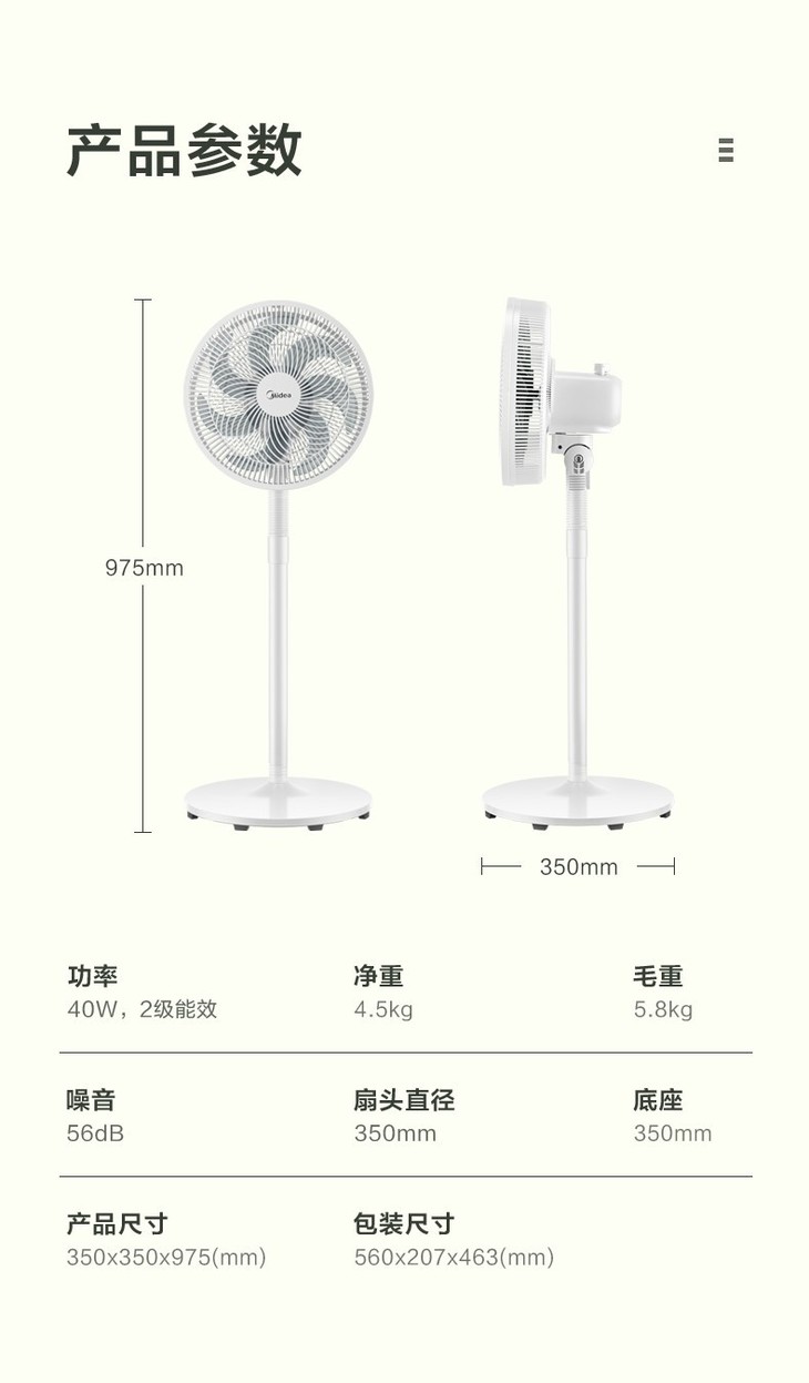 【美的 SAF30AC电风扇】家用落地扇台立两用7叶机械式电扇简约新款