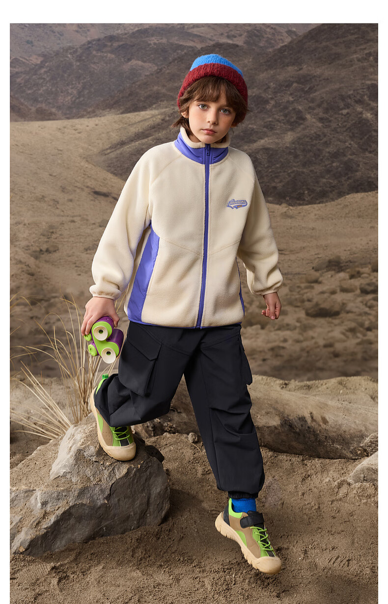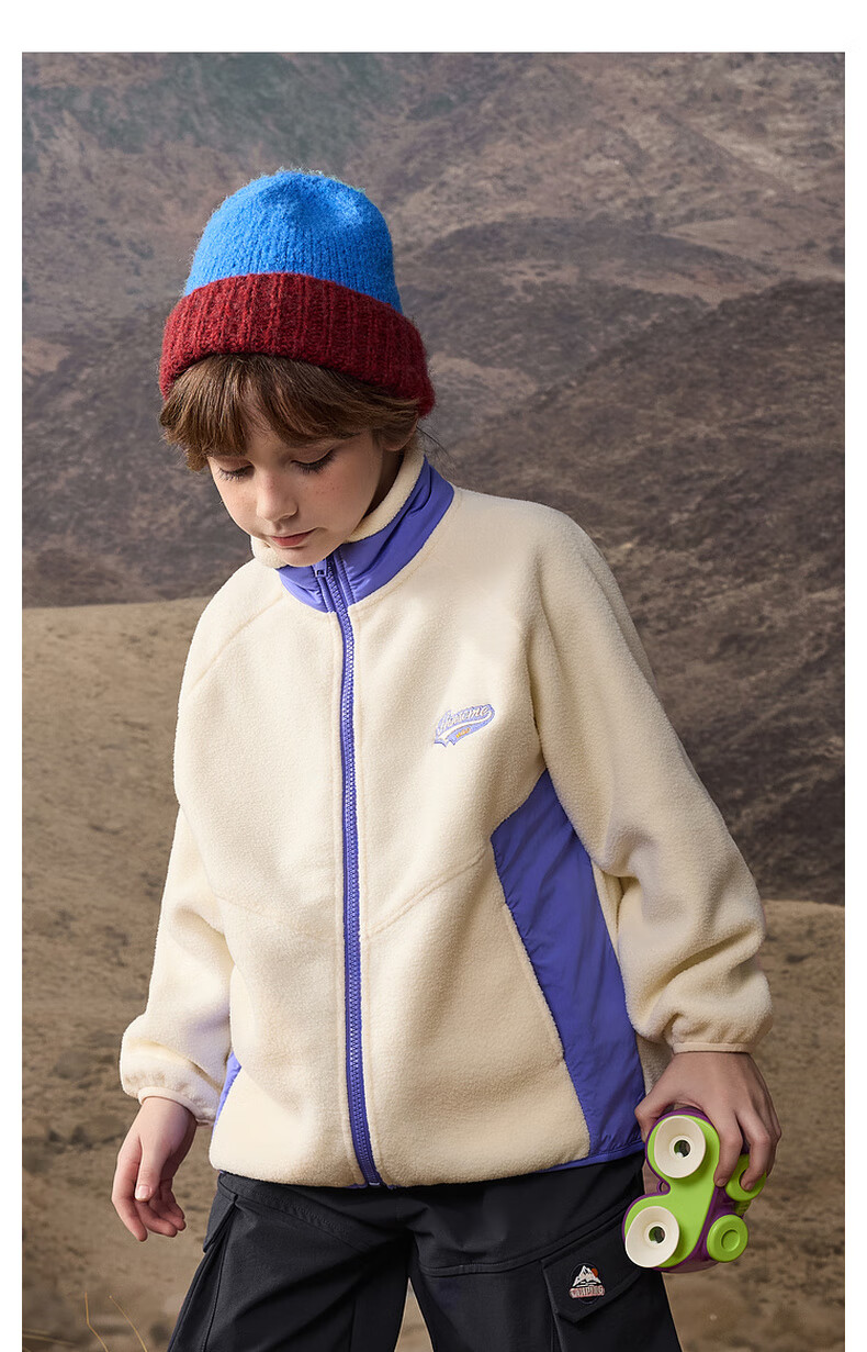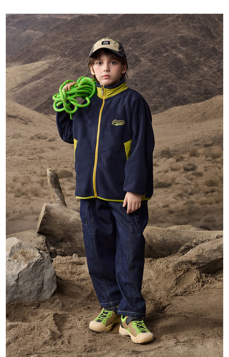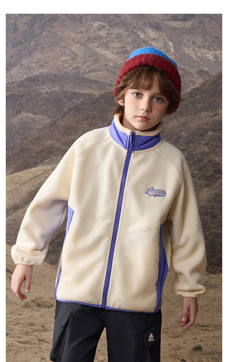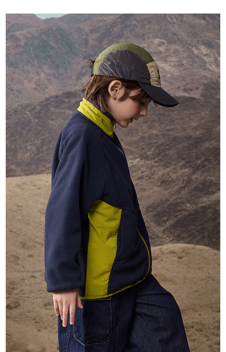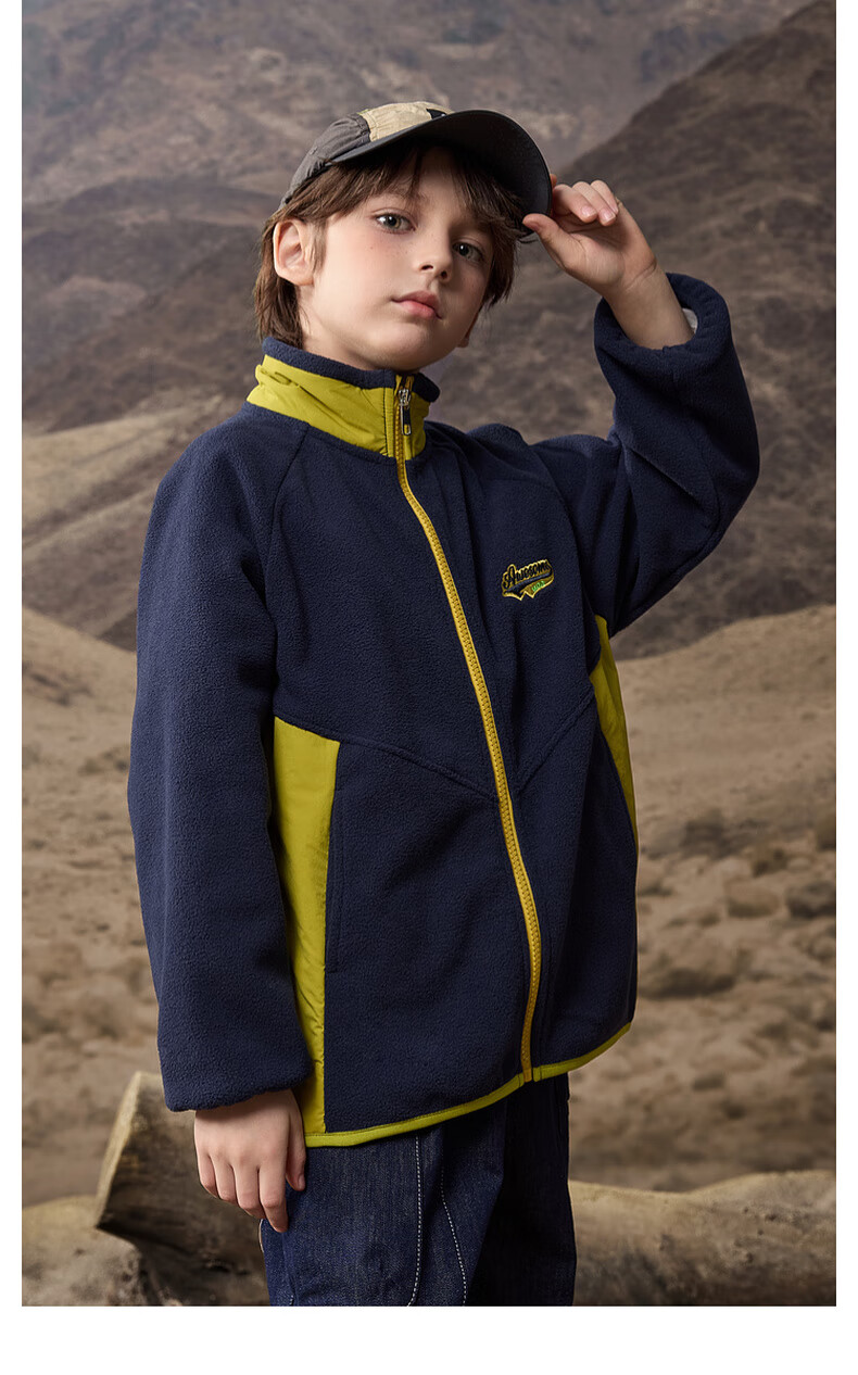 【MQD】秋季男大童潮酷户外内搭休闲撞色立领摇粒绒外套