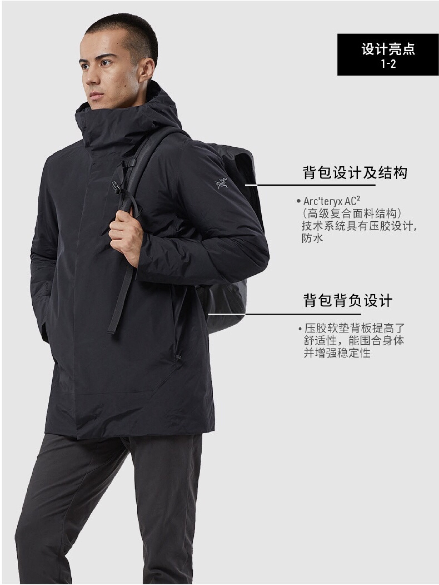 AC²技术系统具有压胶设计,防水。压胶软垫背板提高了舒适性,能围合身体并增强稳定性,15寸加厚笔记本断隔,带法律文件隔层和一体式弹力网布拉链口袋。