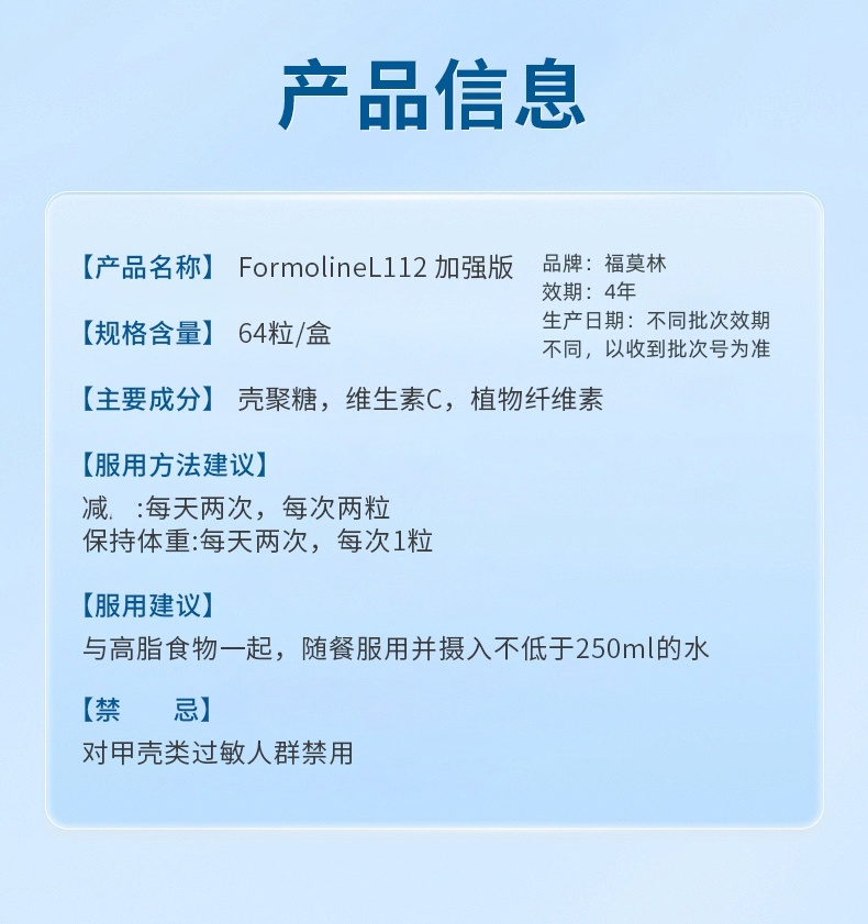 【跨境】德国Formoline 福莫林 L112 EXTRA加强版膳食纤维素补充剂 64粒/盒