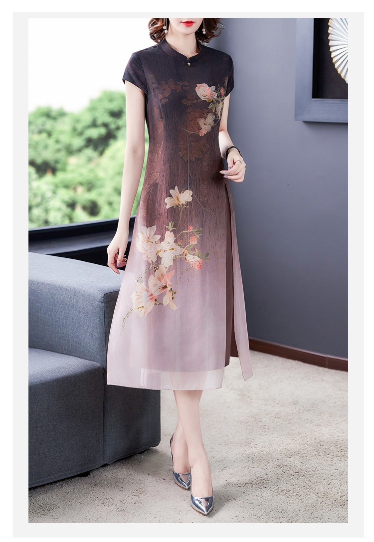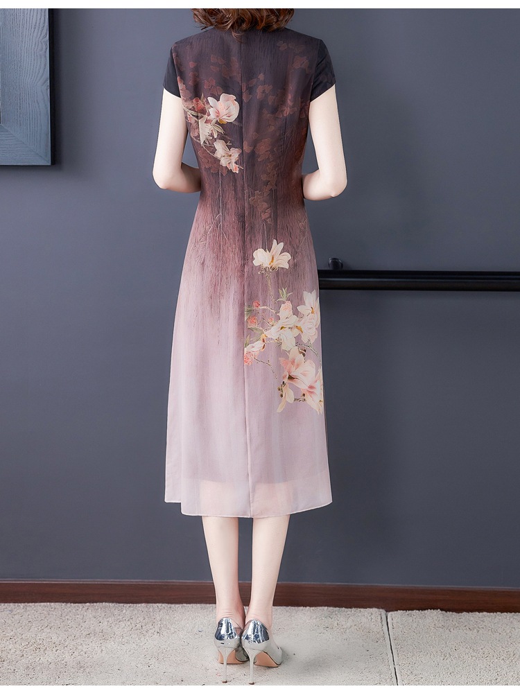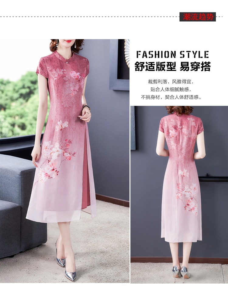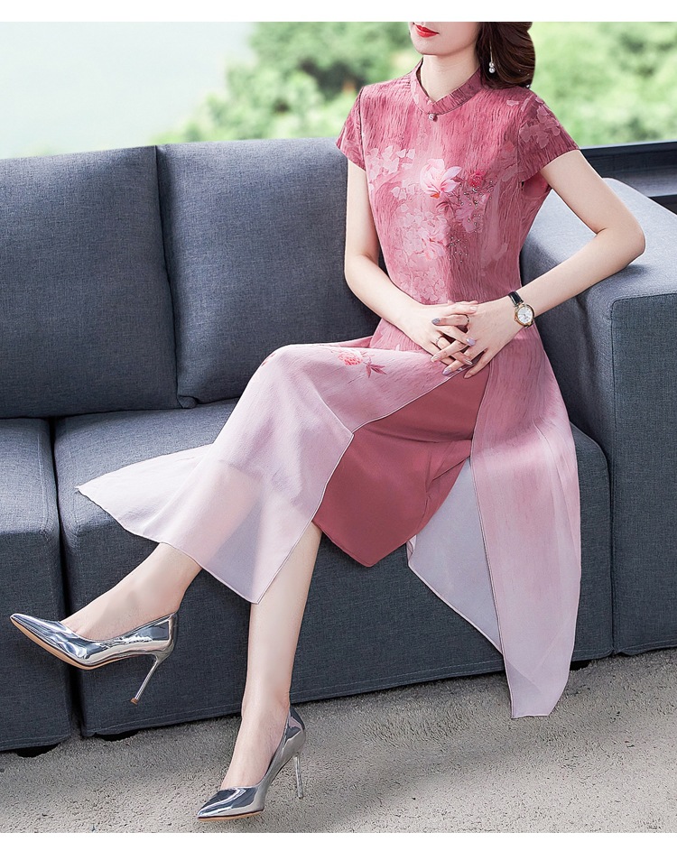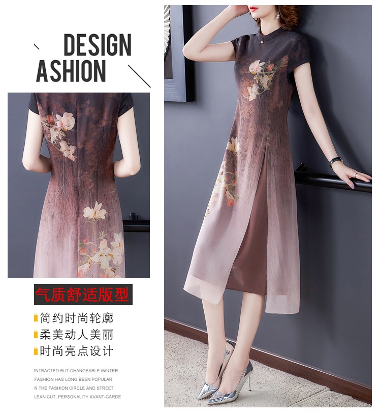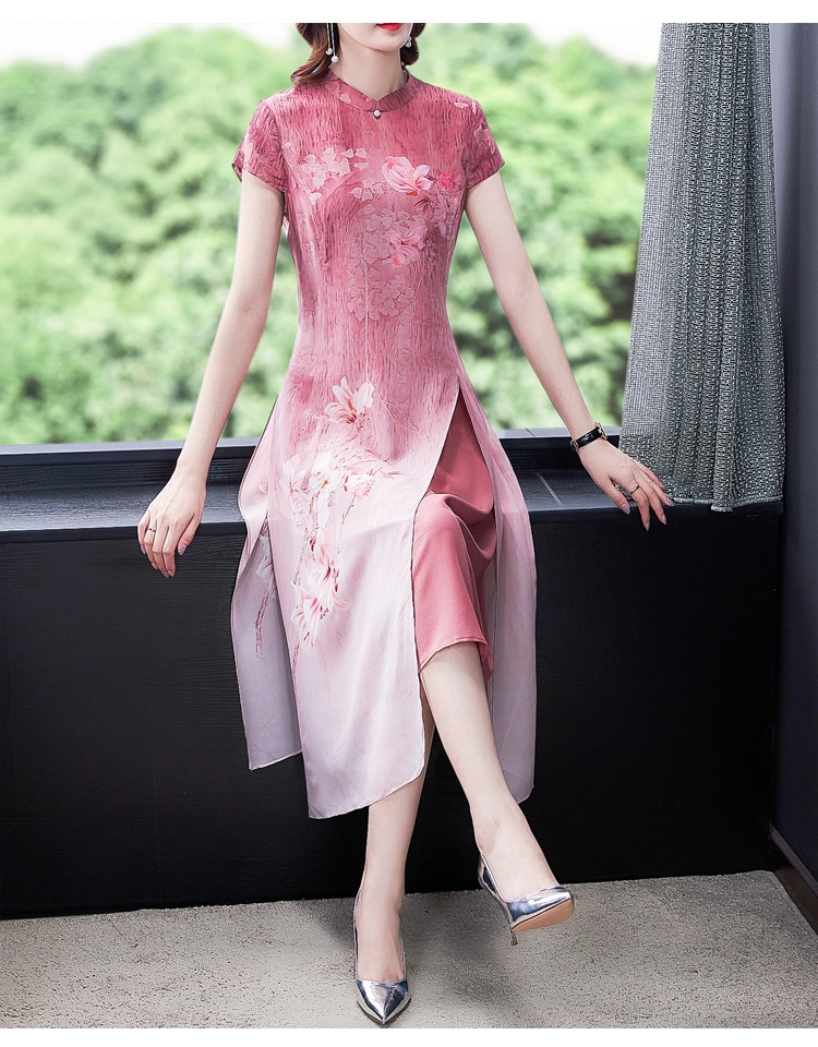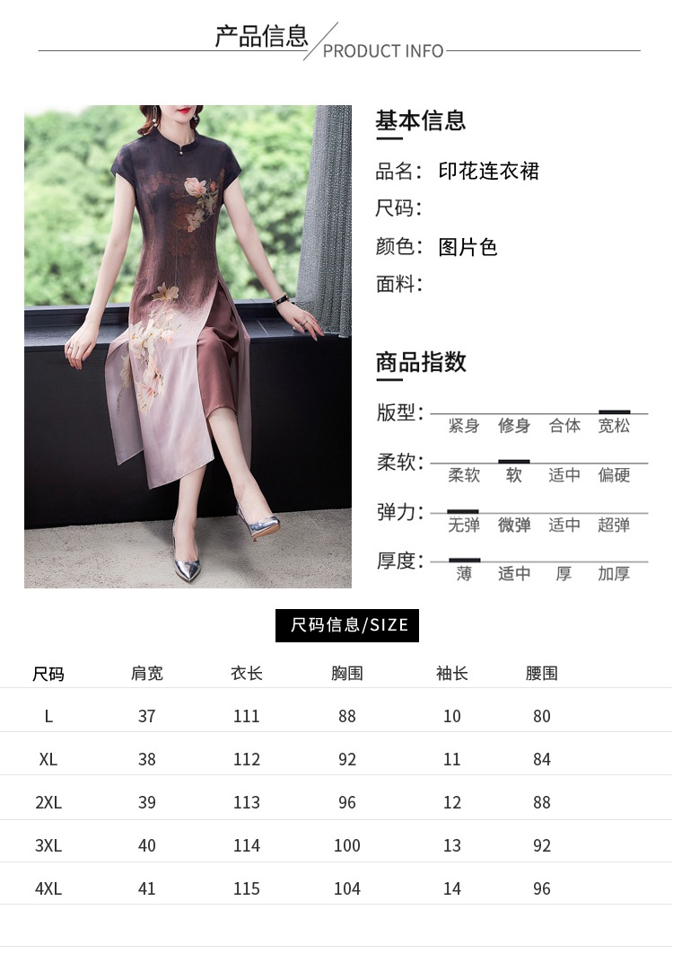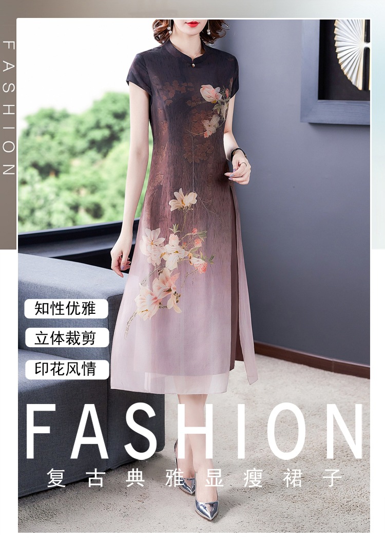 AHM-hfjr7122新款气质复古显瘦减龄渐变印花改良旗袍裙