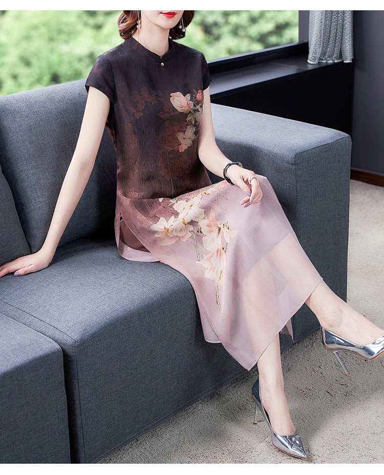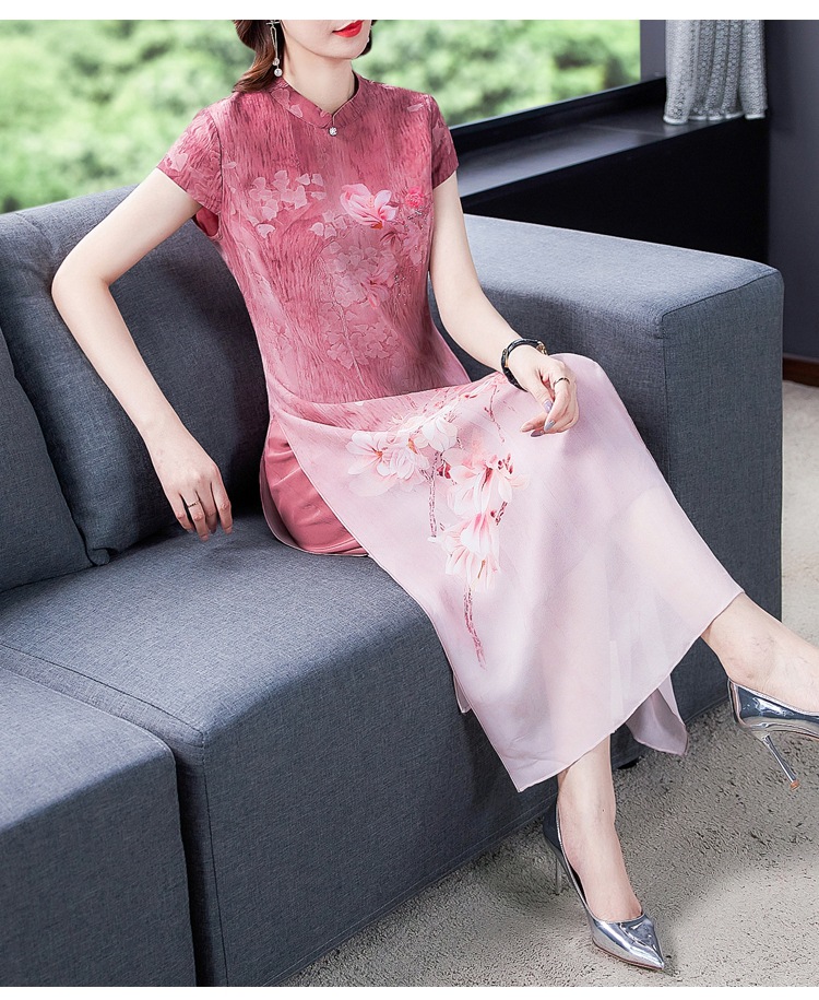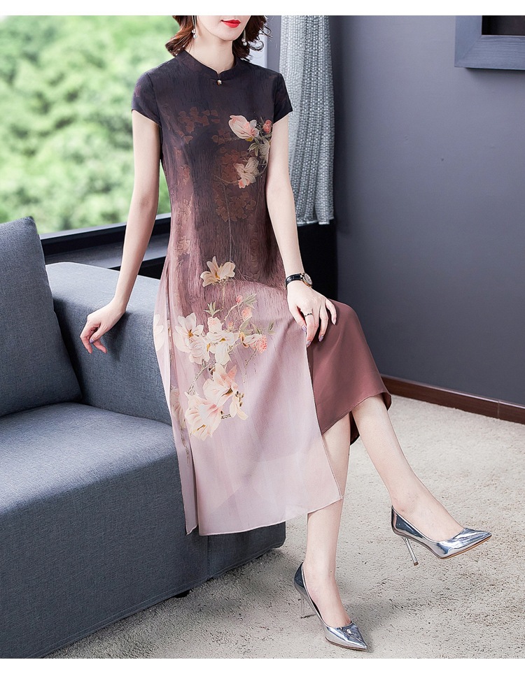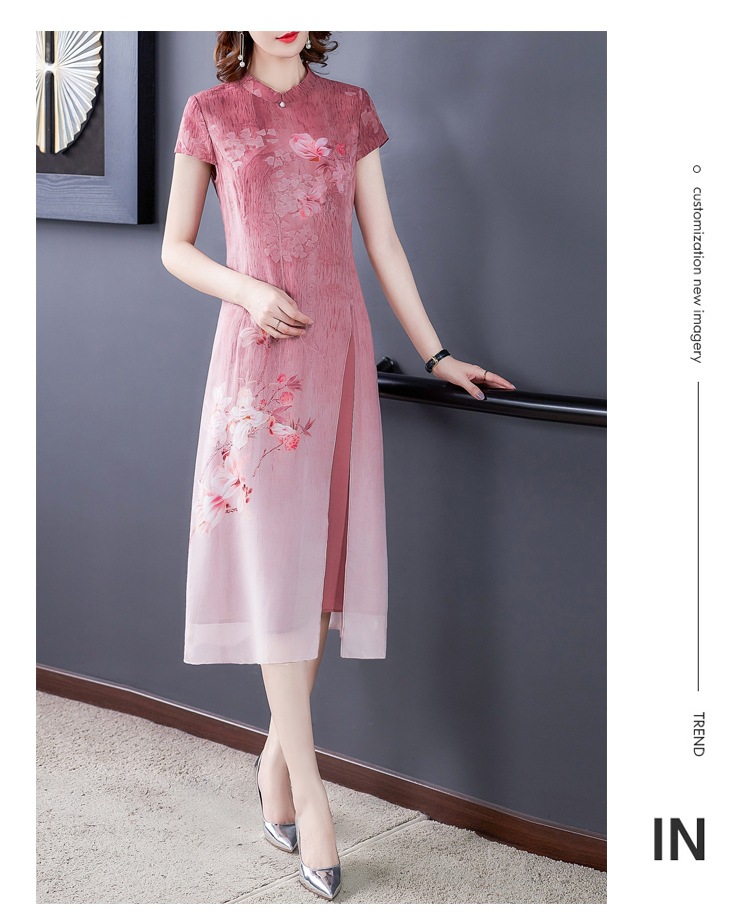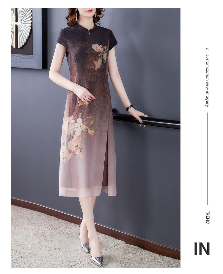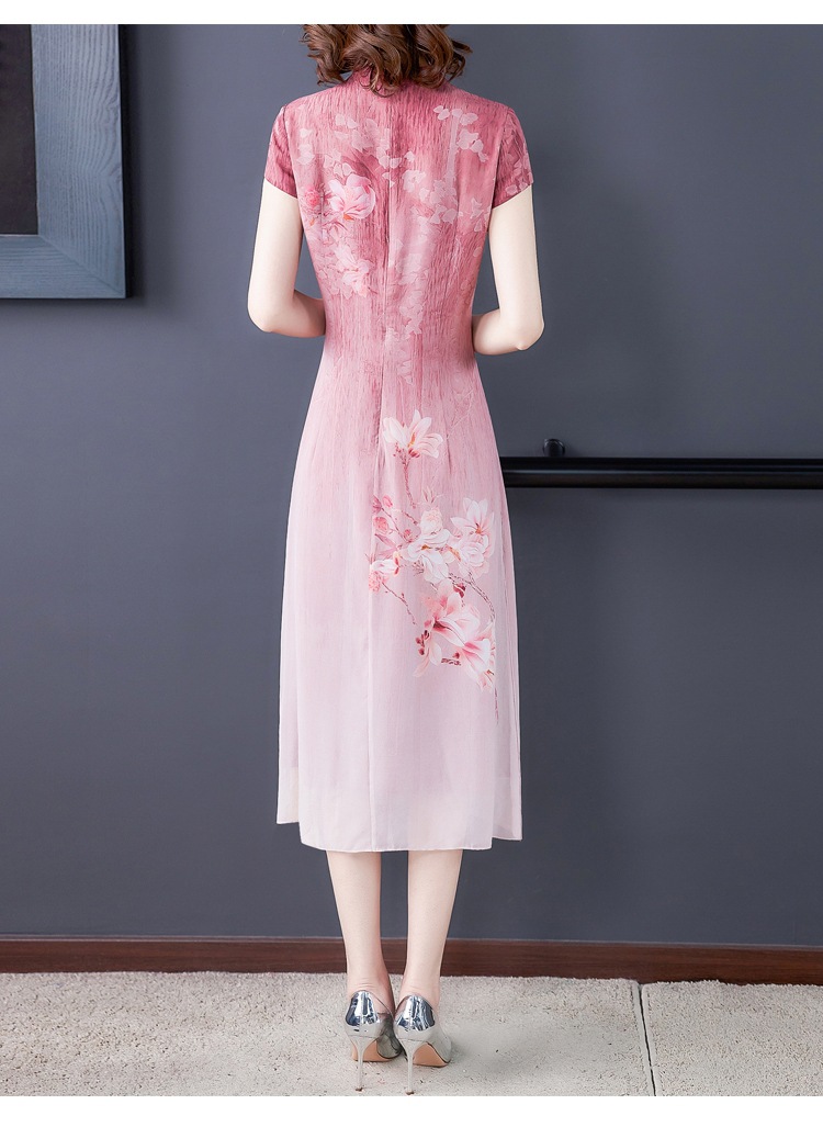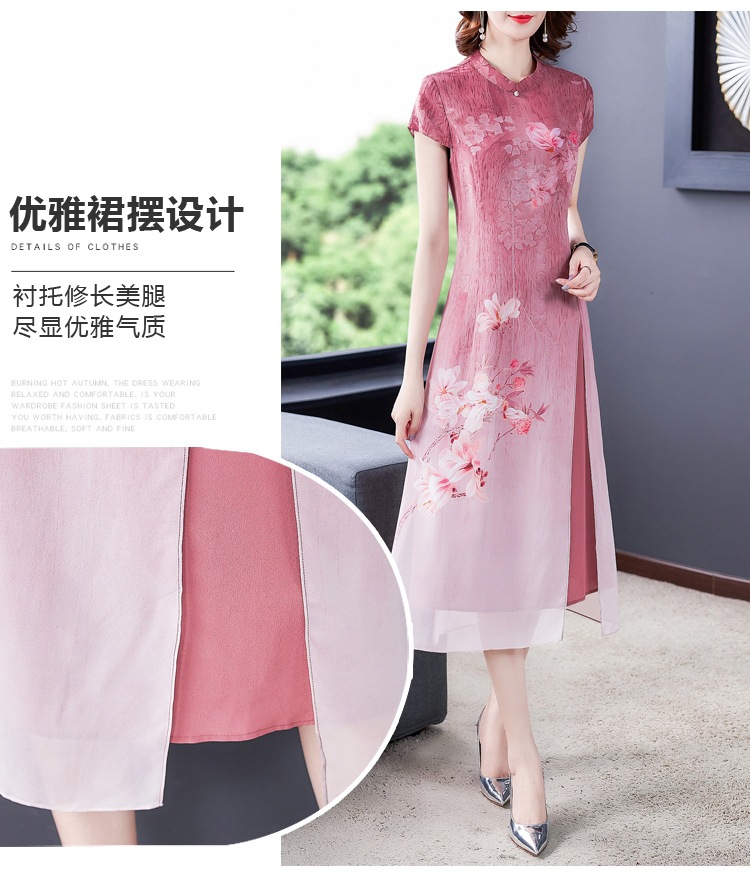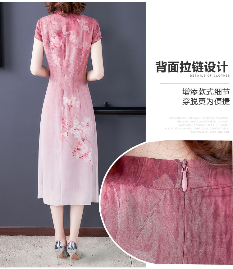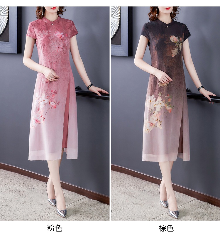AHM-hfjr7122新款气质复古显瘦减龄渐变印花改良旗袍裙