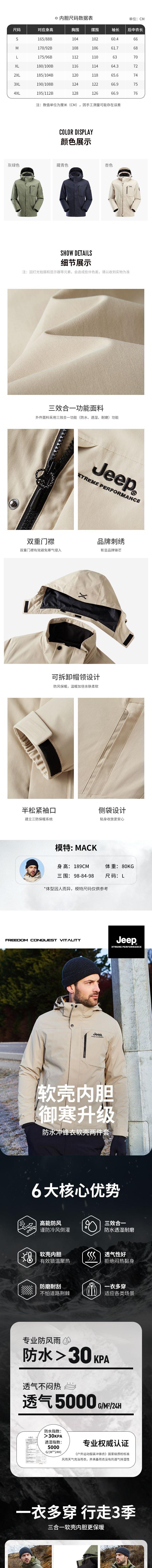 JEEP吉普 男冲锋衣软壳两件套 J232094082