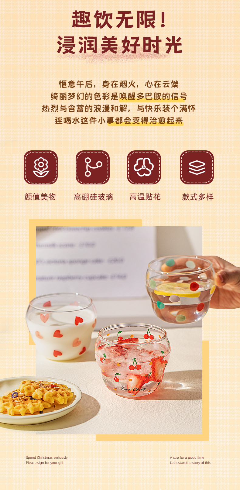 摩登主妇高硼硅玻璃杯耐高温豆浆杯高颜值水杯家用酸奶杯女早餐杯