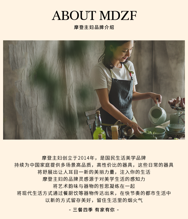 - 摩登主妇的创始人娜娜,是一个普通的80后妈妈,因为一个简单而执着的想法,要让“中国制造”的优质商品走进国内主妇们的生活,摩登主妇的品牌页由此而来。