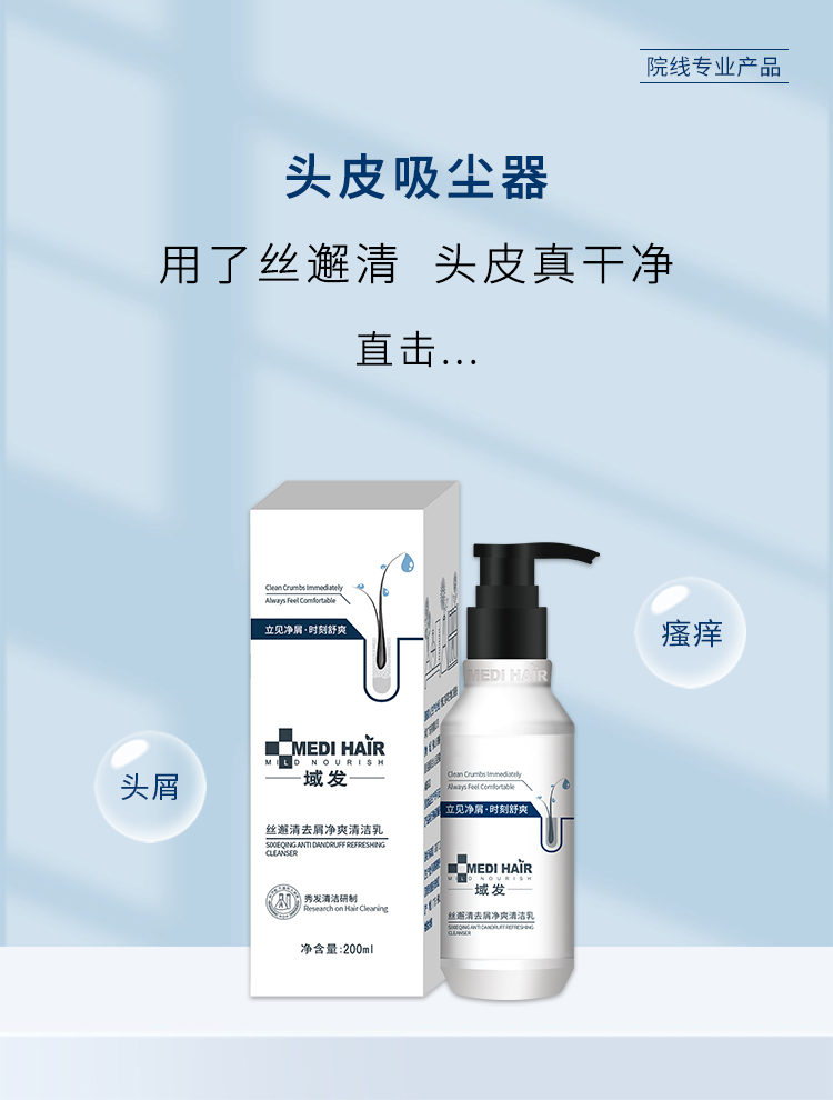域发丝邂清去屑净爽清洁乳200ml(原喷剂敷料 丝屑清洗剂新包装)