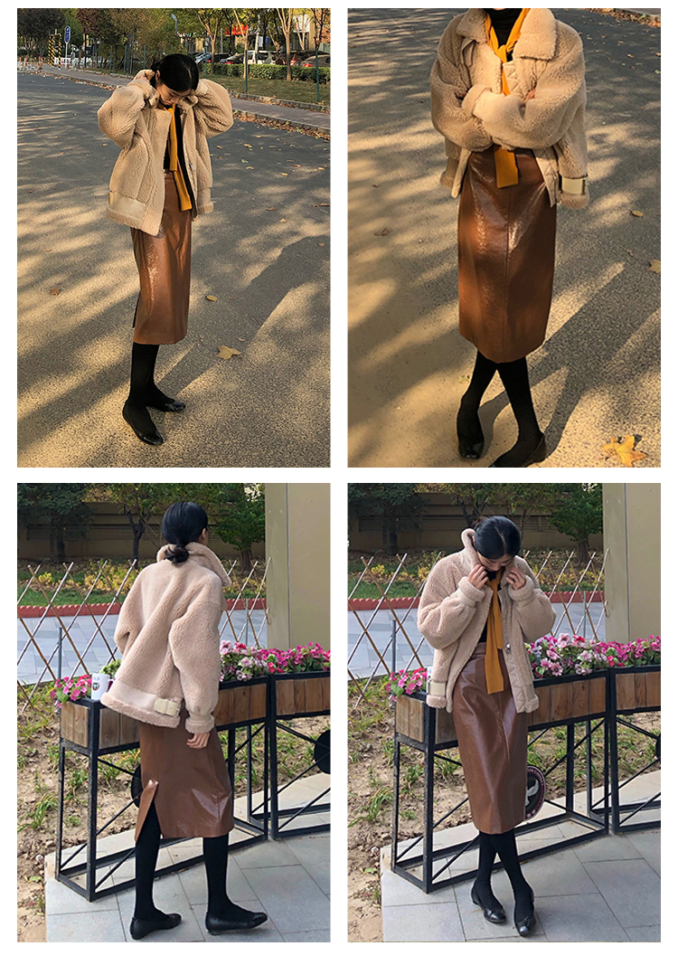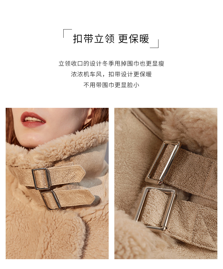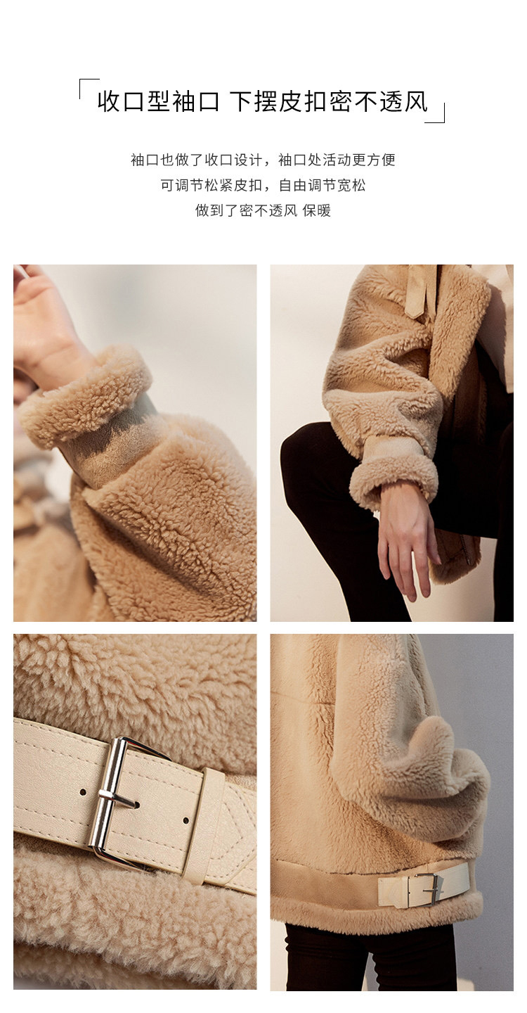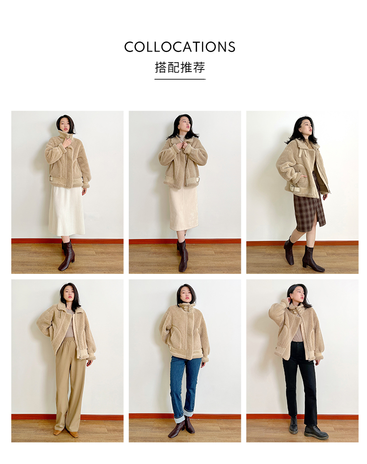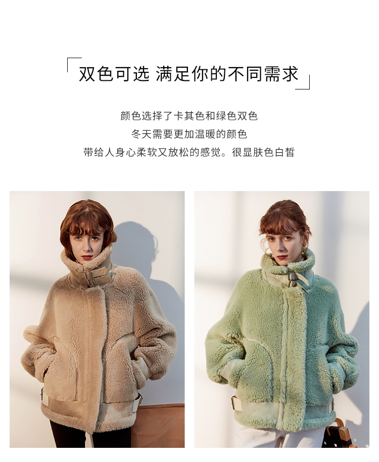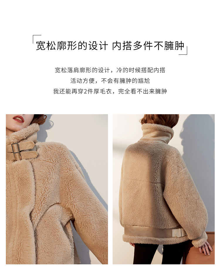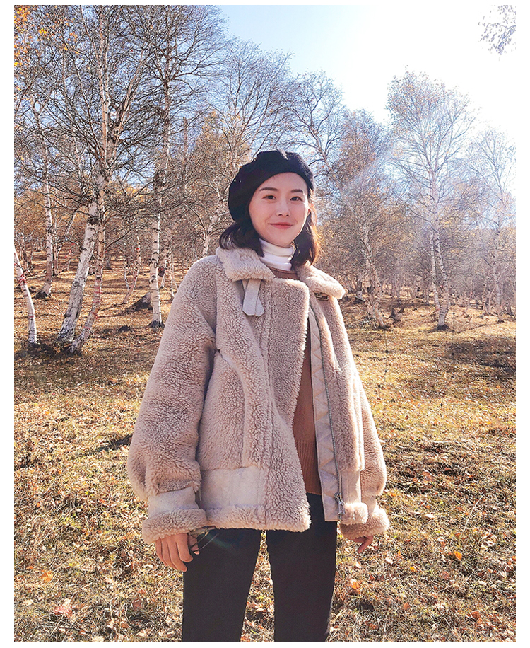 皮毛一体外套女秋冬短款颗粒羊剪绒机车羊羔毛皮草大衣