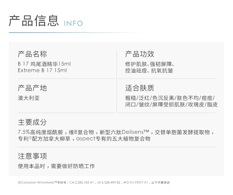 澳洲aspect爱仕珀B17鸡尾酒精华15ml