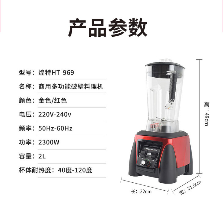 煌特HT-969沙冰机商用 大功率2300w奶茶店破壁料理机沙冰打果汁碎冰榨汁豆浆机