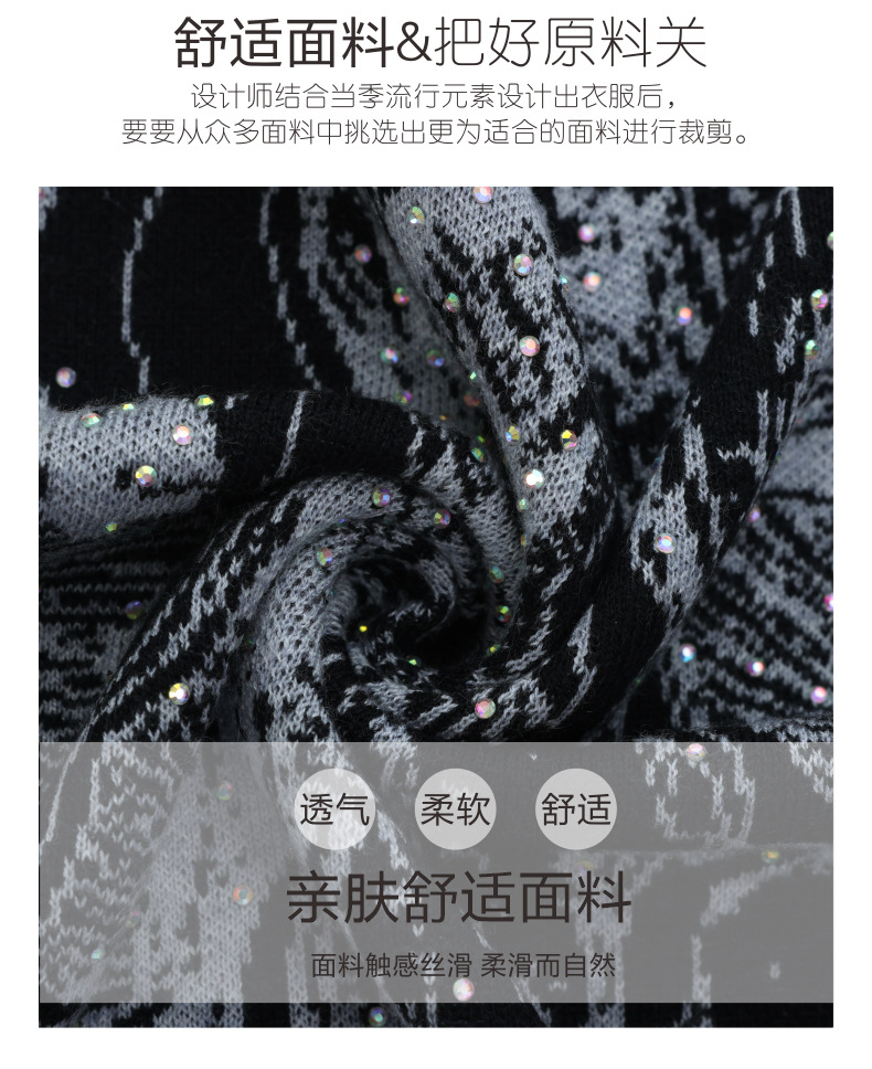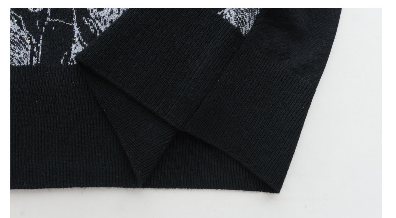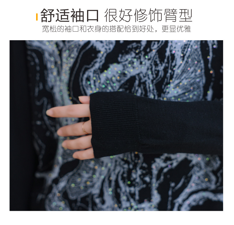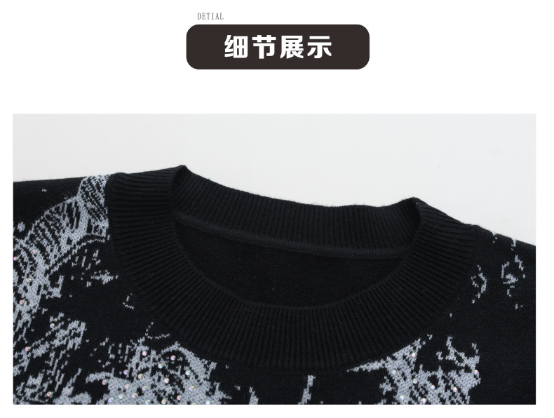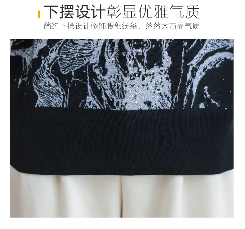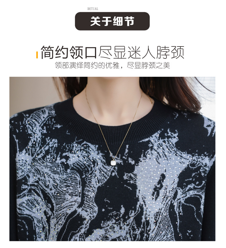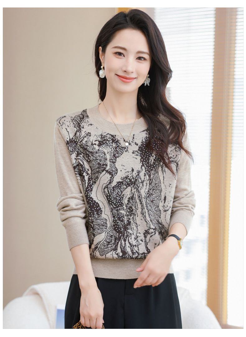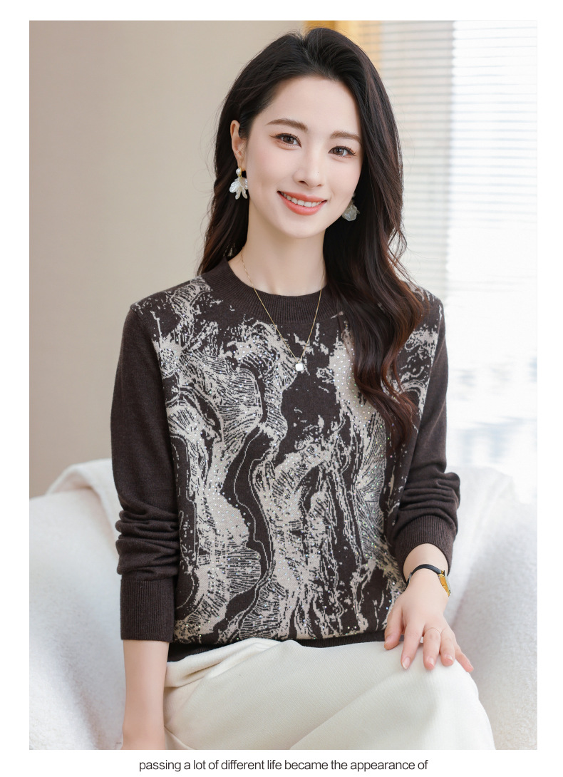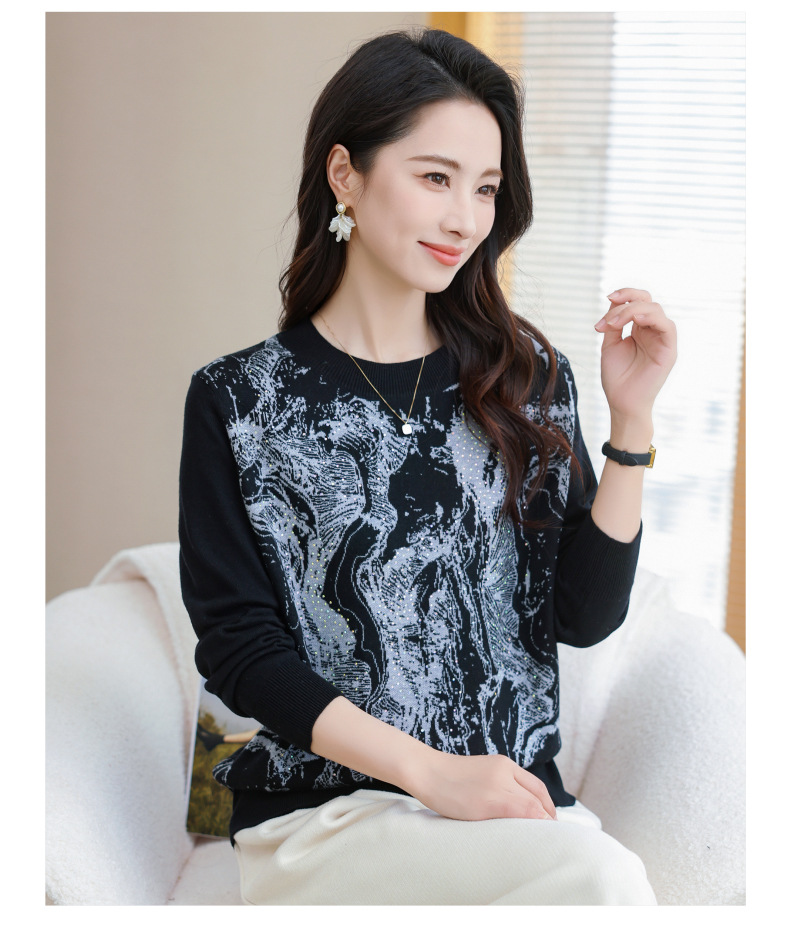 CC-28-1275复古印花羊毛针织衫秋季百搭显瘦休闲长袖圆领水墨画女士打底上衣