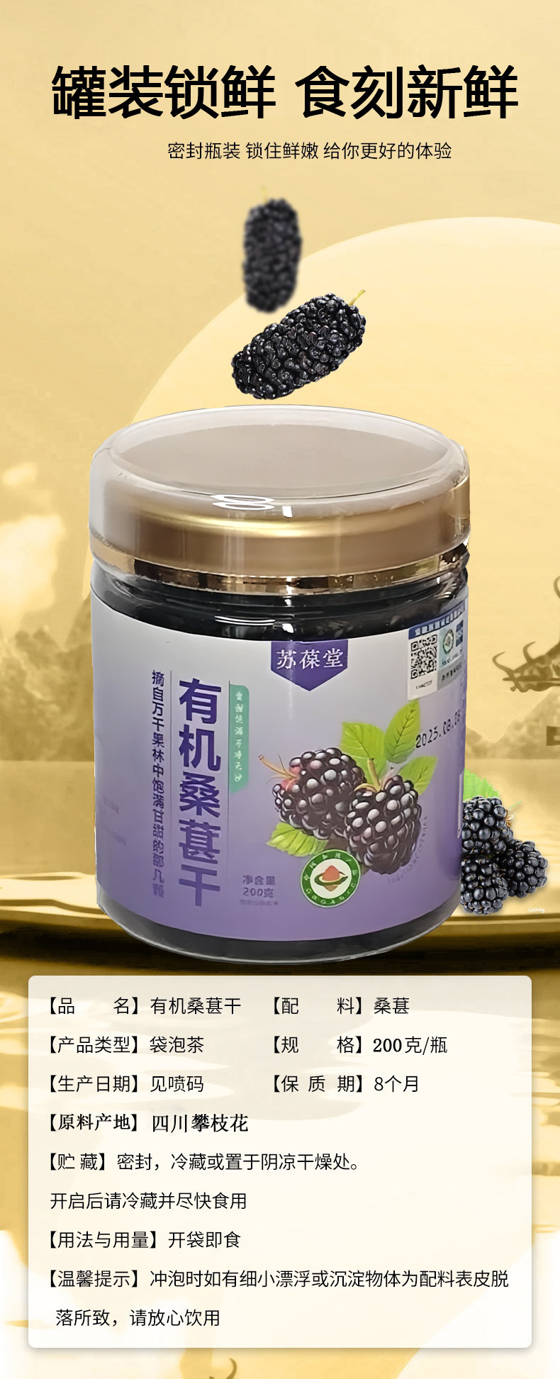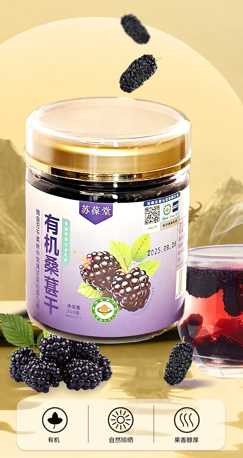 【节前停发 节后发货】苏葆堂 有机桑葚干200g罐装 绿色有机桑椹果干
