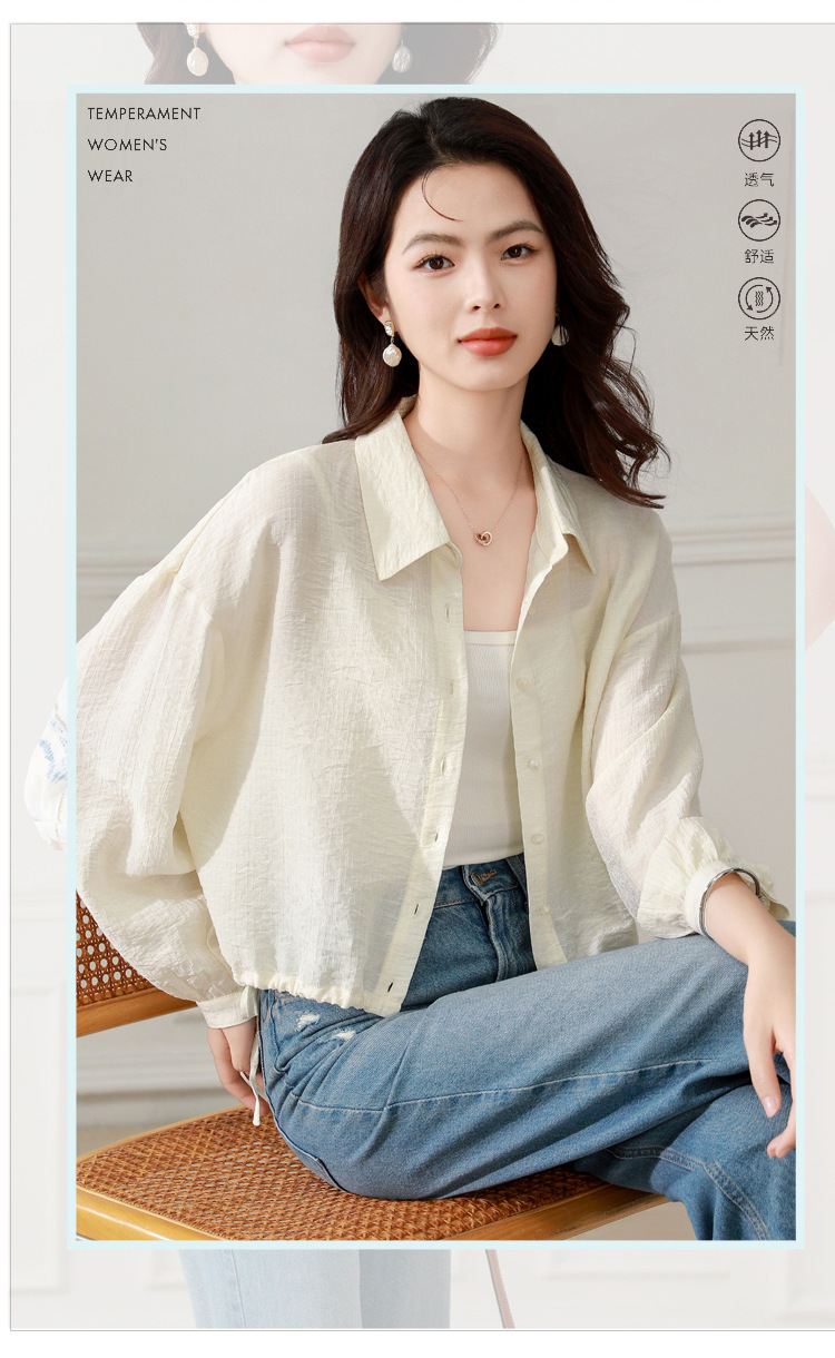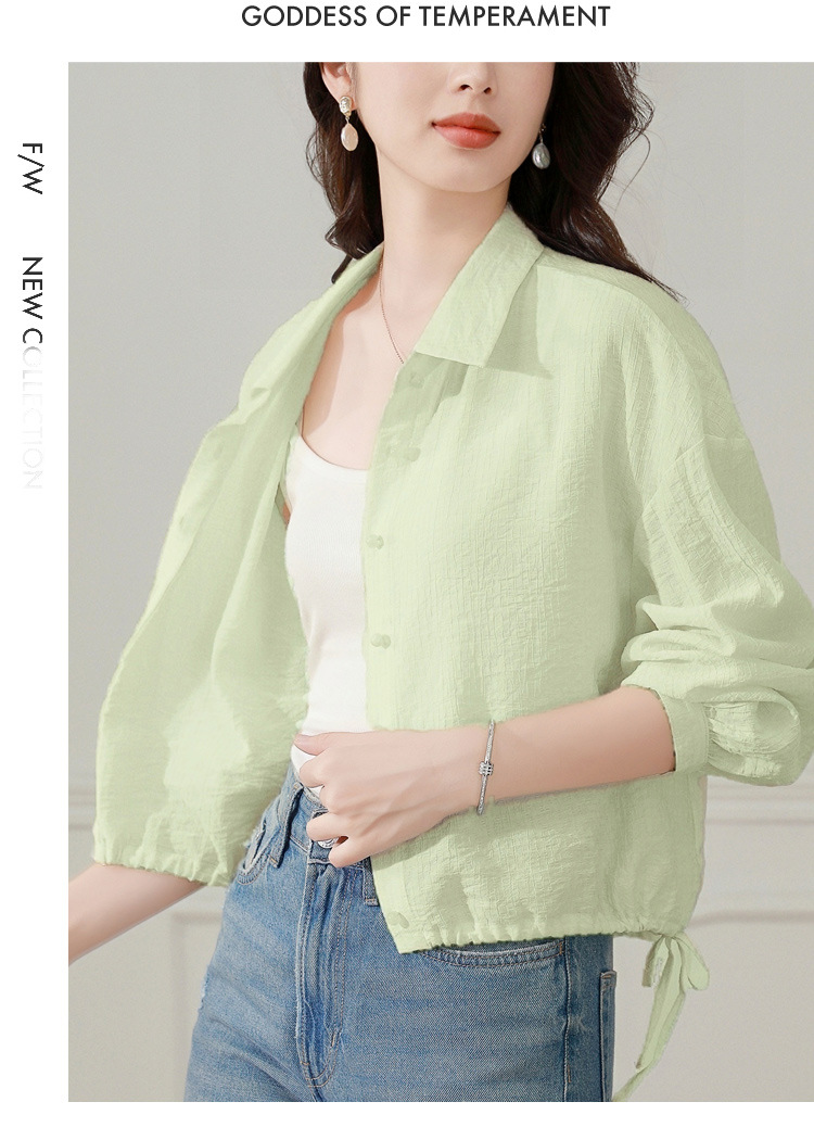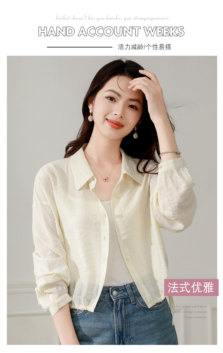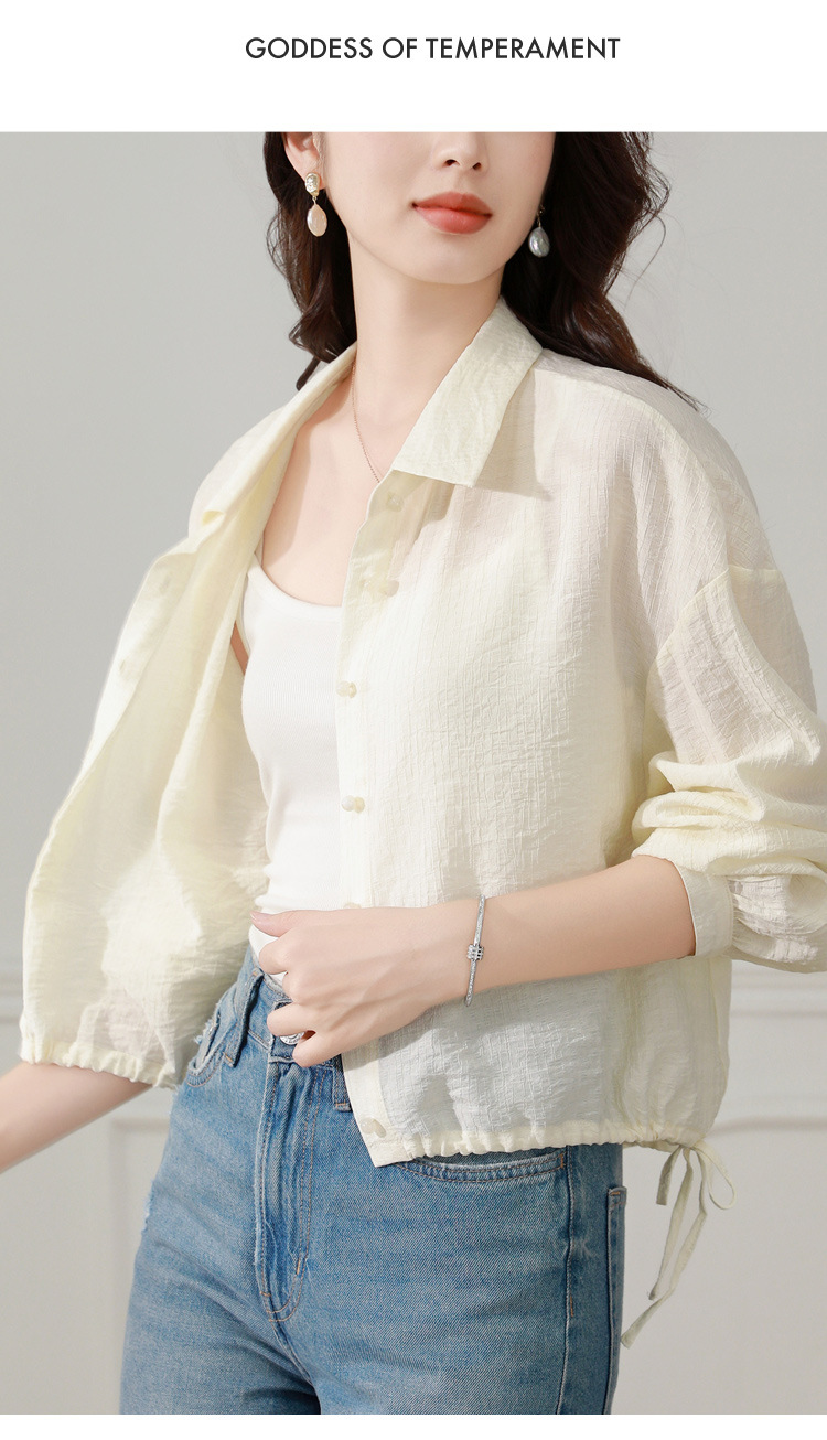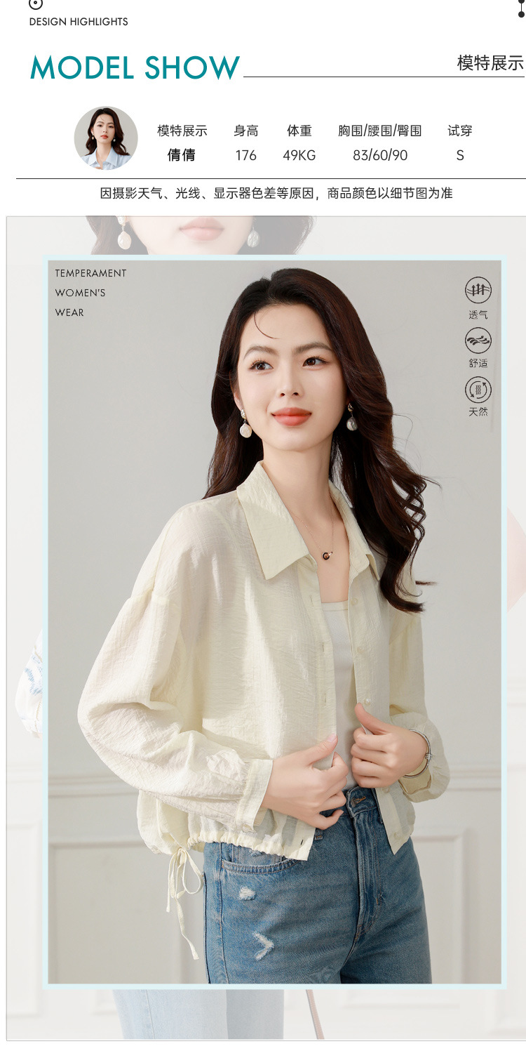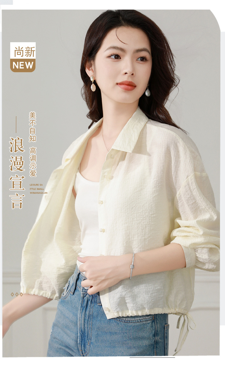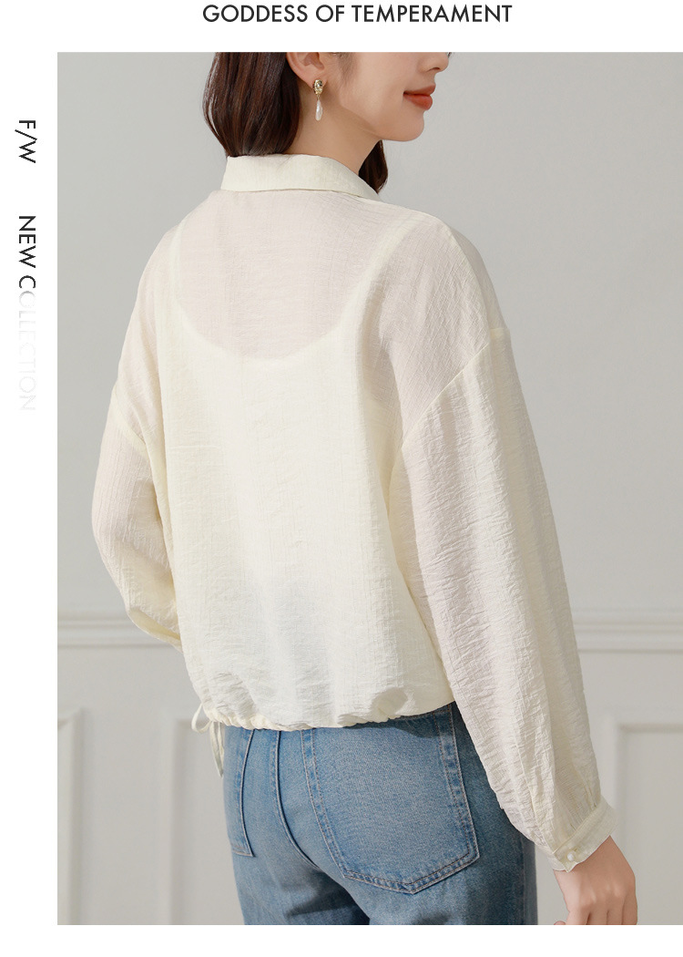 雀说长袖衬衫防晒衣抽绳衬衣宽松肌理防晒衫上衣AL1611