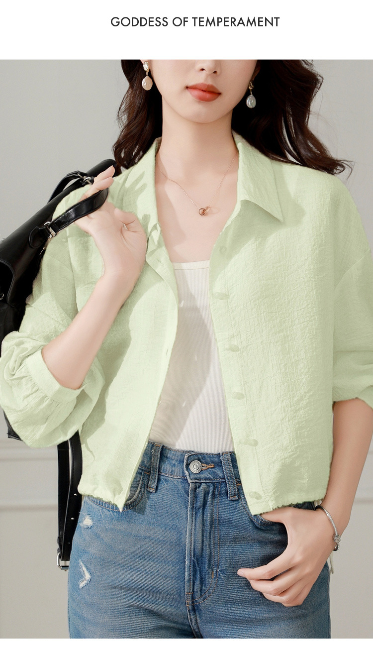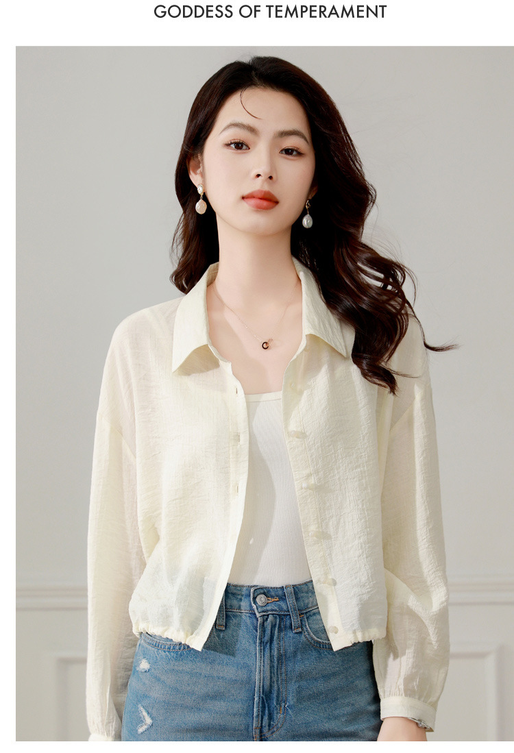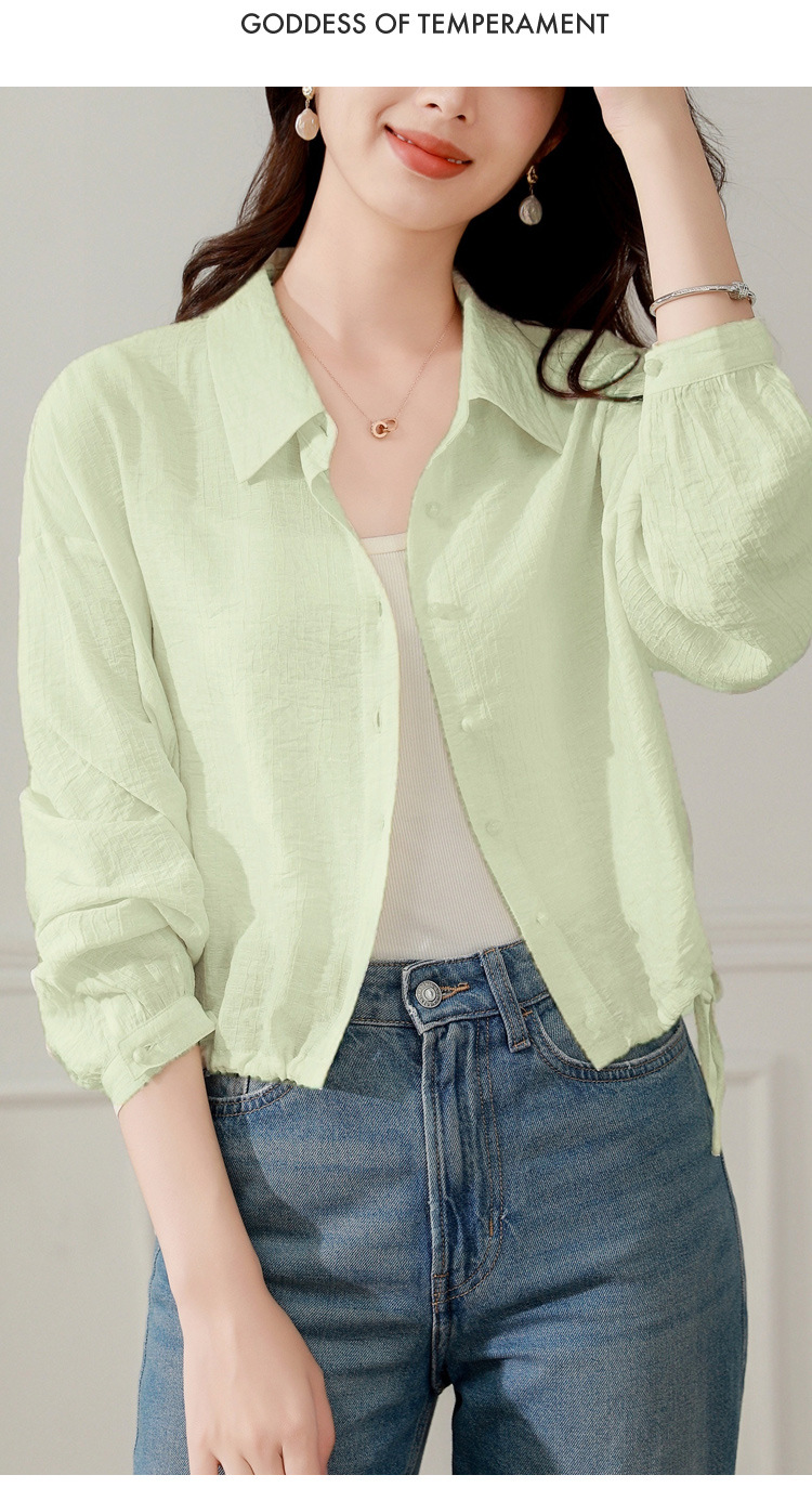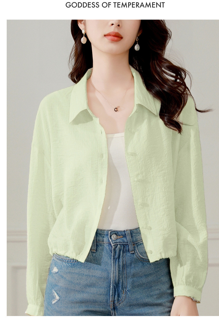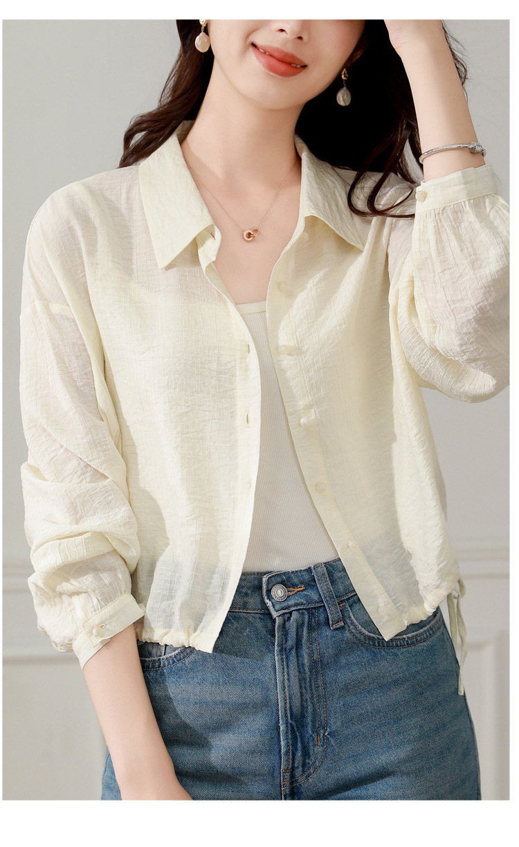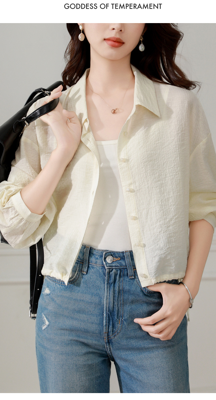 雀说长袖衬衫防晒衣抽绳衬衣宽松肌理防晒衫上衣AL1611