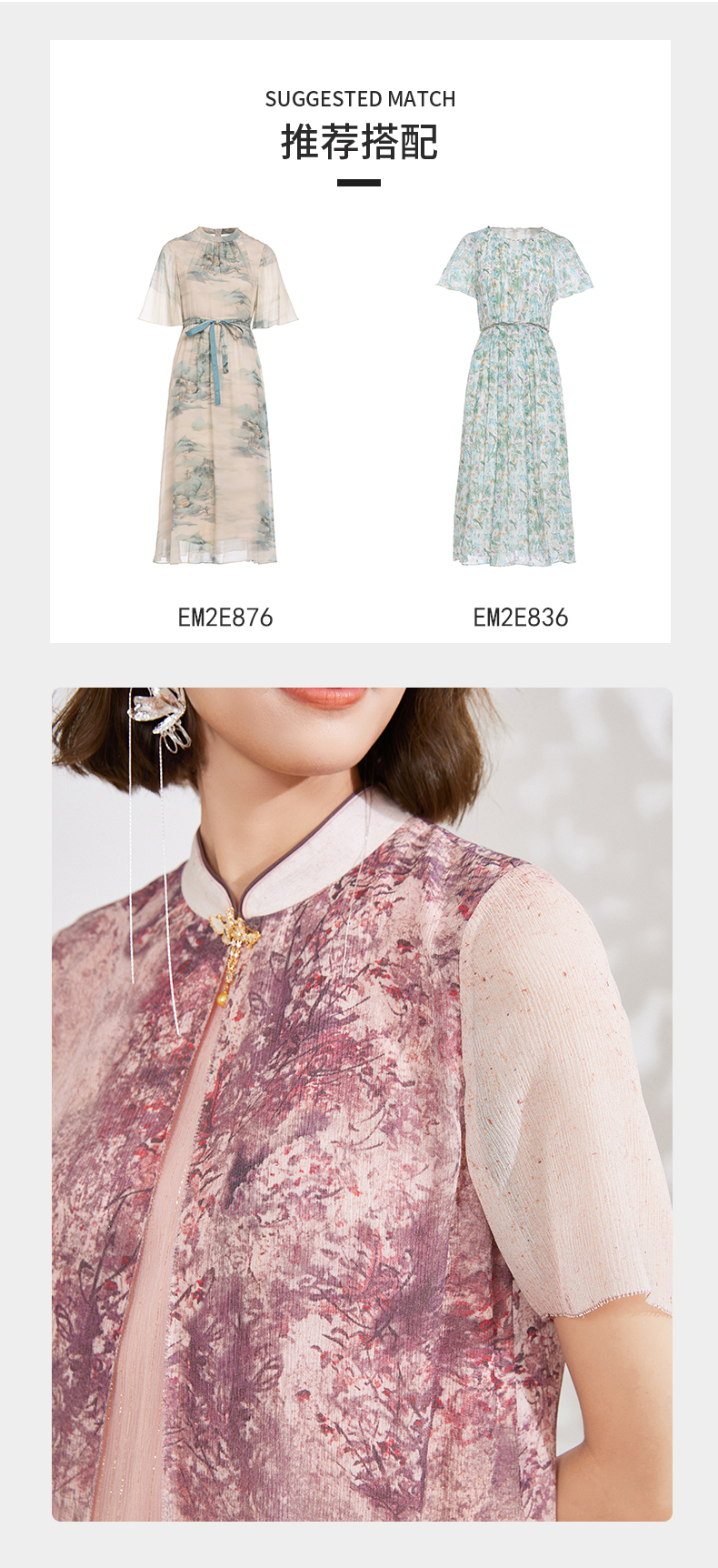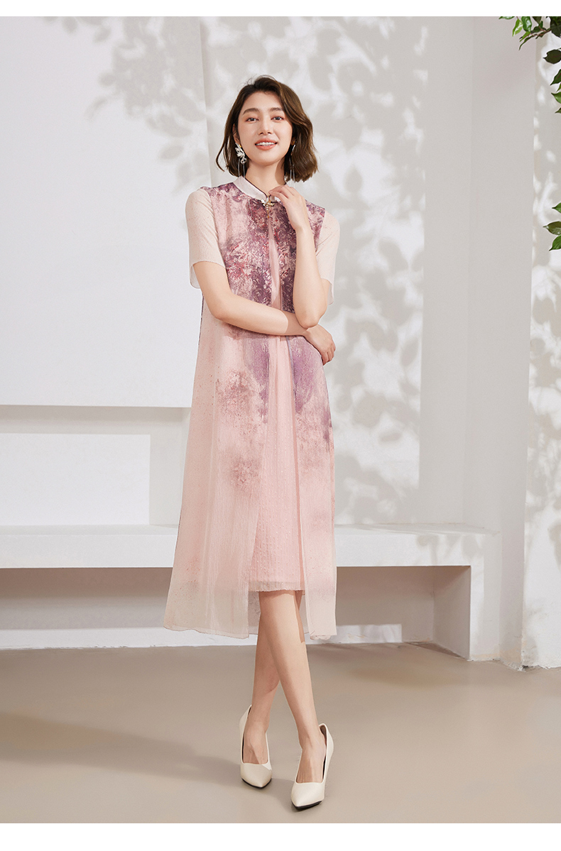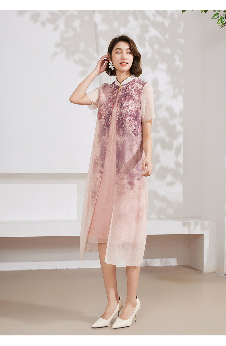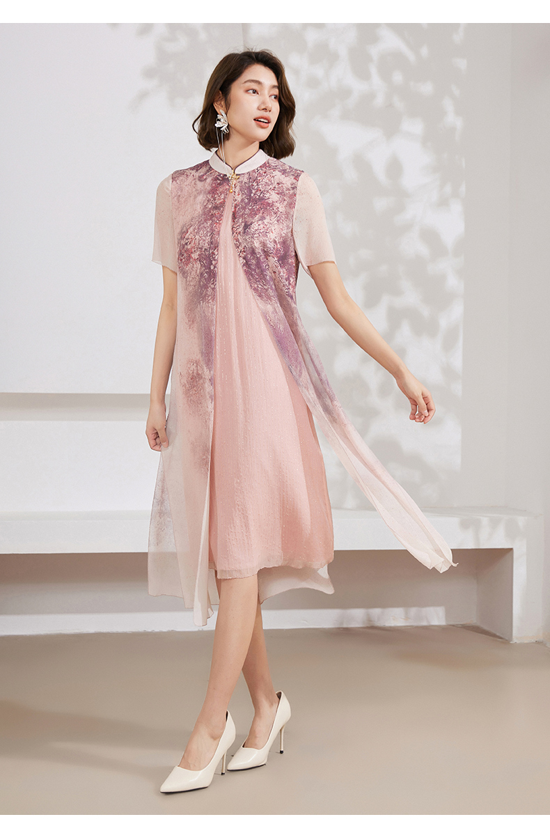 乔万尼真丝连衣裙桑蚕丝100%新中式假两件设计EM2E873 商品图2