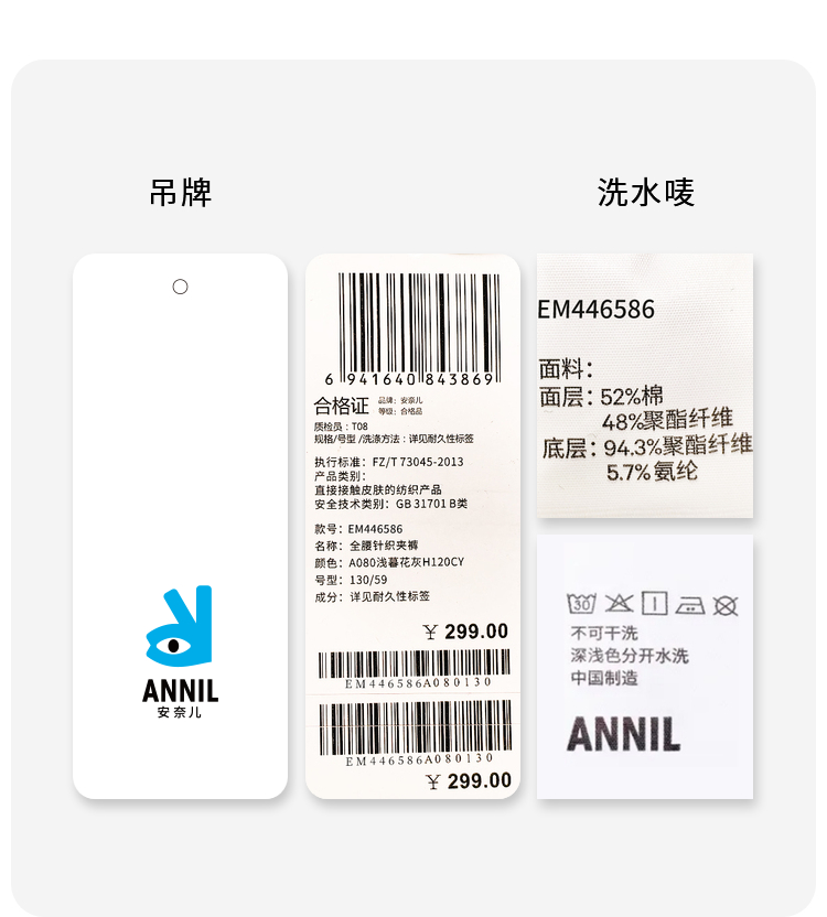 男童女童全腰针织夹裤冬季新款安奈儿童装EM446586