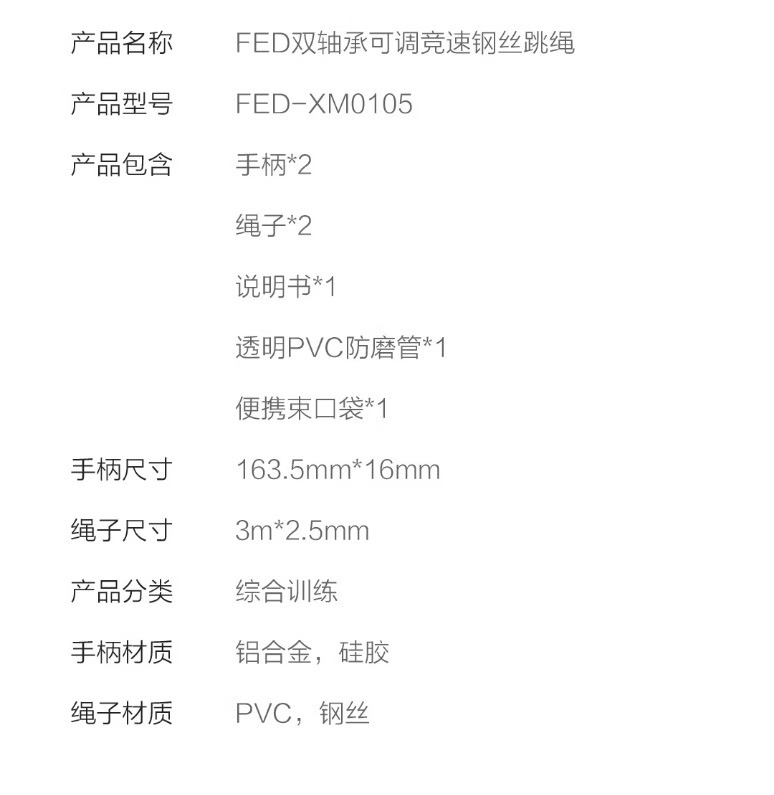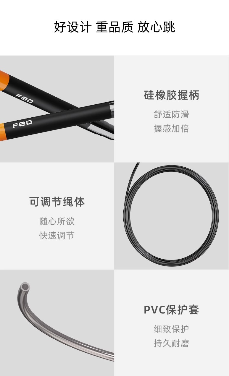 竞速钢丝跳绳 | fed飞尔顿 竞速跳绳 钢丝自锁有绳 专业绳训练 运动中考训练专用男女成人
