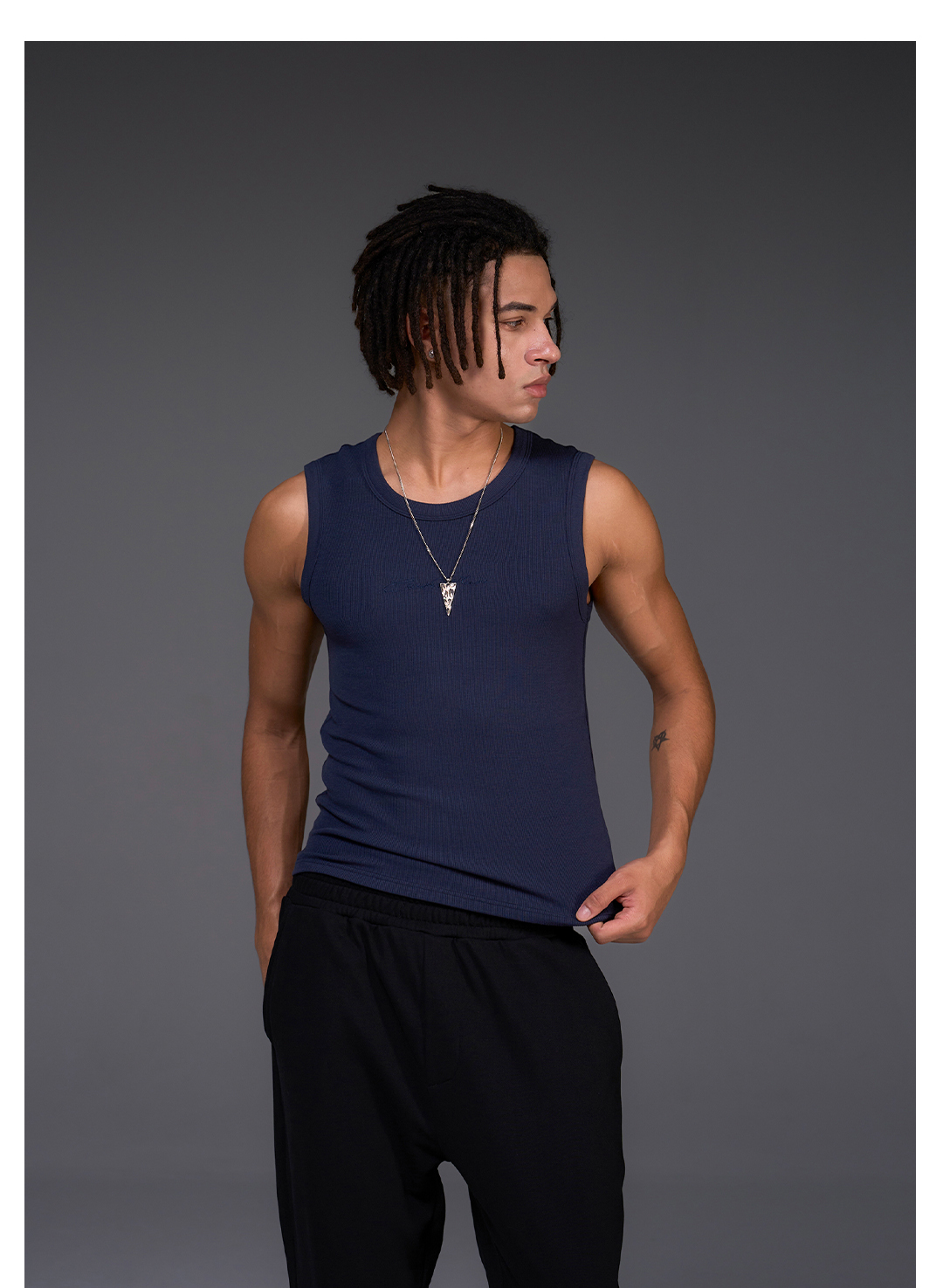 COURTMAN野球帝软糯丝滑螺纹坑条小领口收腰背心立体剪裁百搭单品