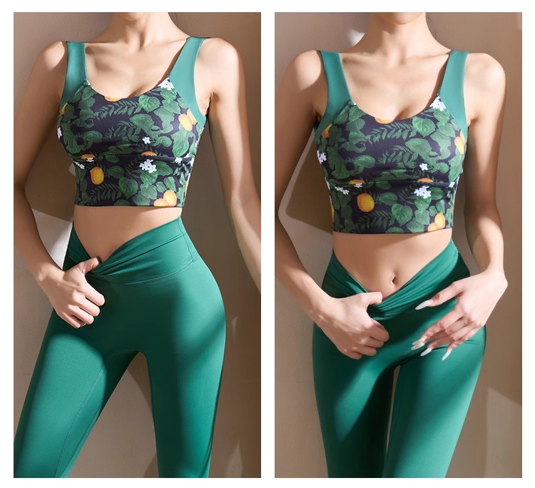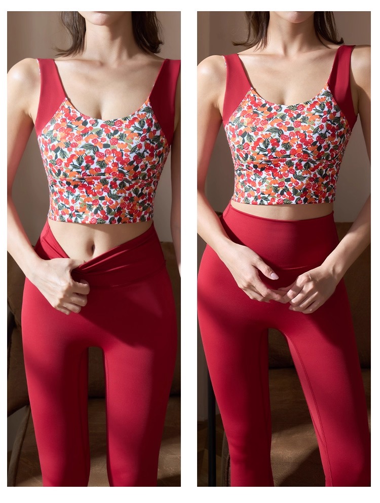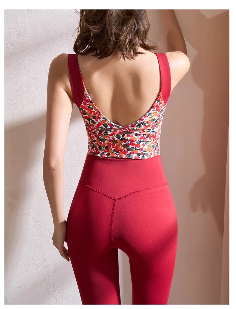 【126元任选2件】跃牌【漫西】系列 性感时尚印花瑜伽背心运动健身瑜伽套装一体式胸垫