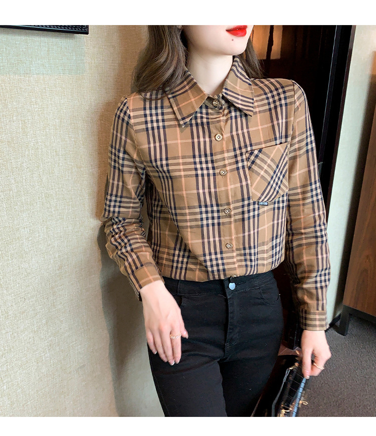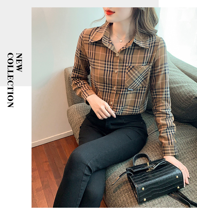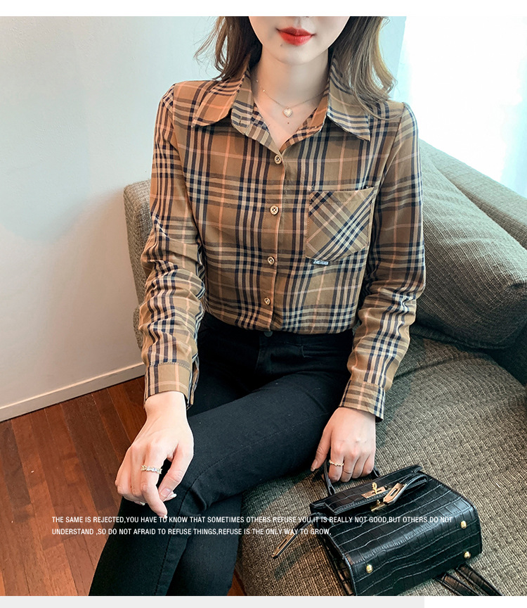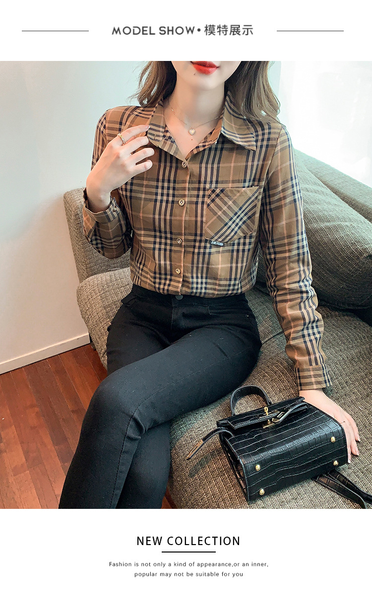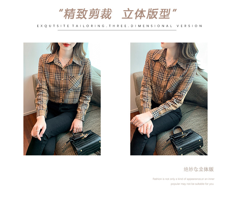加绒加厚格子衬衫,时尚洋气时髦遮肚子遮胯宽上衣KQL-C06N6966