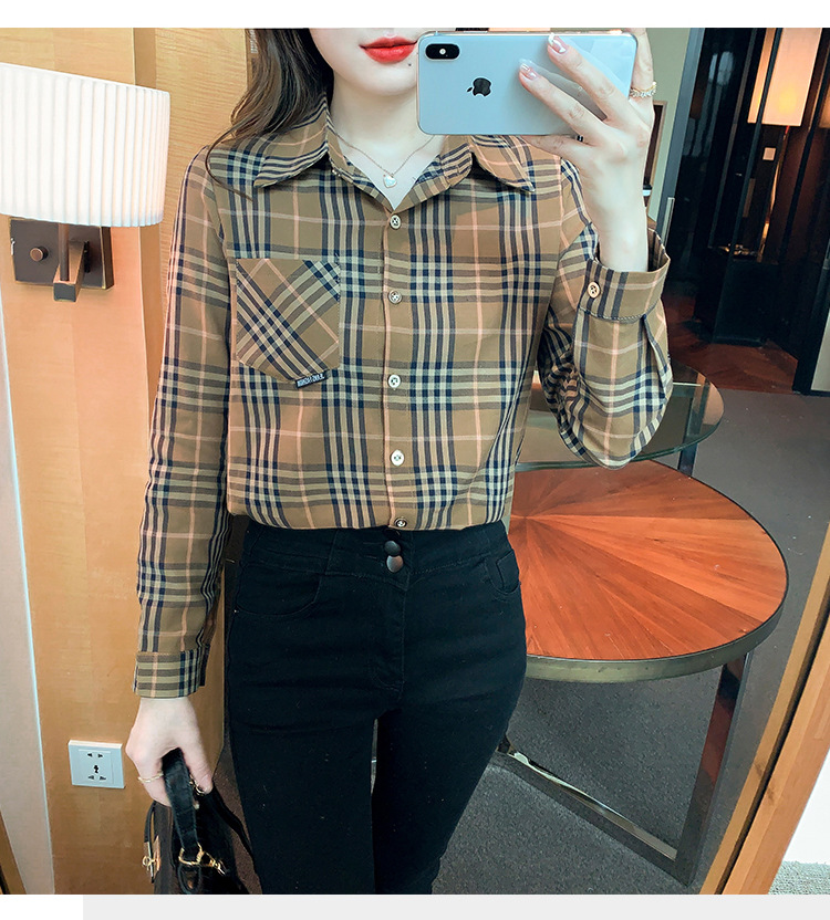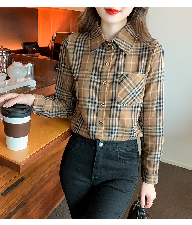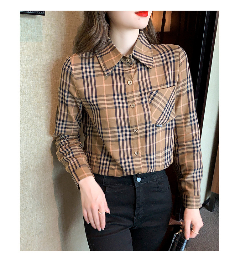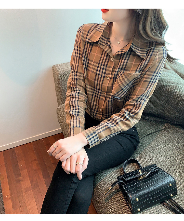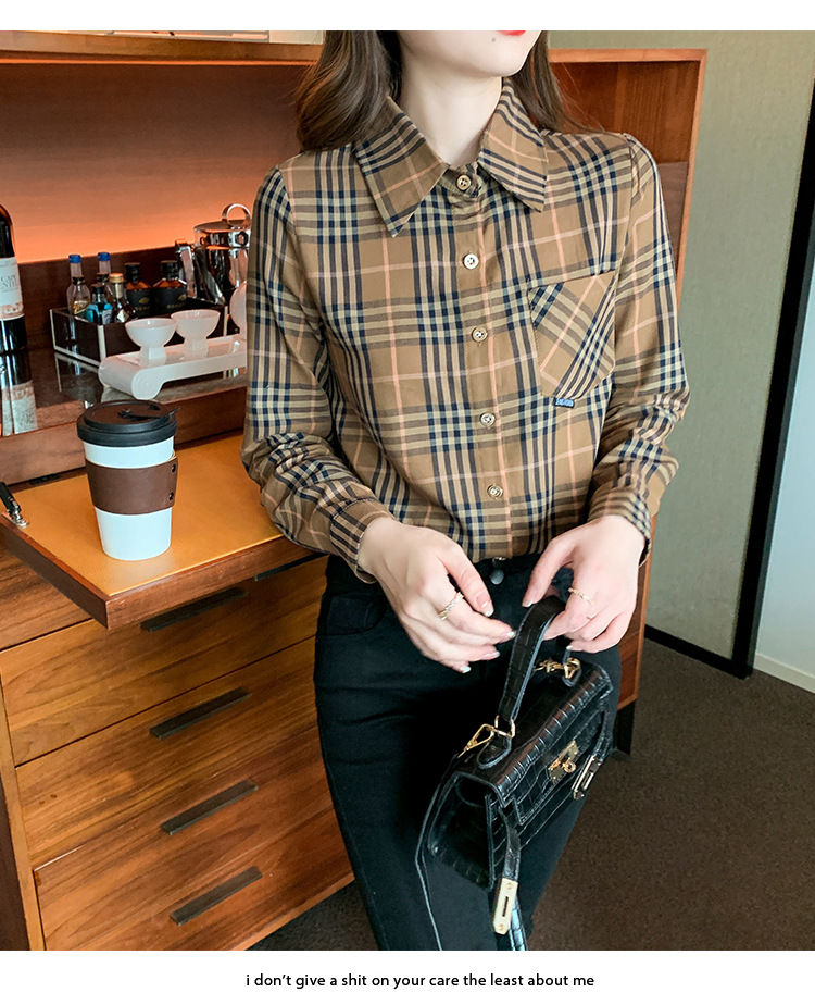 加绒加厚格子衬衫,时尚洋气时髦遮肚子遮胯宽上衣KQL-C06N6966