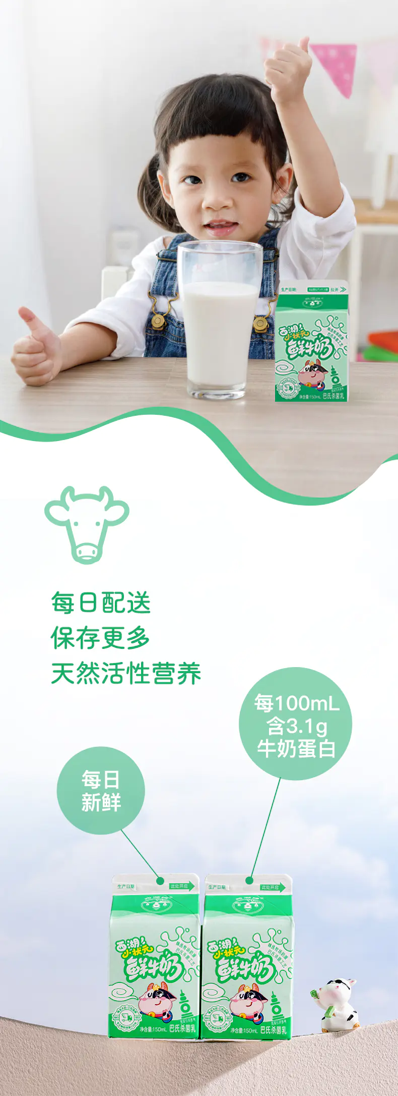 【福利购】西湖牌小状元苗条屋顶鲜牛奶150ml(低温鲜奶,月套餐,每日配送)