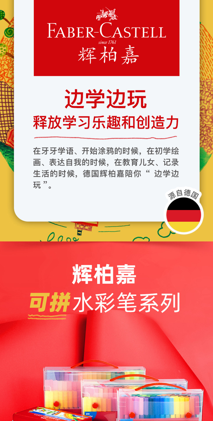 辉柏嘉小汽车学生儿童幼儿园可拼砌宝宝可水洗绘画积木水彩笔套装 33色
