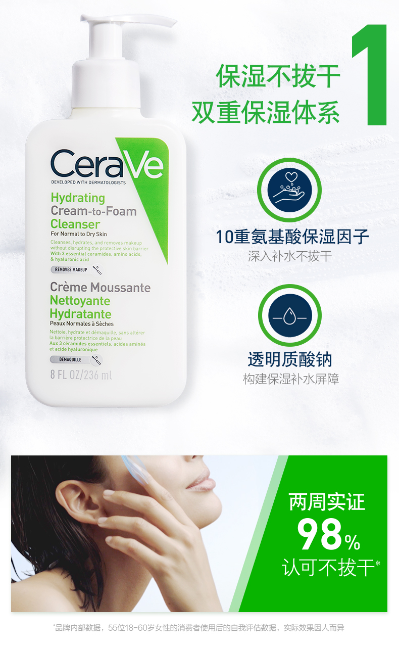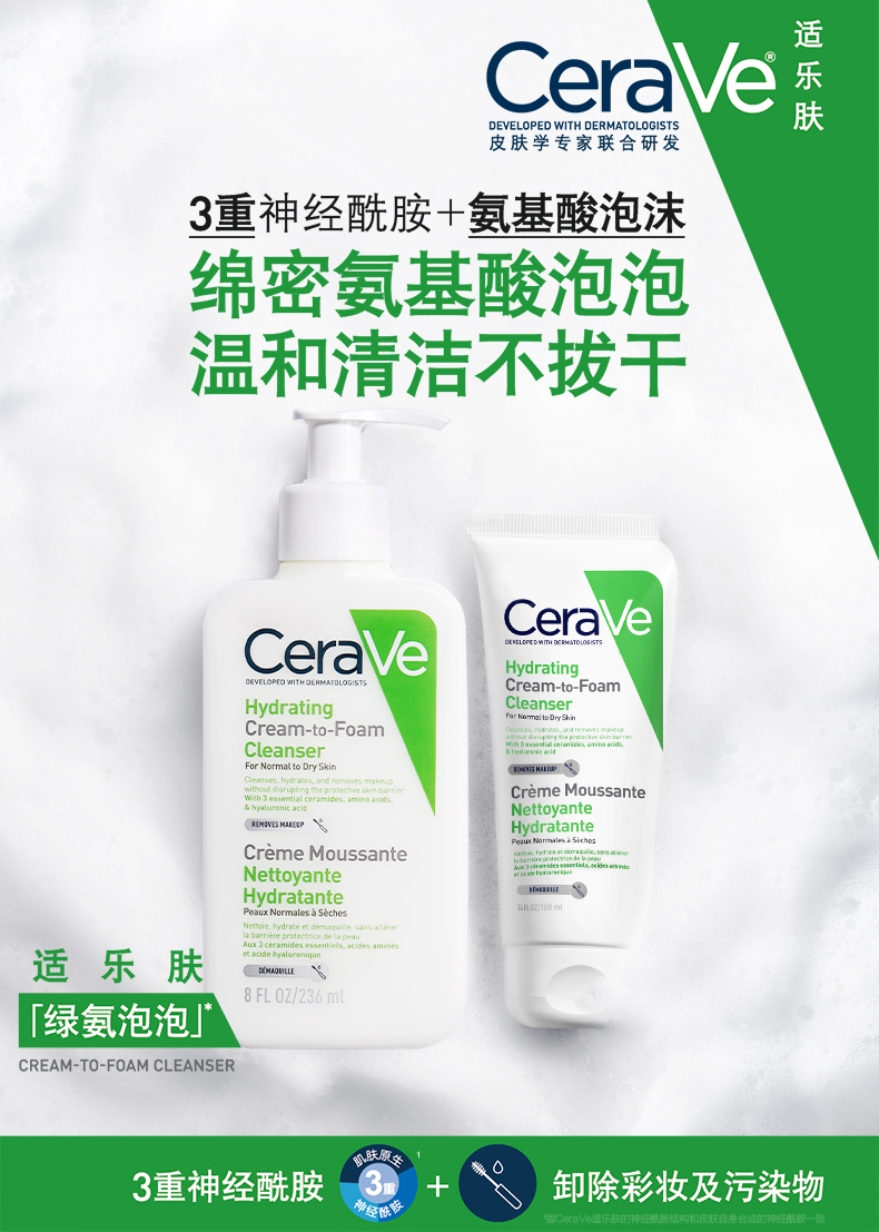 CeraVe适乐肤氨基酸泡沫洗面奶236ml