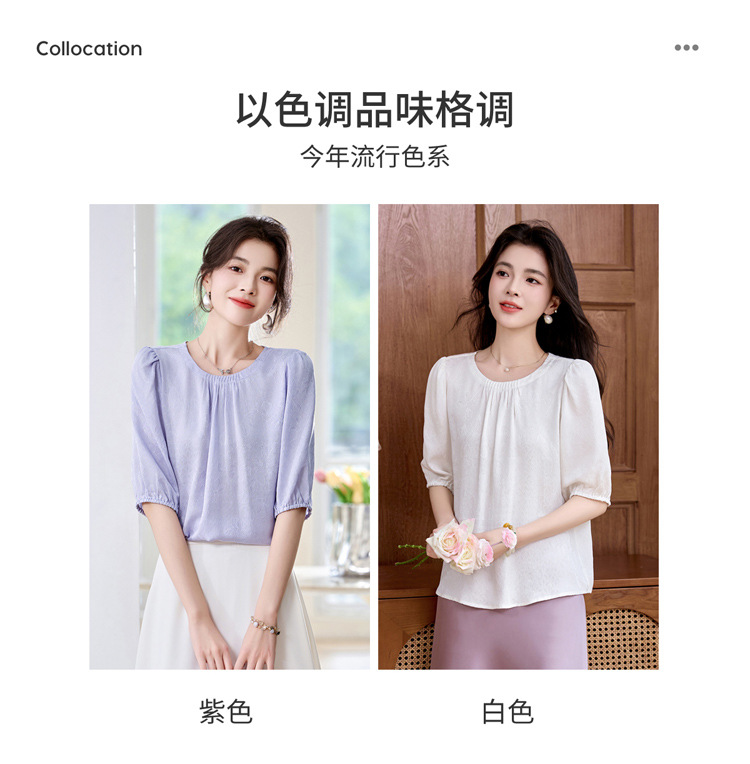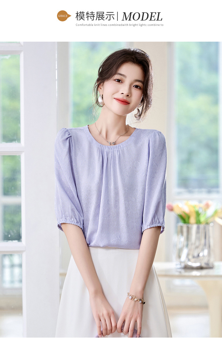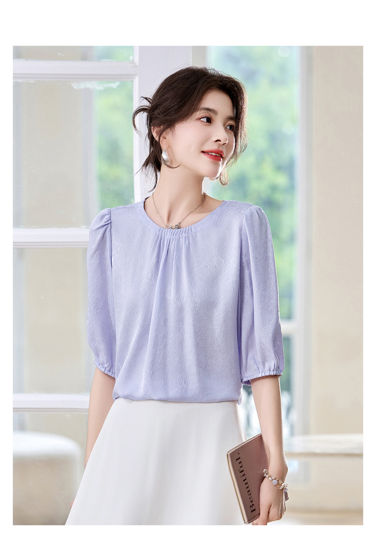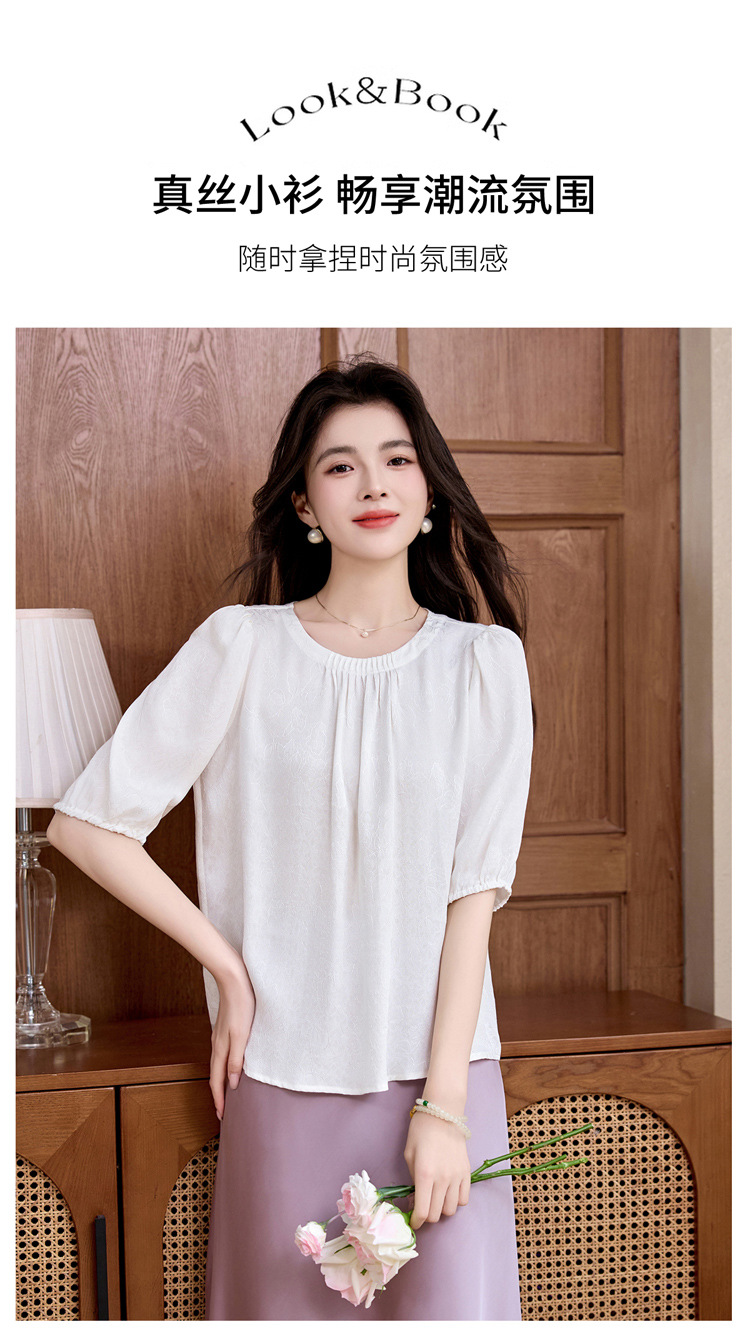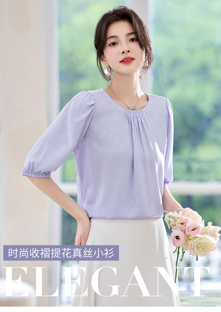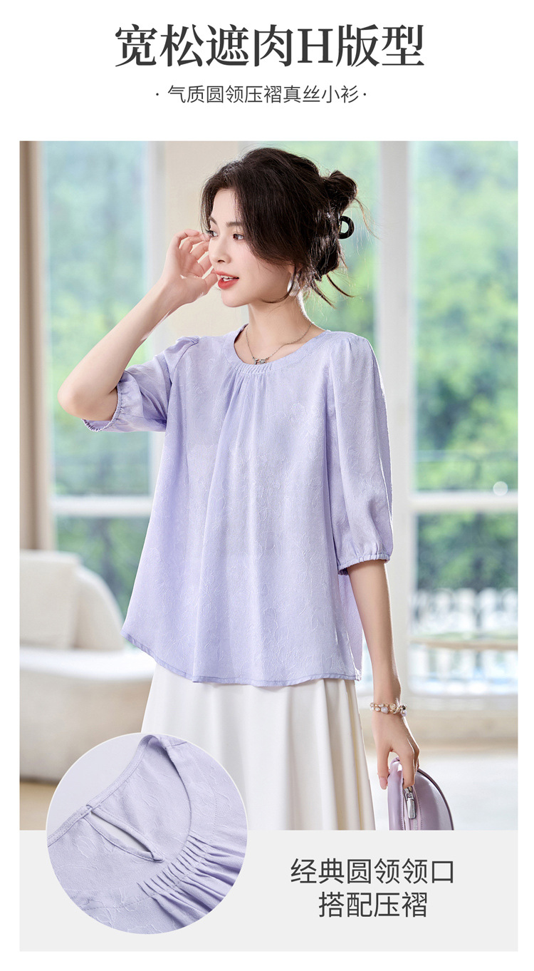 ASE真丝套头衫2025年新款夏季圆领五分袖灯笼袖薄款纯色桑蚕丝上衣女