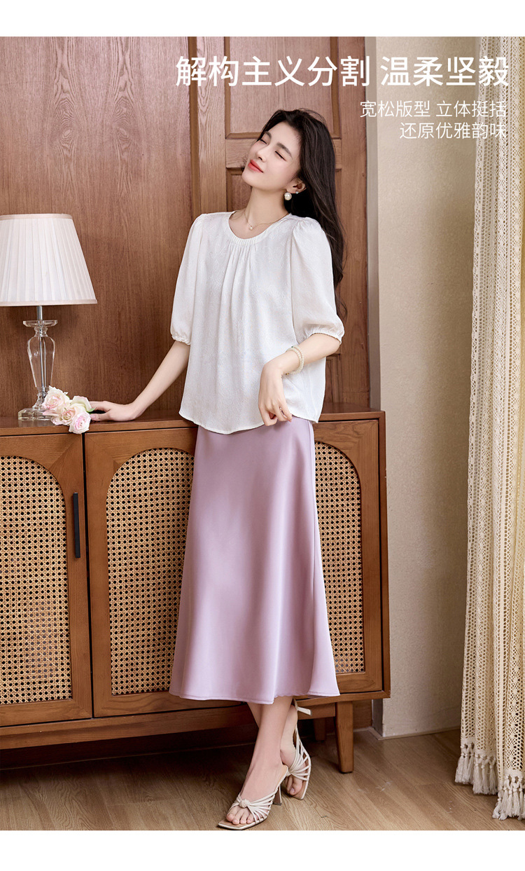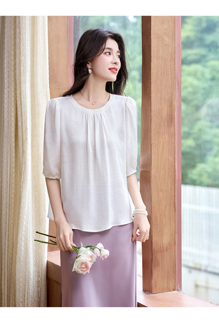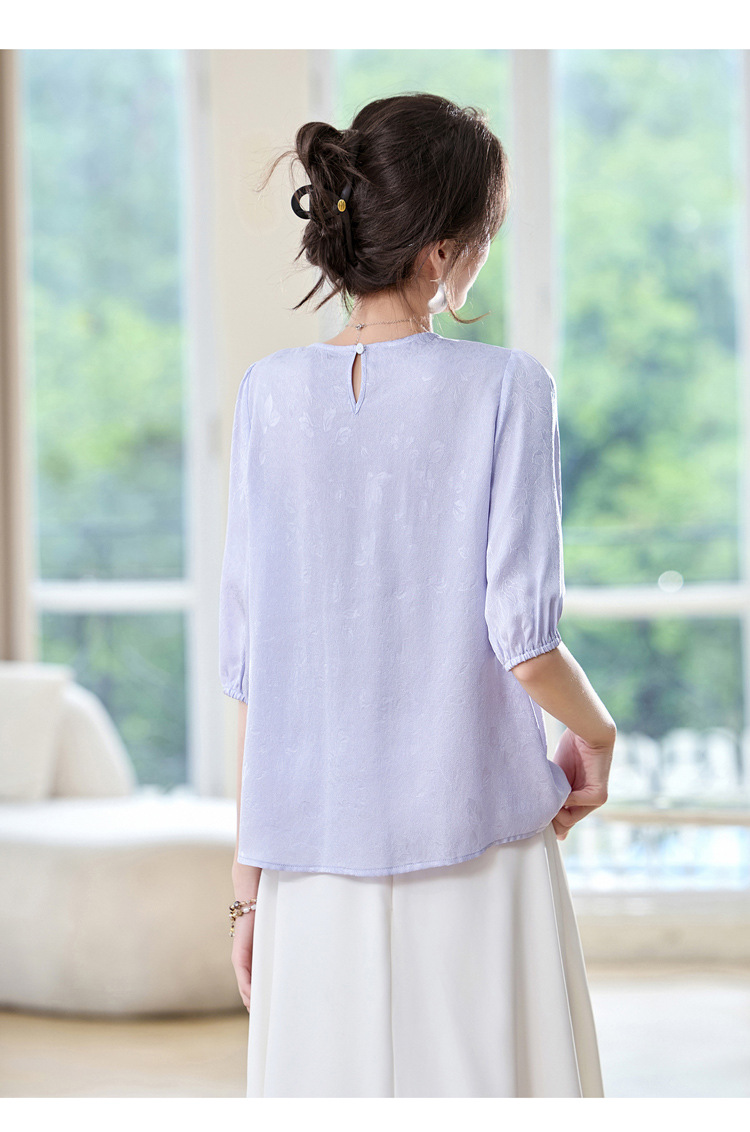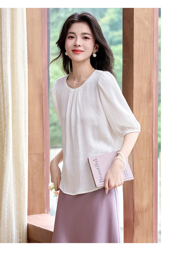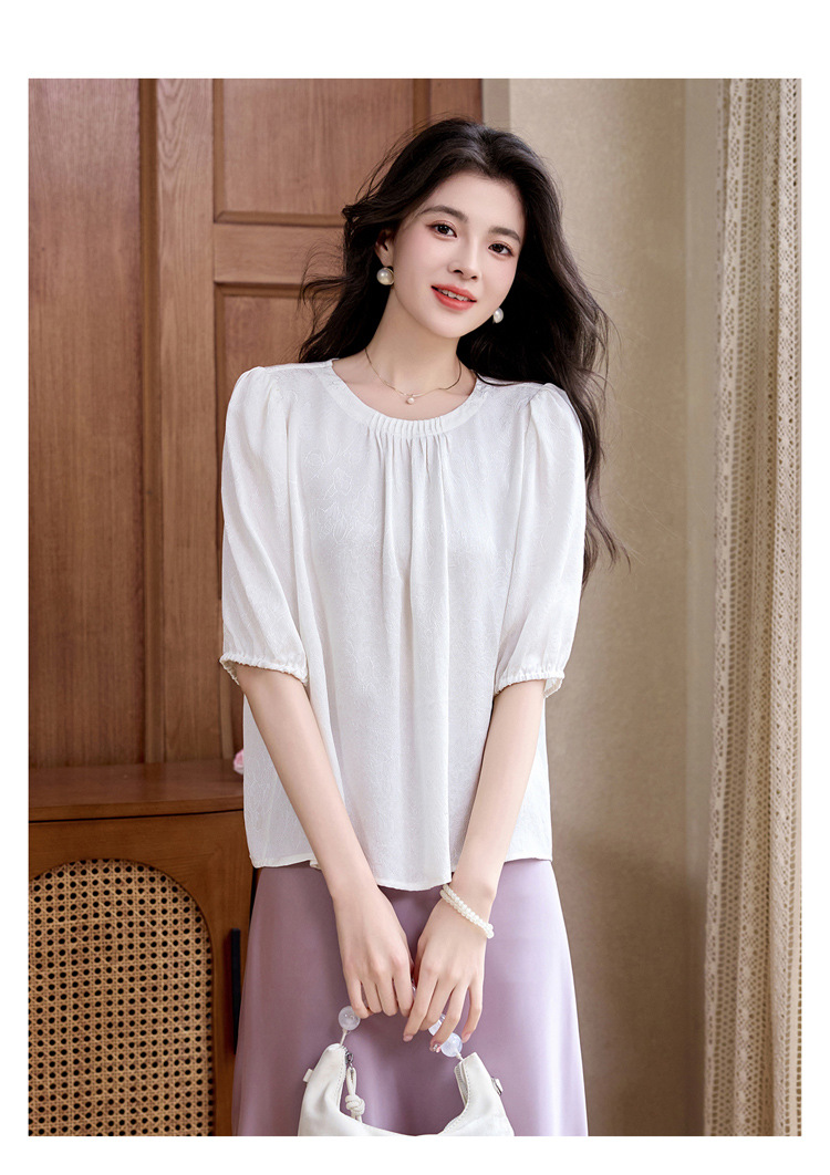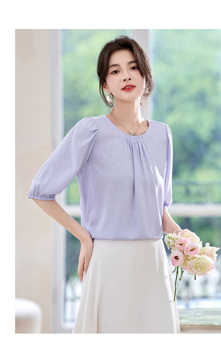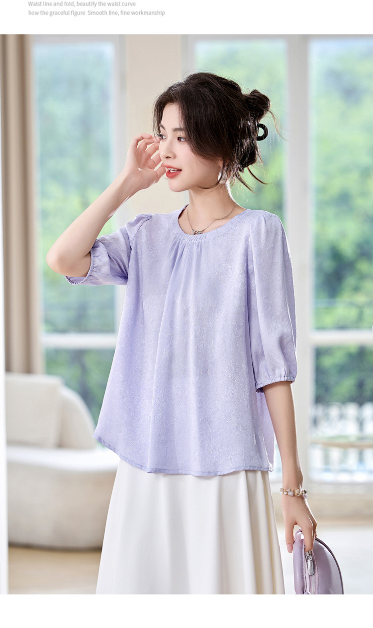 ASE真丝套头衫2025年新款夏季圆领五分袖灯笼袖薄款纯色桑蚕丝上衣女