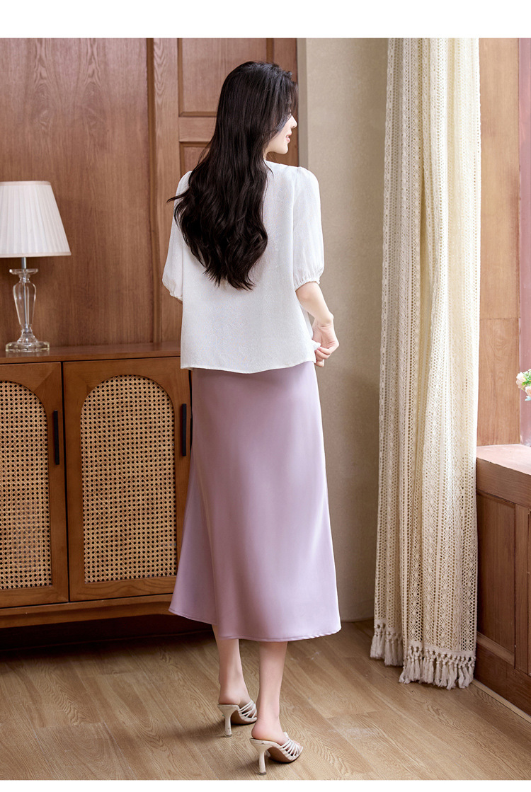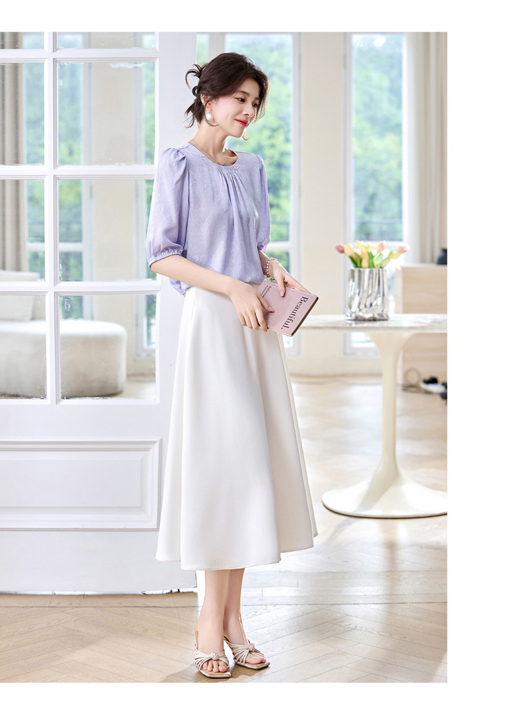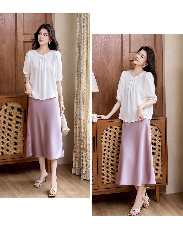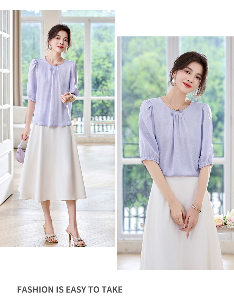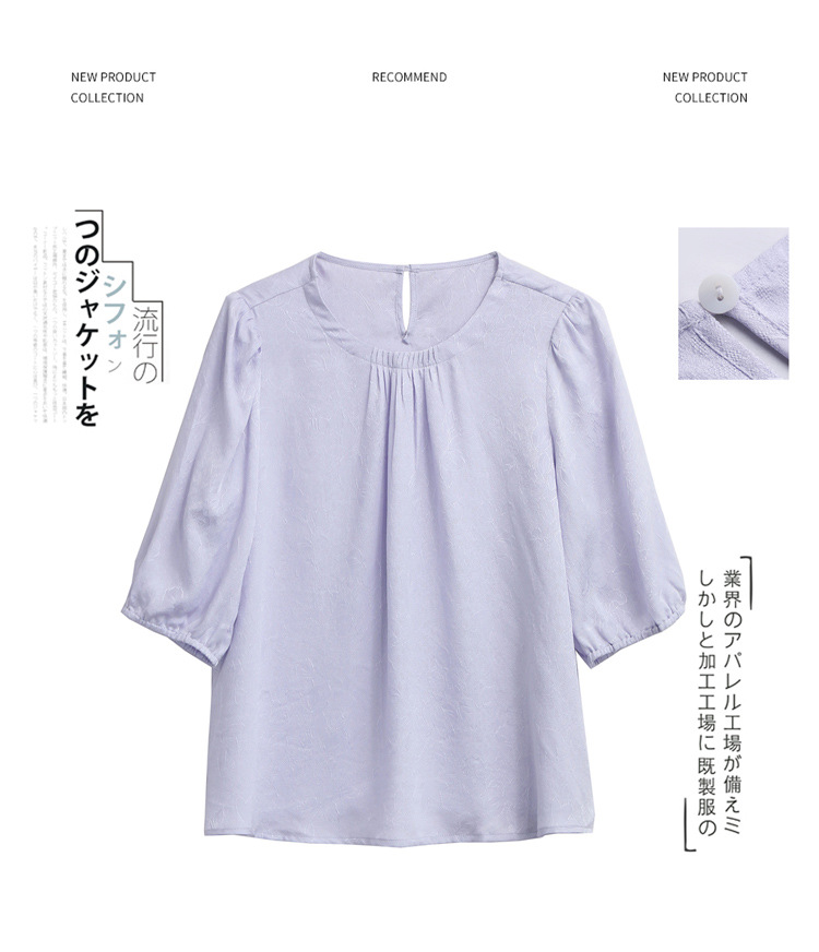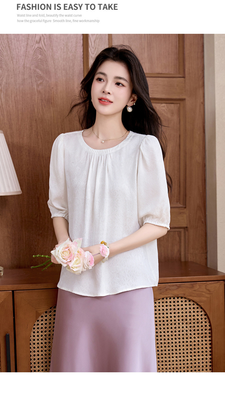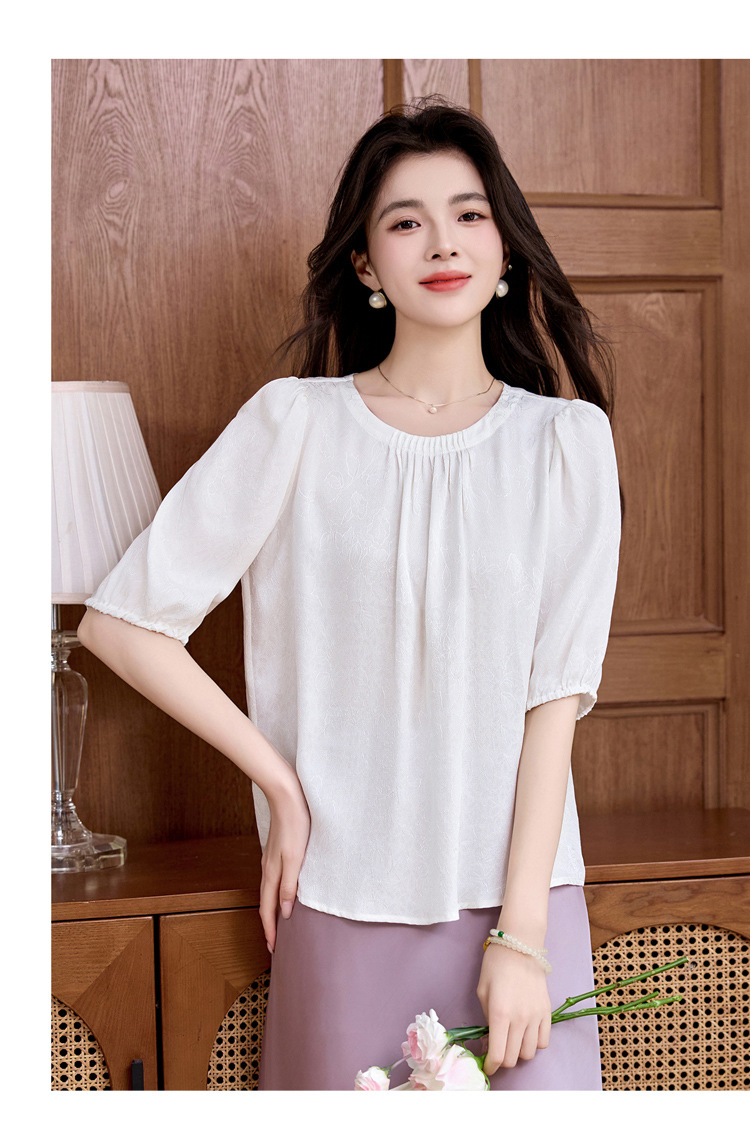 ASE真丝套头衫2025年新款夏季圆领五分袖灯笼袖薄款纯色桑蚕丝上衣女