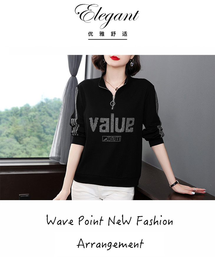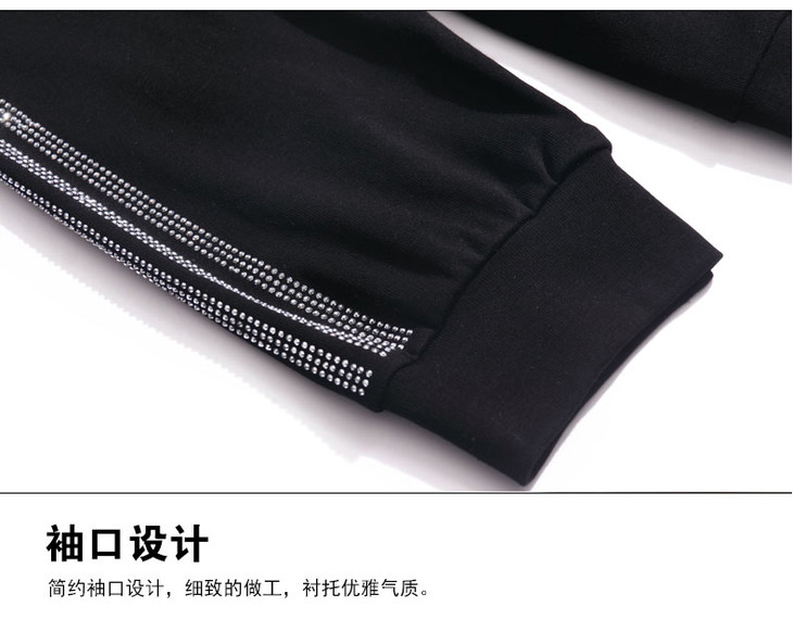 MZ 10074半高领拉链开扣棉质卫衣烫钻上衣