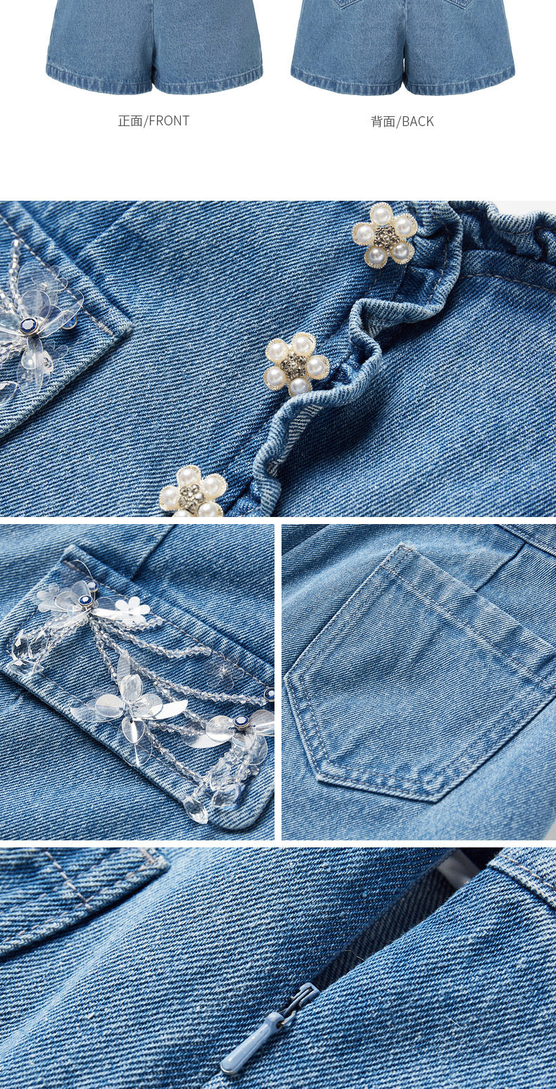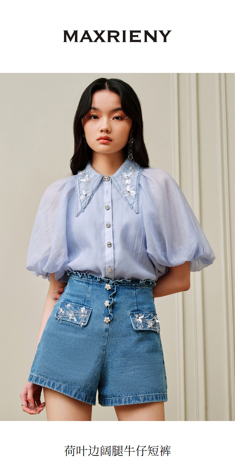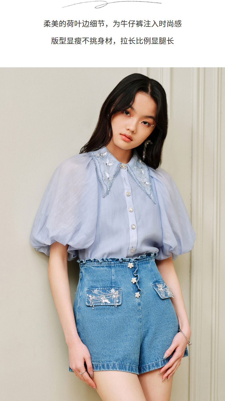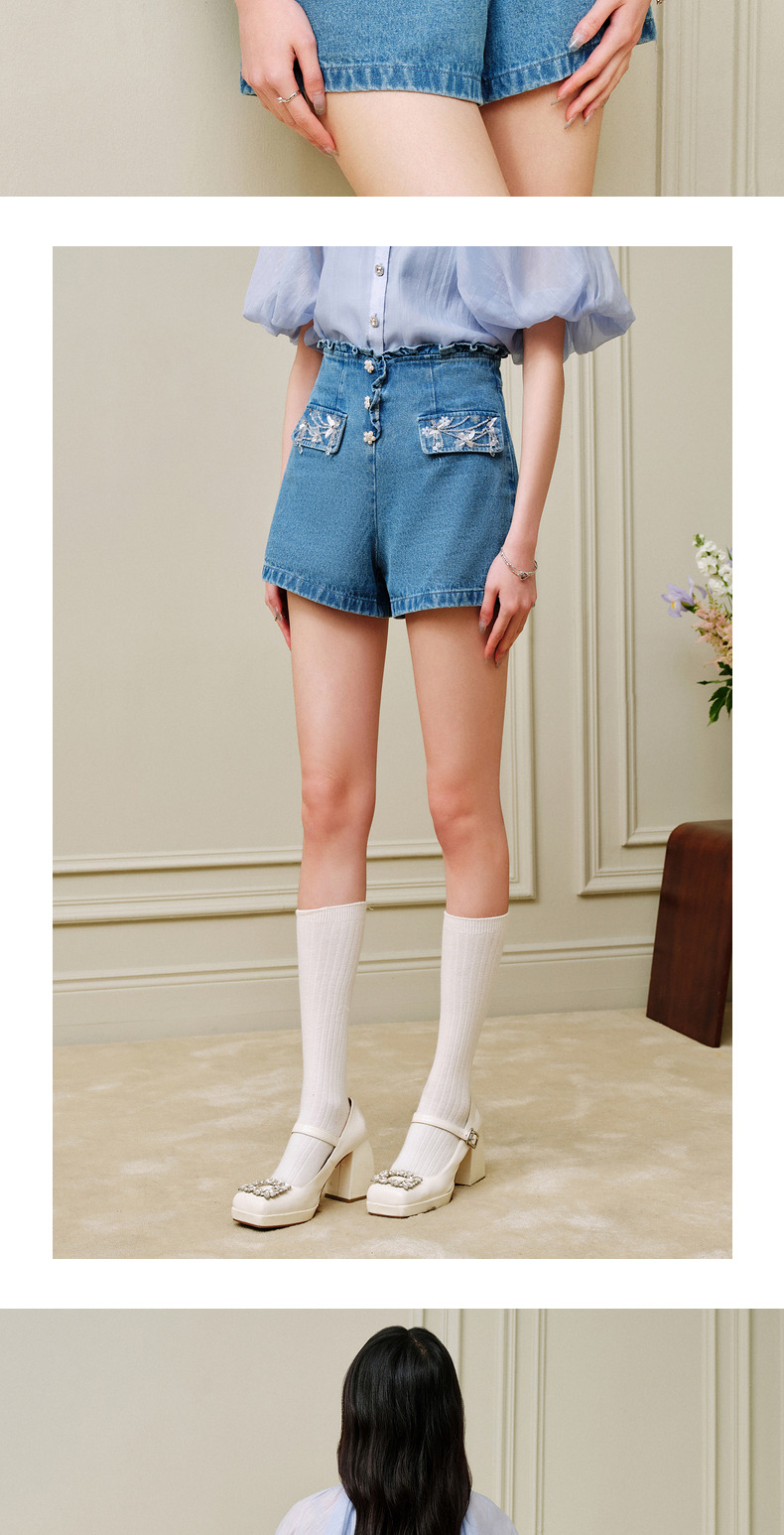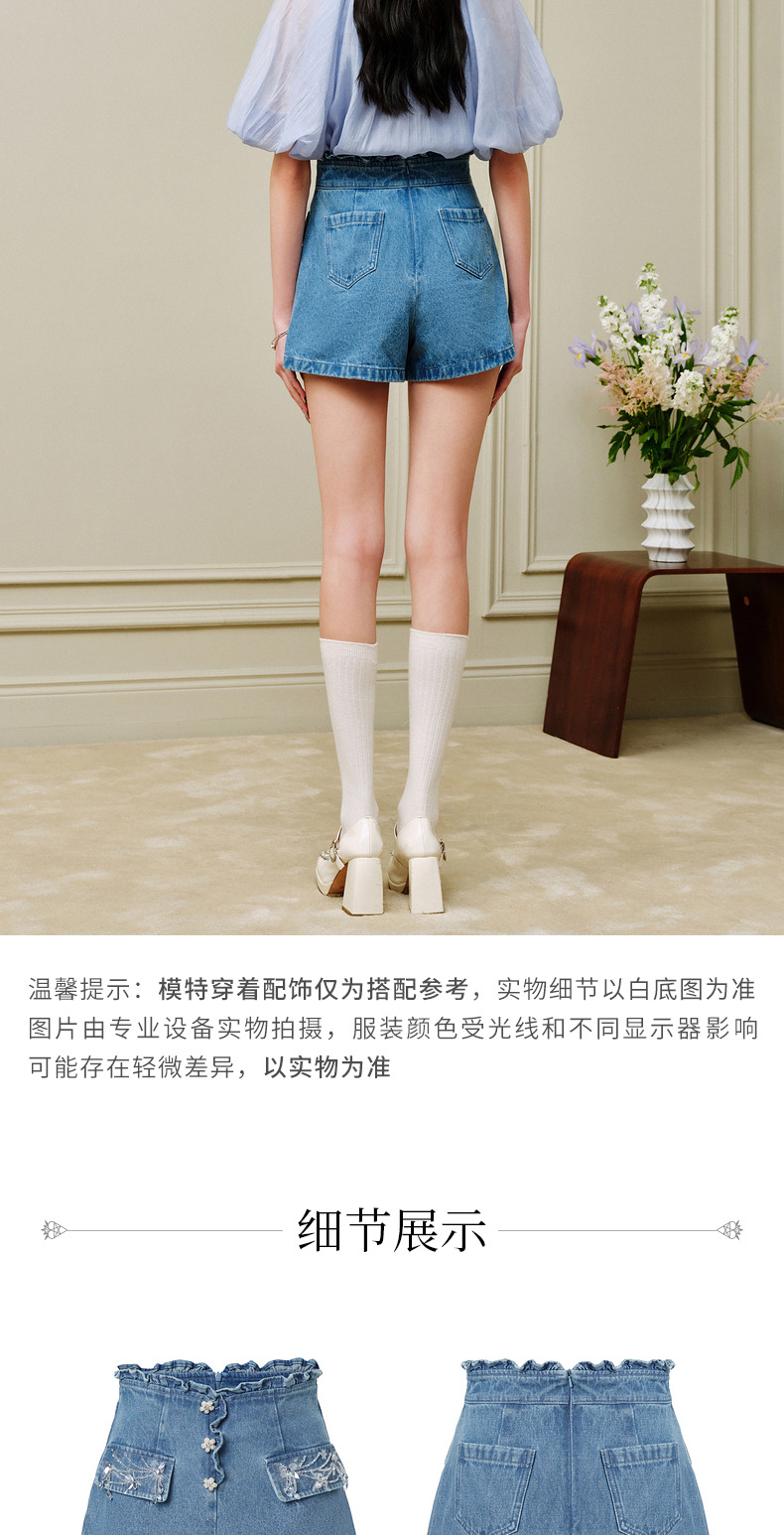 MAXRIENY荷叶边阔腿修身牛仔短裤女-商场同款(货号:MC88PA302)