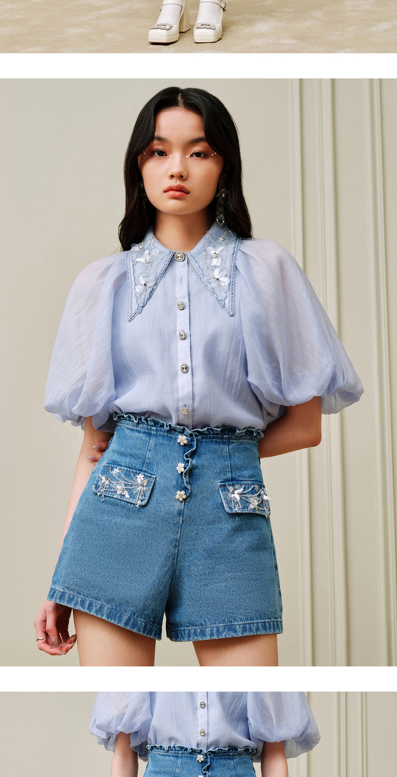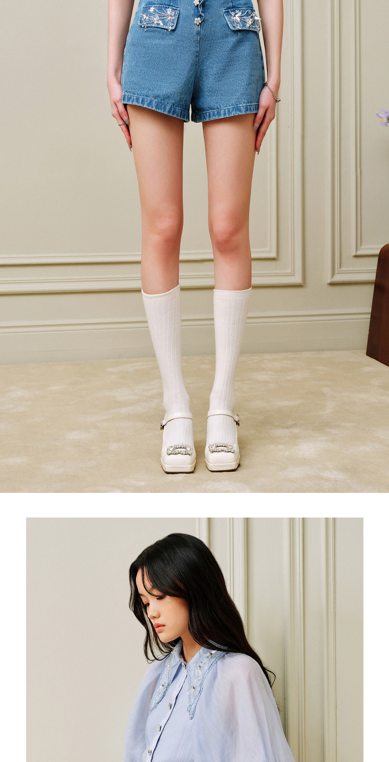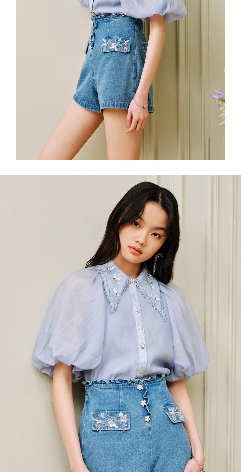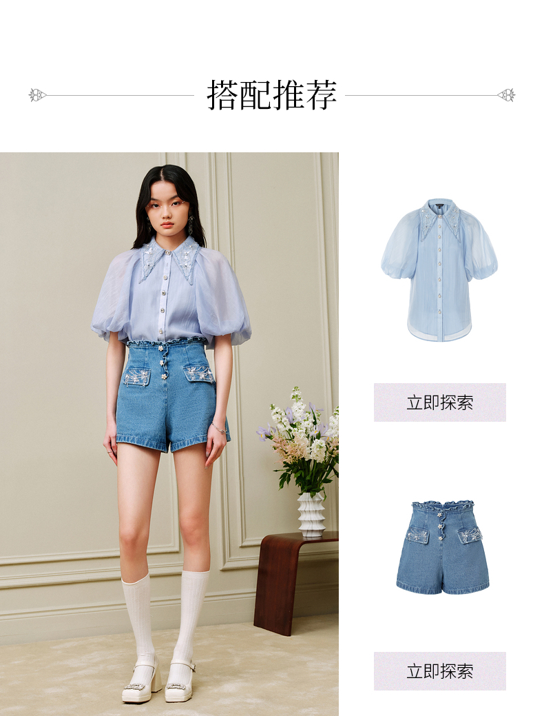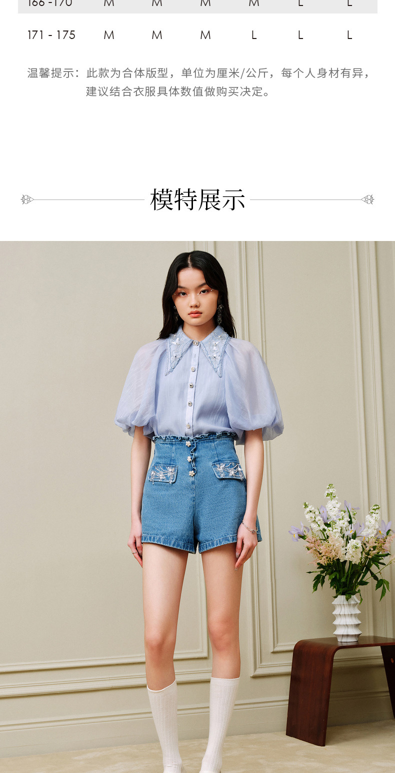 MAXRIENY荷叶边阔腿修身牛仔短裤女-商场同款(货号:MC88PA302)