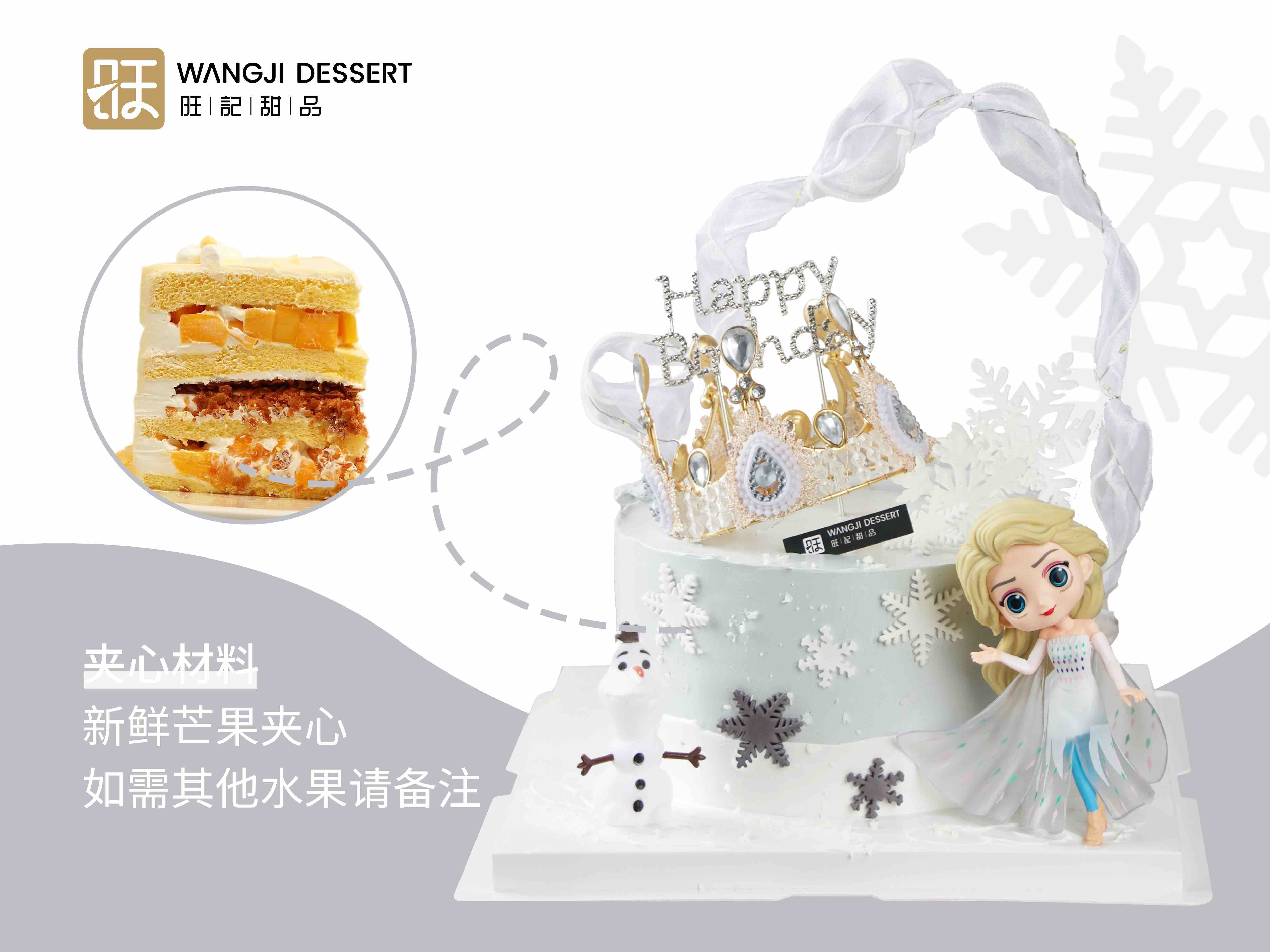 【新款艾莎】-新鲜芒果与百利脆脆片夹心,有进口动物淡奶油和混合乳脂奶油可选