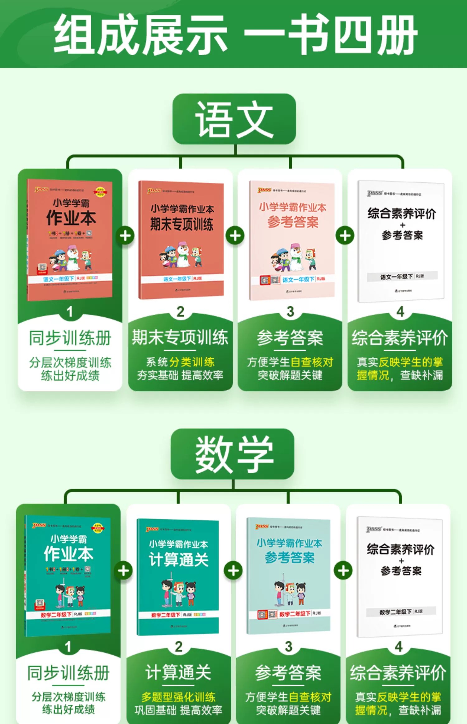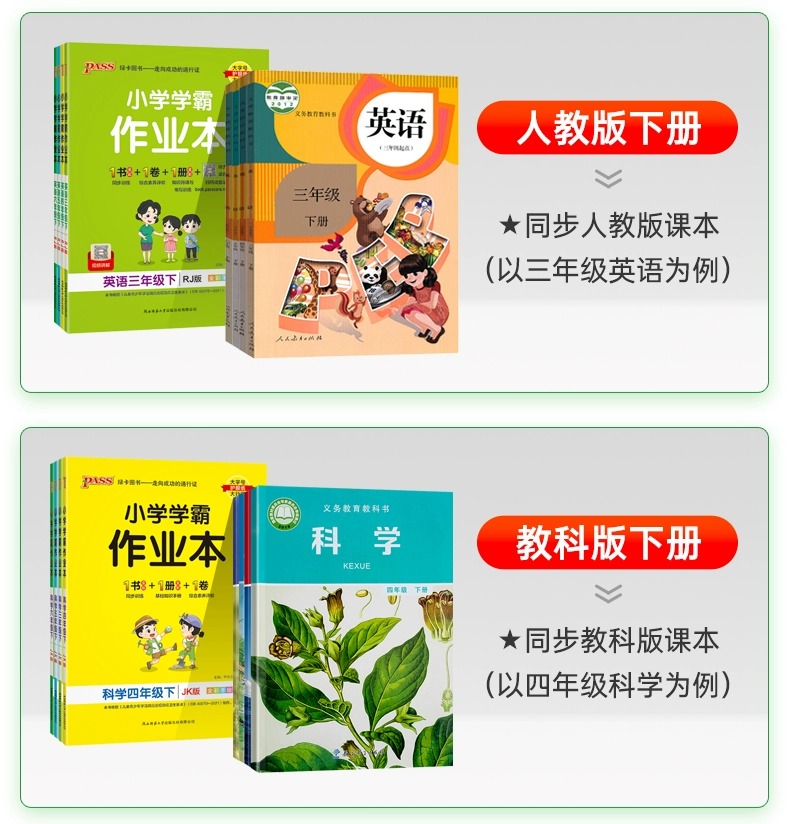 【特价】2024小学学霸作业本语文数学英语科学123456年级下册任选pass绿卡图书