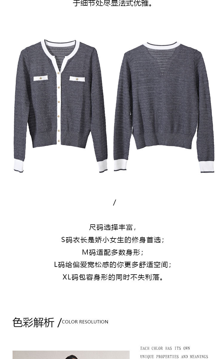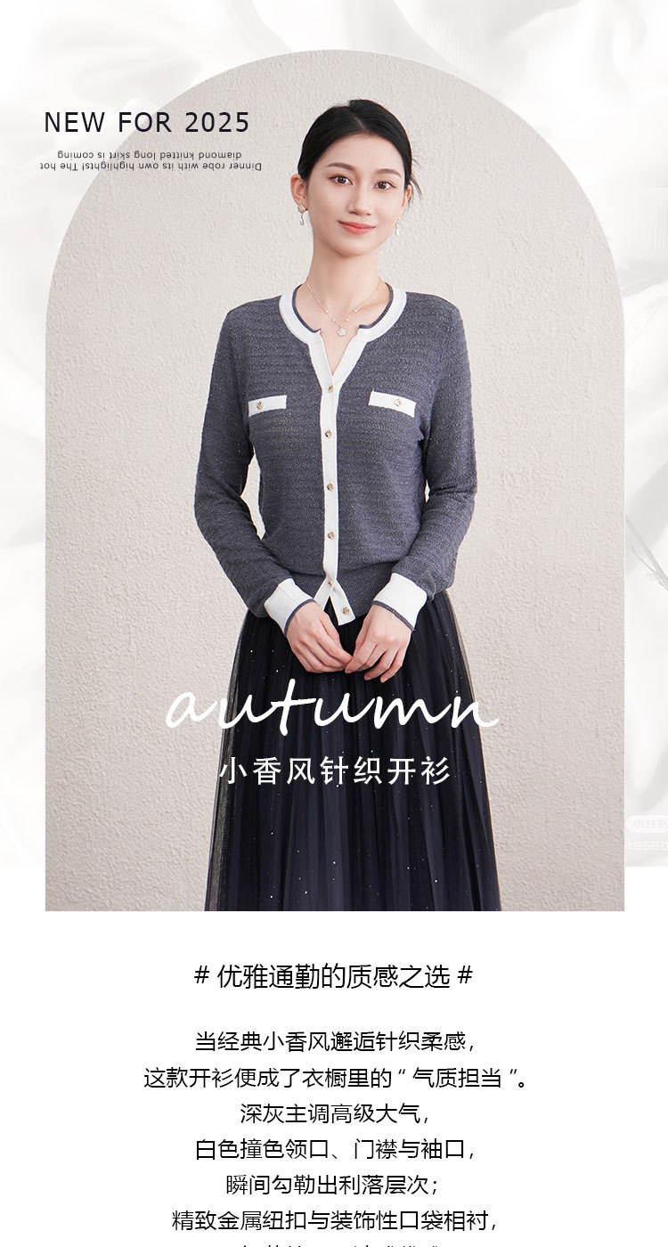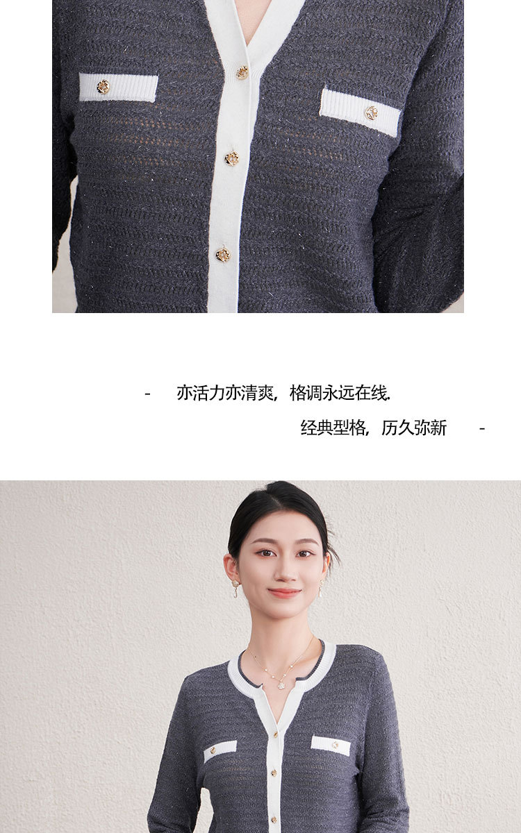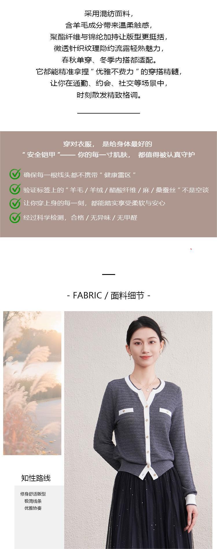 「自」全新升级【铂金会员247/天猫329/差价82】(71343)洛诗琳新款气质V领镂空开衫2025秋季简约百搭针织开衫外套