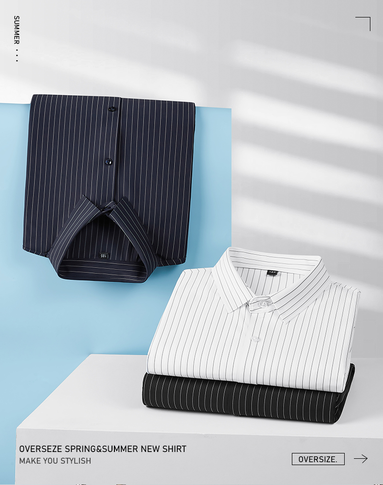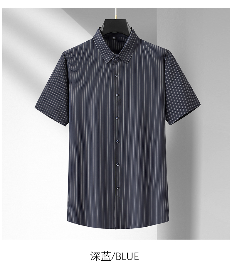 【Q】【封口款】【特大码】【冰丝高弹】【新款DM】大依优型大码条纹短袖衬衫加肥加大男装免烫大号大码衬衣上衣男士绅士商务休闲半袖夏季