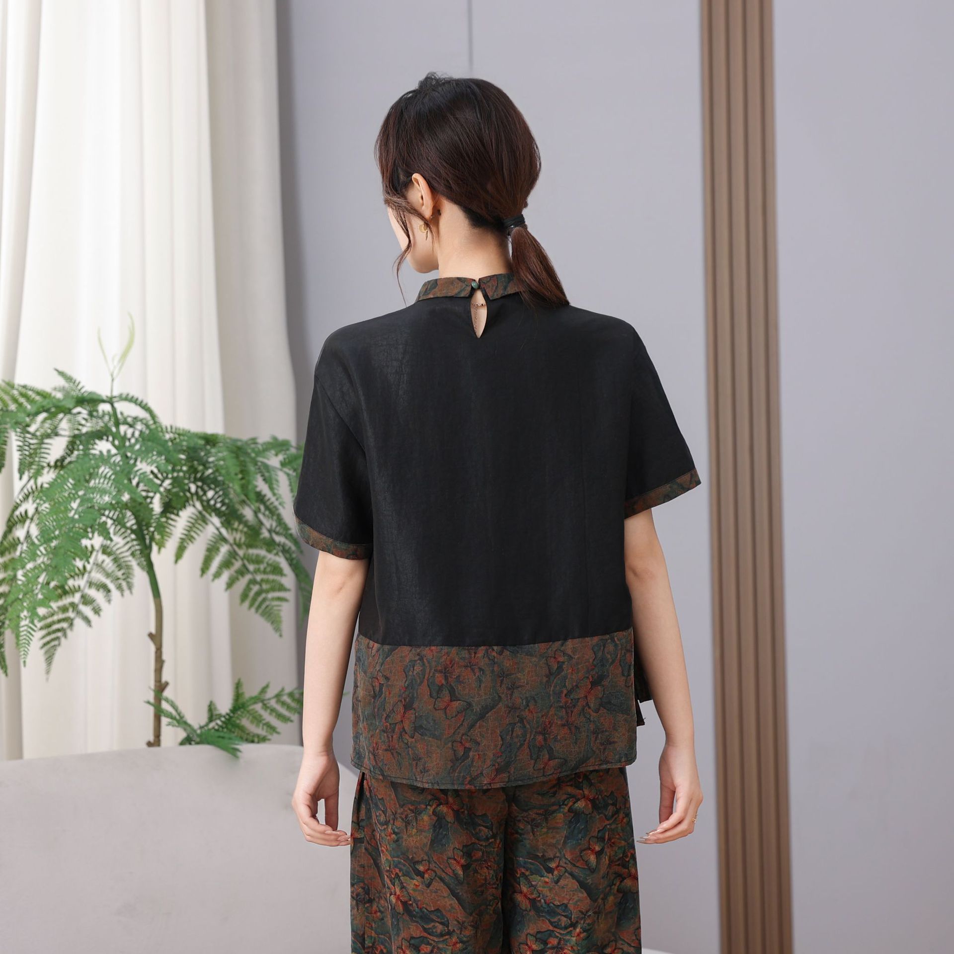 丁摩100%真丝香云纱龟裂纹高端时尚桑蚕丝短袖新款体恤AL5611