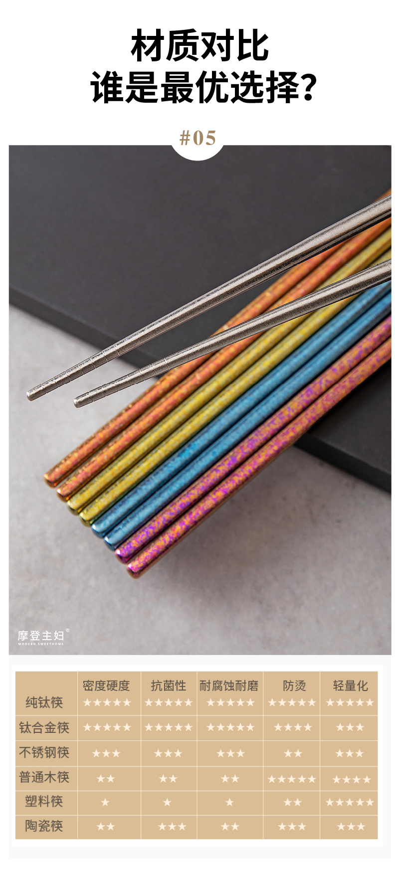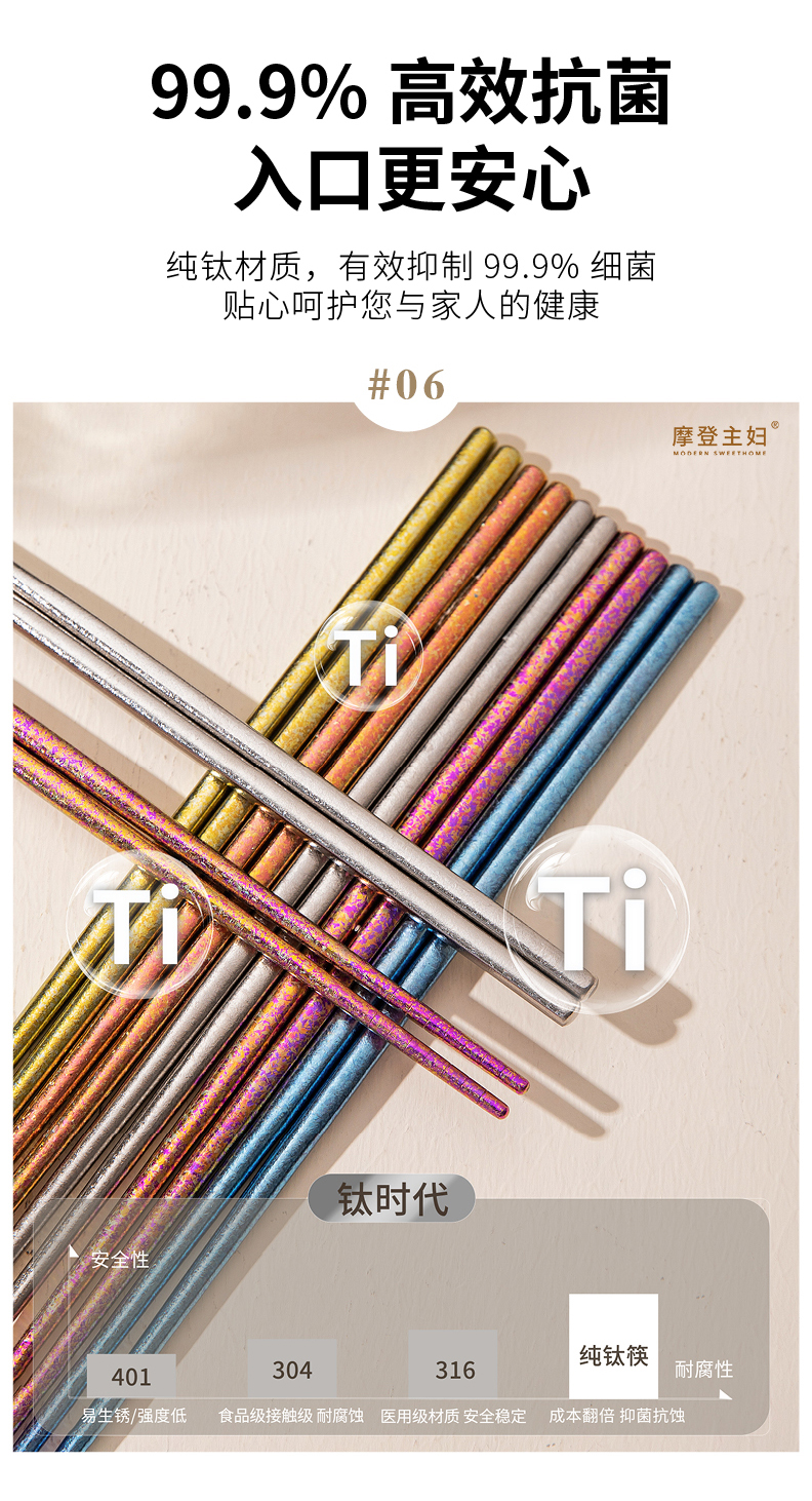 摩登主妇纯钛筷子家用高档抗菌防霉2025新款耐高温家庭专人专用筷